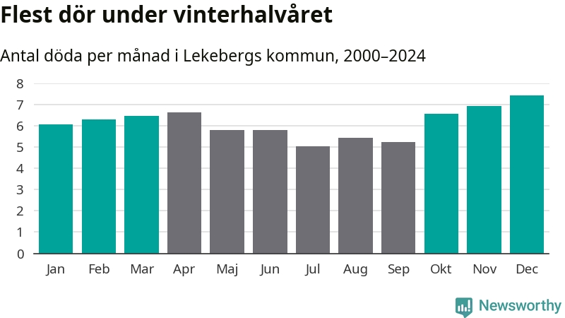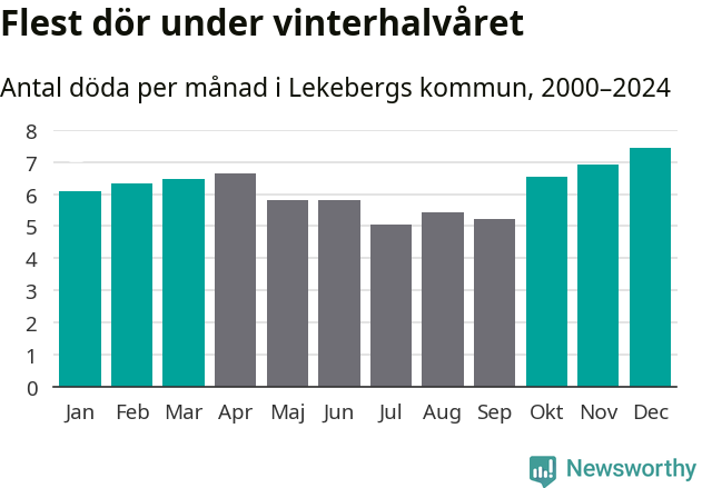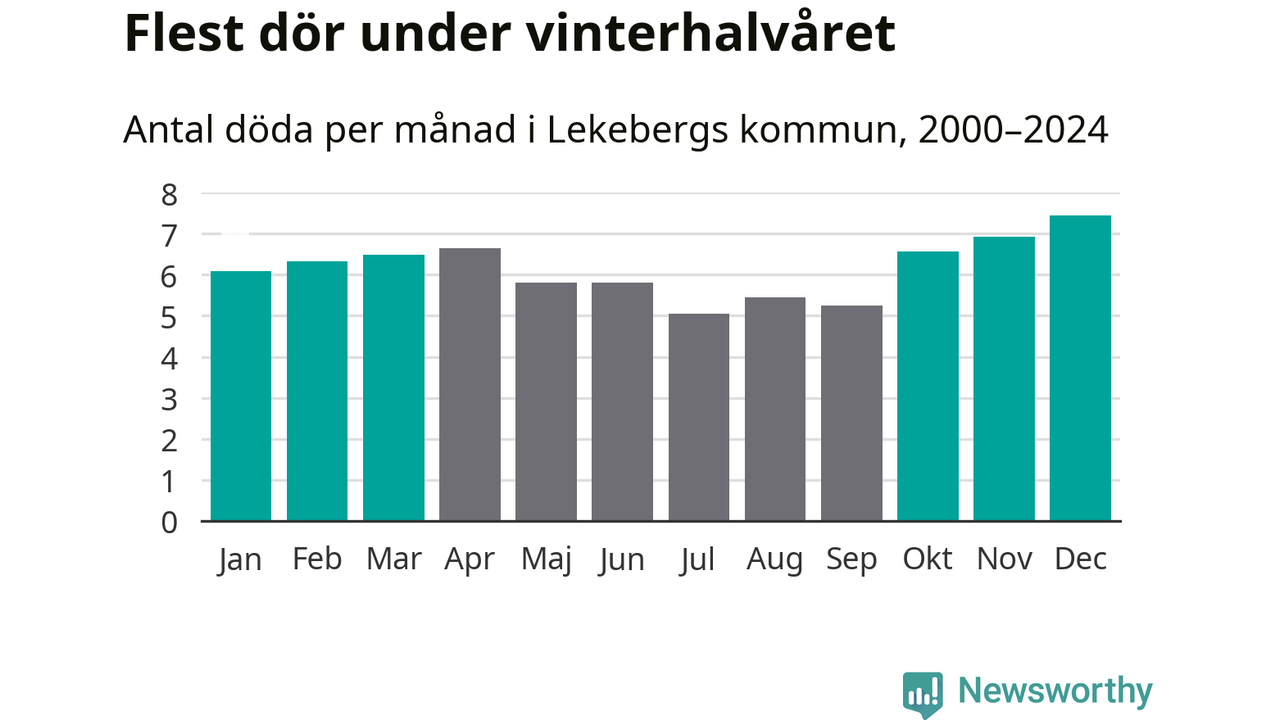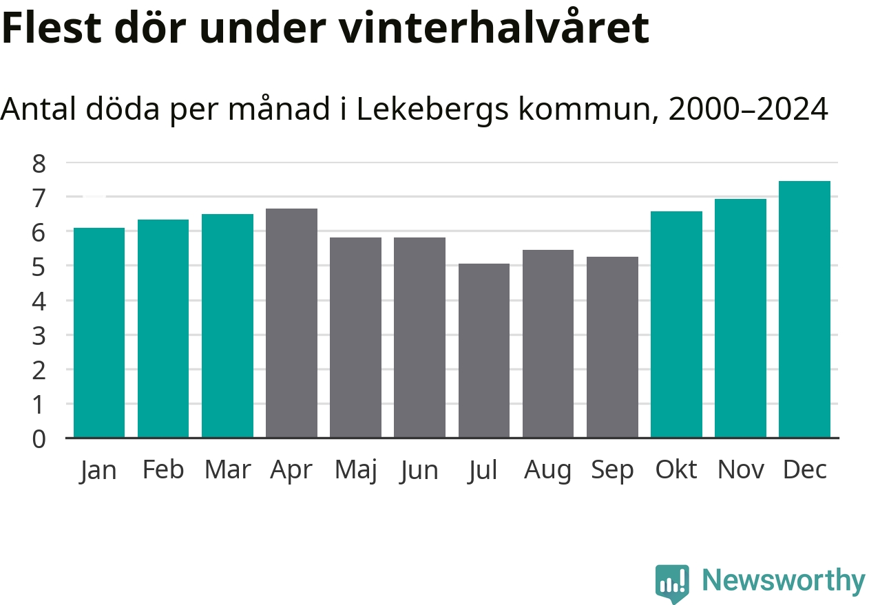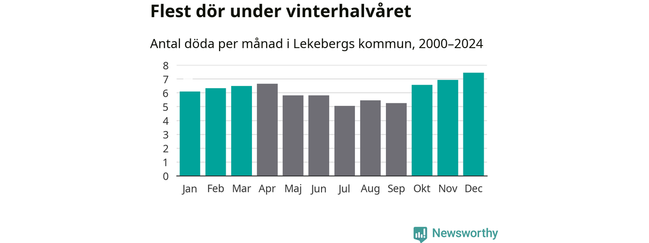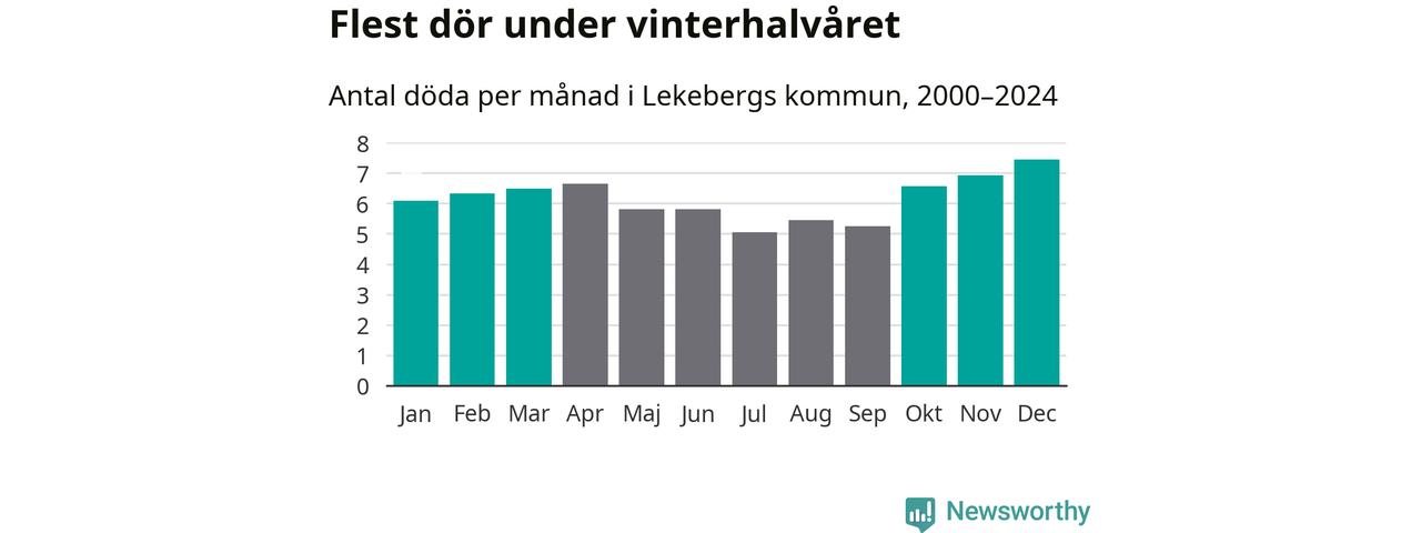 Så är det även i Lekeberg. Under de senaste 25 åren har 976 personer dött i kommunen under vinterhalvåret, jämfört med 837 personer under sommarhalvåret – alltså 17 procent fler.