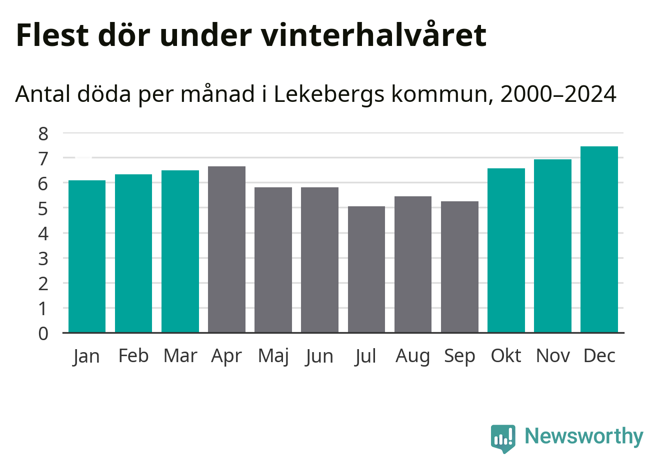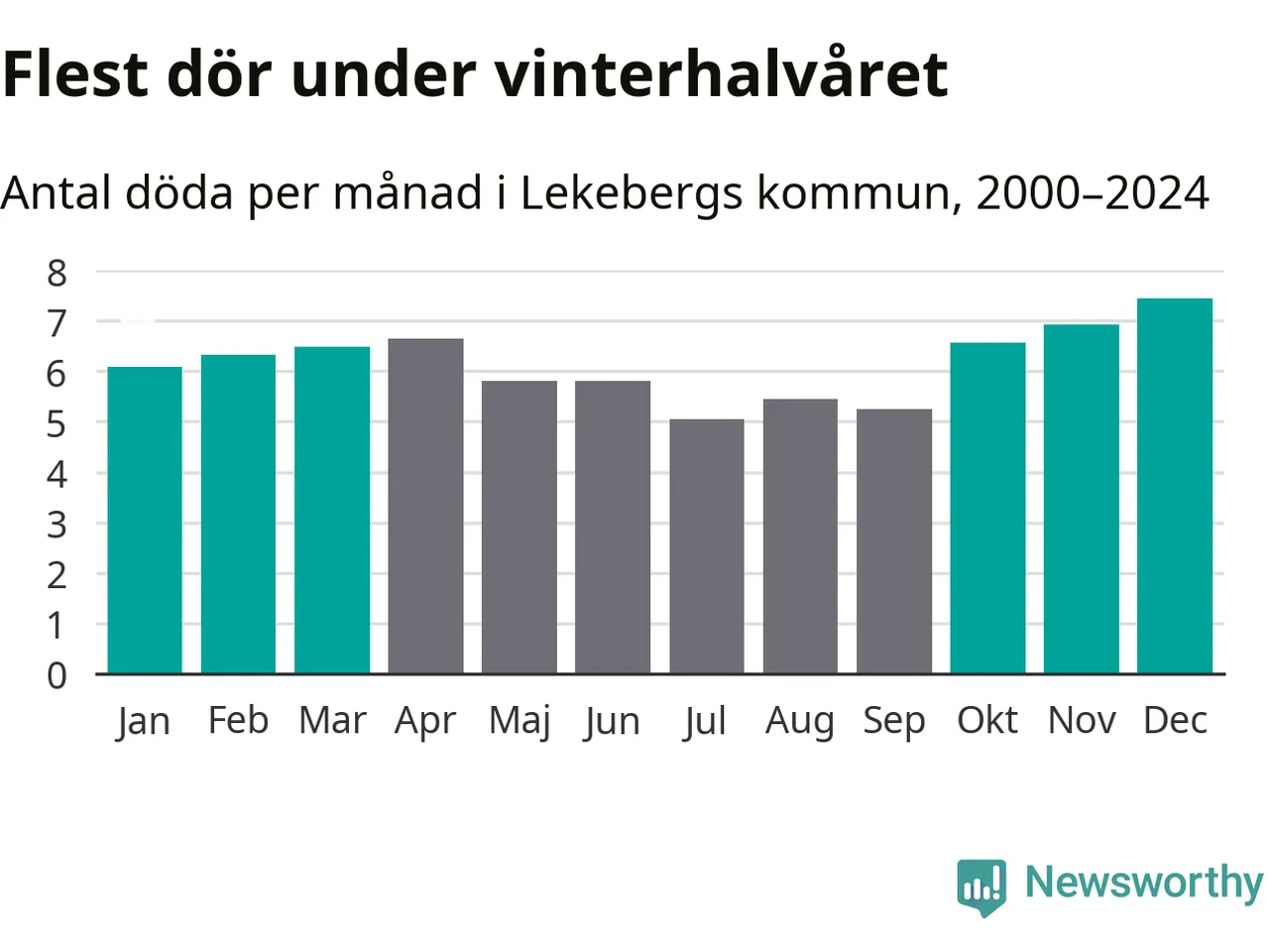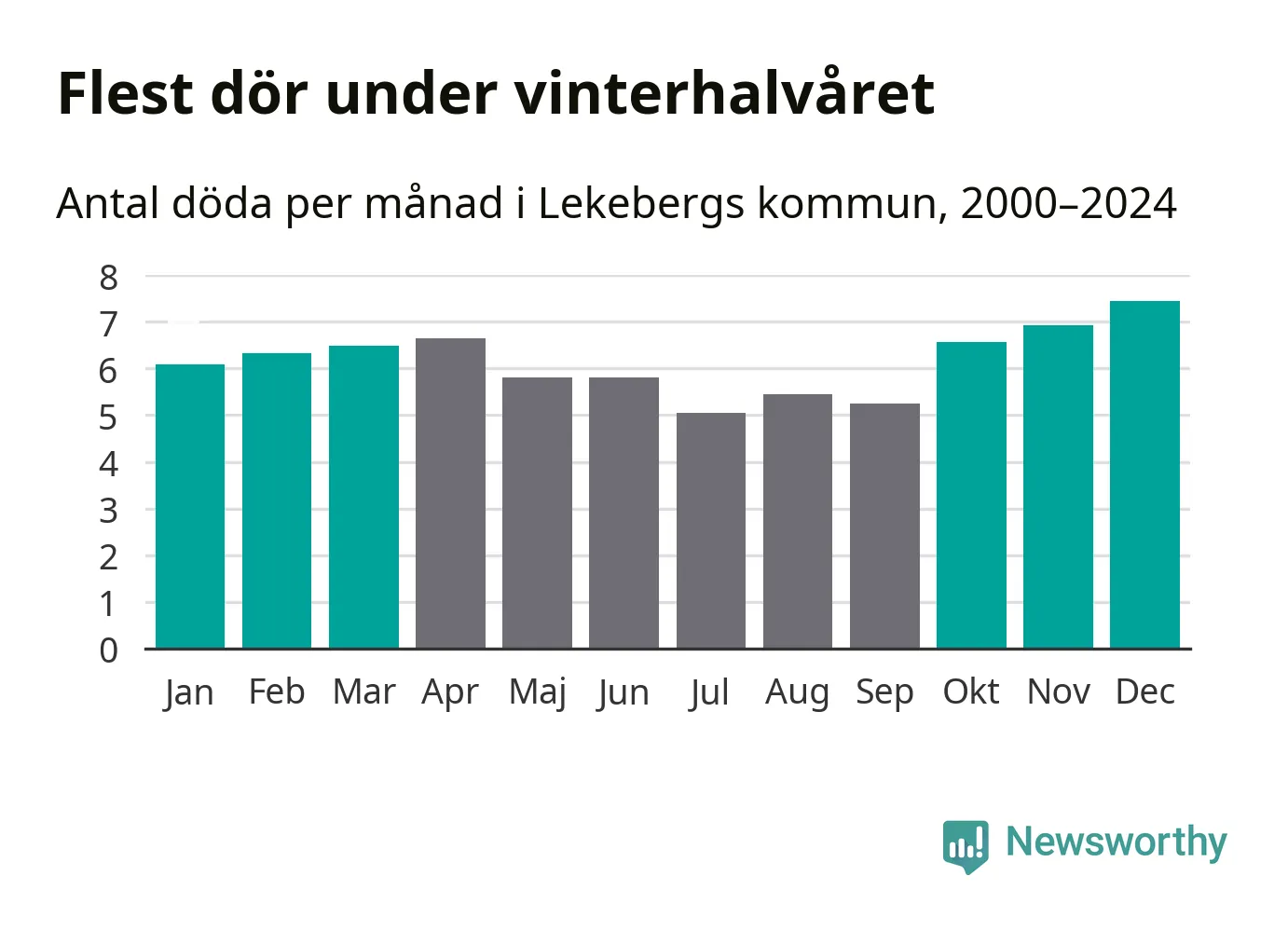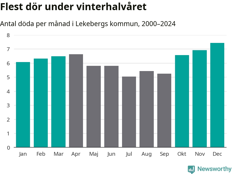 Så är det även i Lekeberg. Under de senaste 25 åren har 976 personer dött i kommunen under vinterhalvåret, jämfört med 837 personer under sommarhalvåret – alltså 17 procent fler.