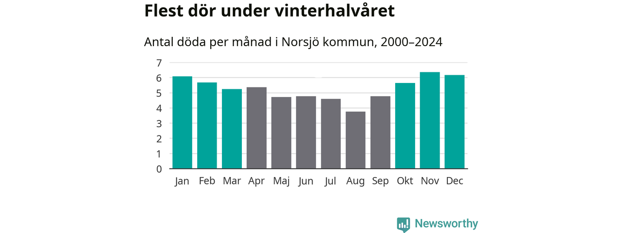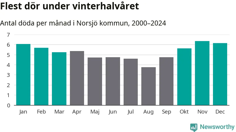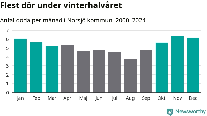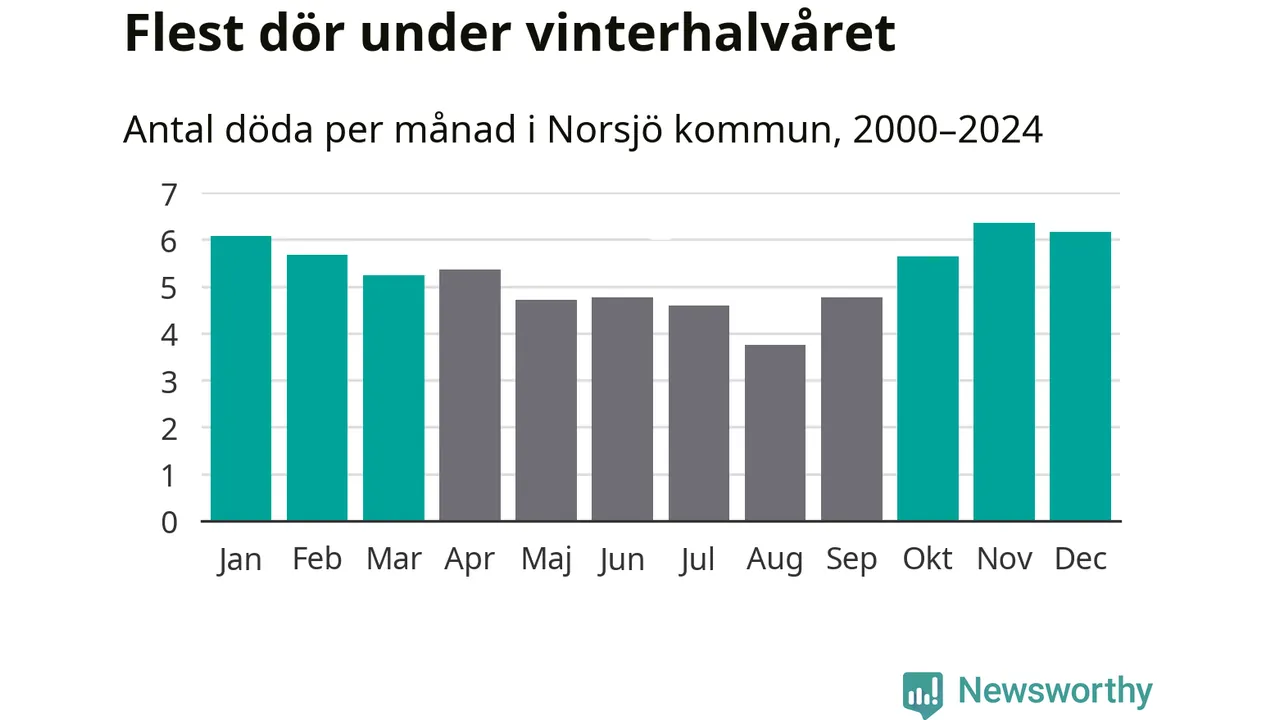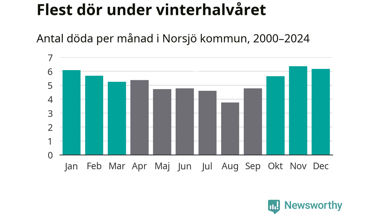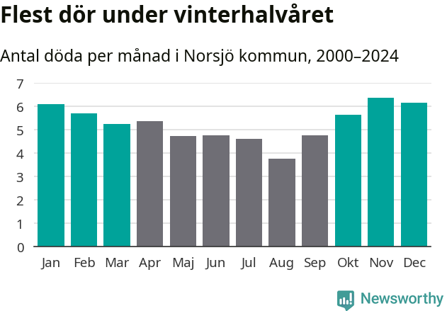 Så är det även i Norsjö. Under de senaste 25 åren har 854 personer dött i kommunen under vinterhalvåret, jämfört med 717 personer under sommarhalvåret – alltså 19 procent fler.