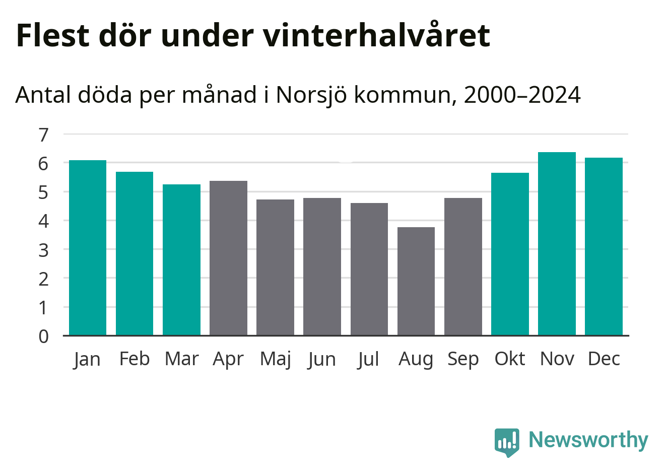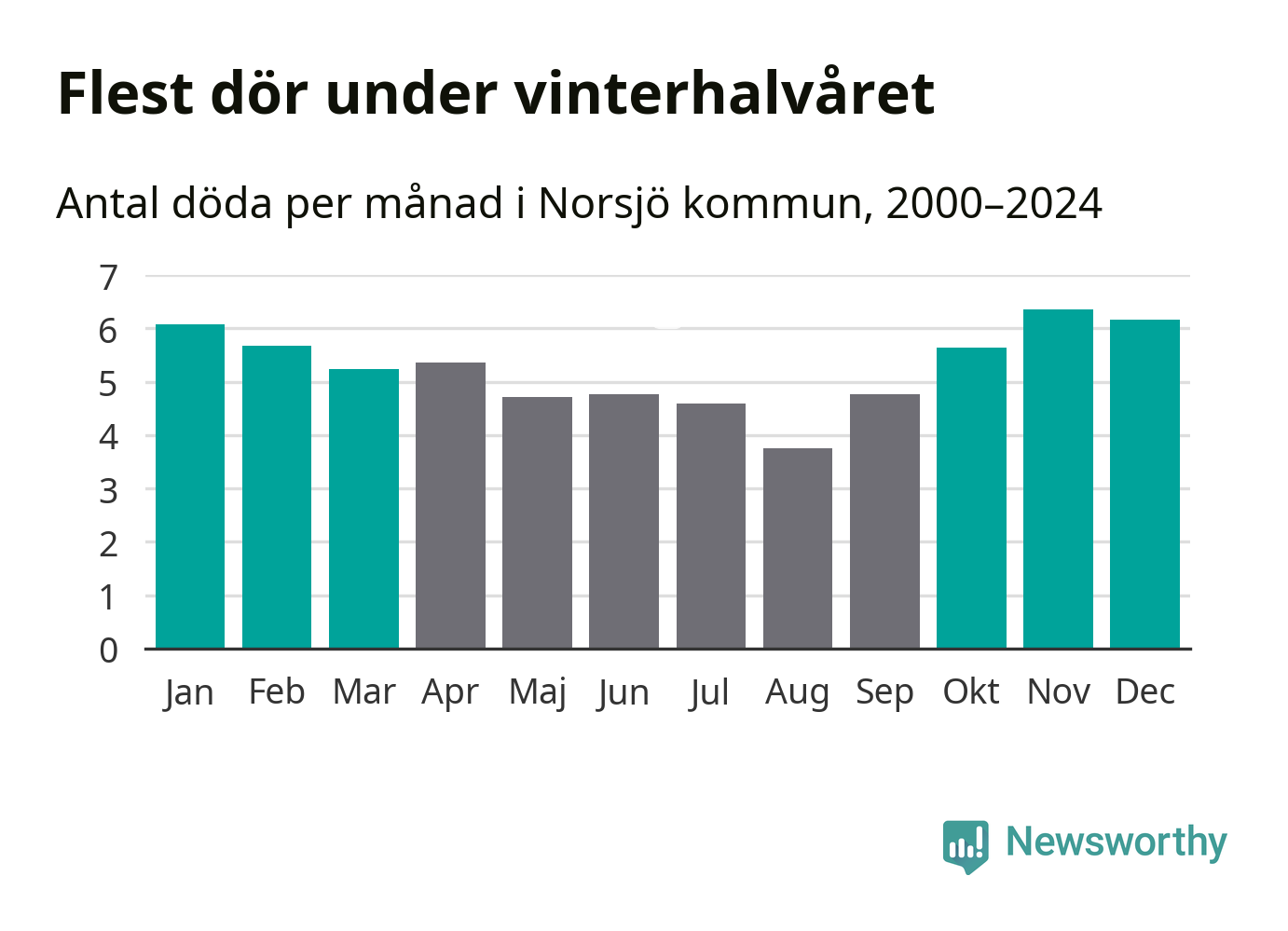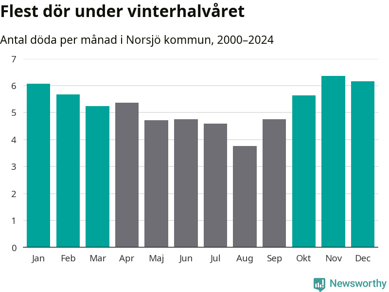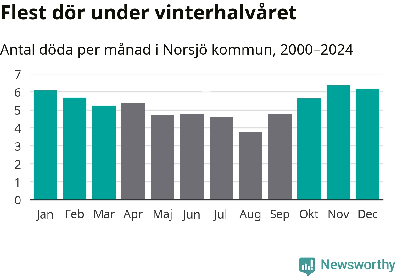 Så är det även i Norsjö. Under de senaste 25 åren har 854 personer dött i kommunen under vinterhalvåret, jämfört med 717 personer under sommarhalvåret – alltså 19 procent fler.
