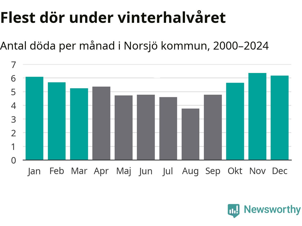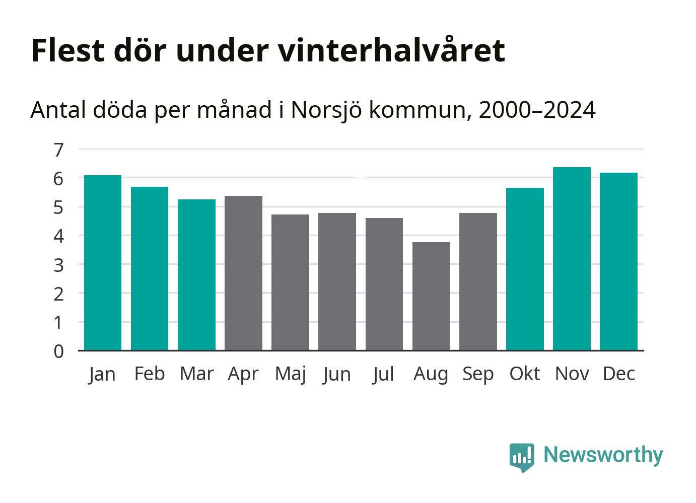 I landet som helhet är det veckorna kring årsskiftet som är de allra dödligaste. Så är det även i Norsjö, där den dödligaste perioden infaller under vecka 52, enligt statistik för de senaste 25 åren. Sammanlagt handlar det om 48 personer , vilket är 59 procent fler än snittet för resten av året.