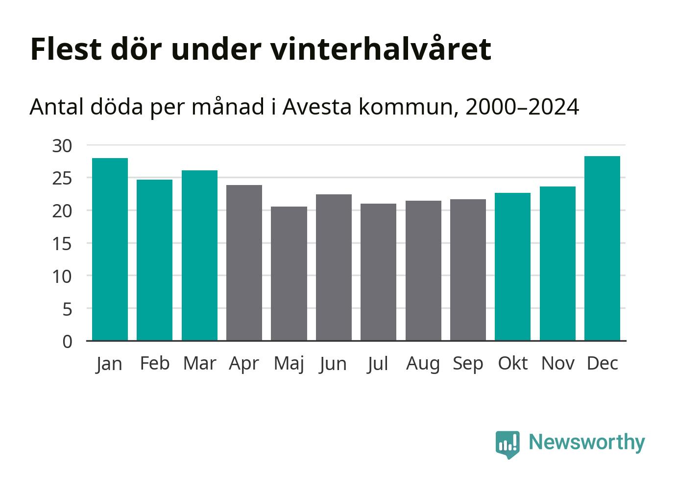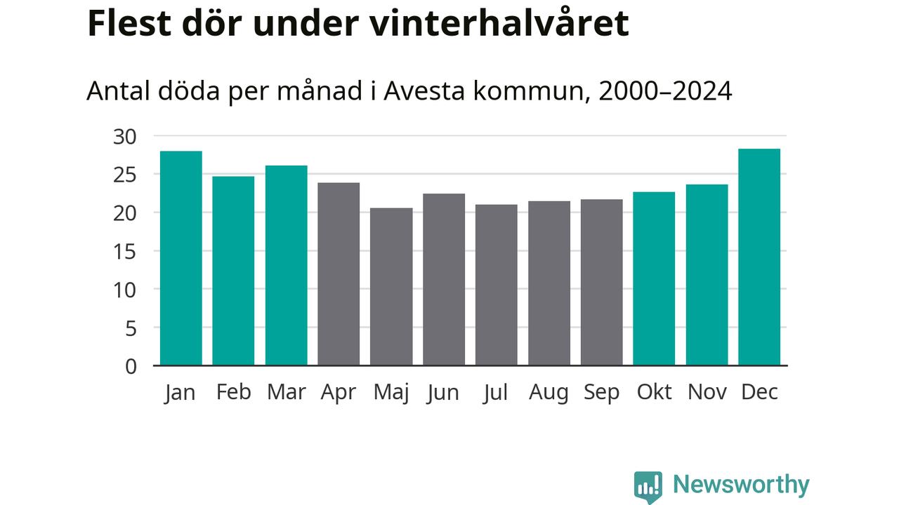 I landet som helhet är det veckorna kring årsskiftet som är de allra dödligaste. I Avesta har flest istället dött vecka 50. Sammanlagt under de senaste 25 åren handlar det om 172 personer, vilket är 28 procent fler än snittet för resten av året.