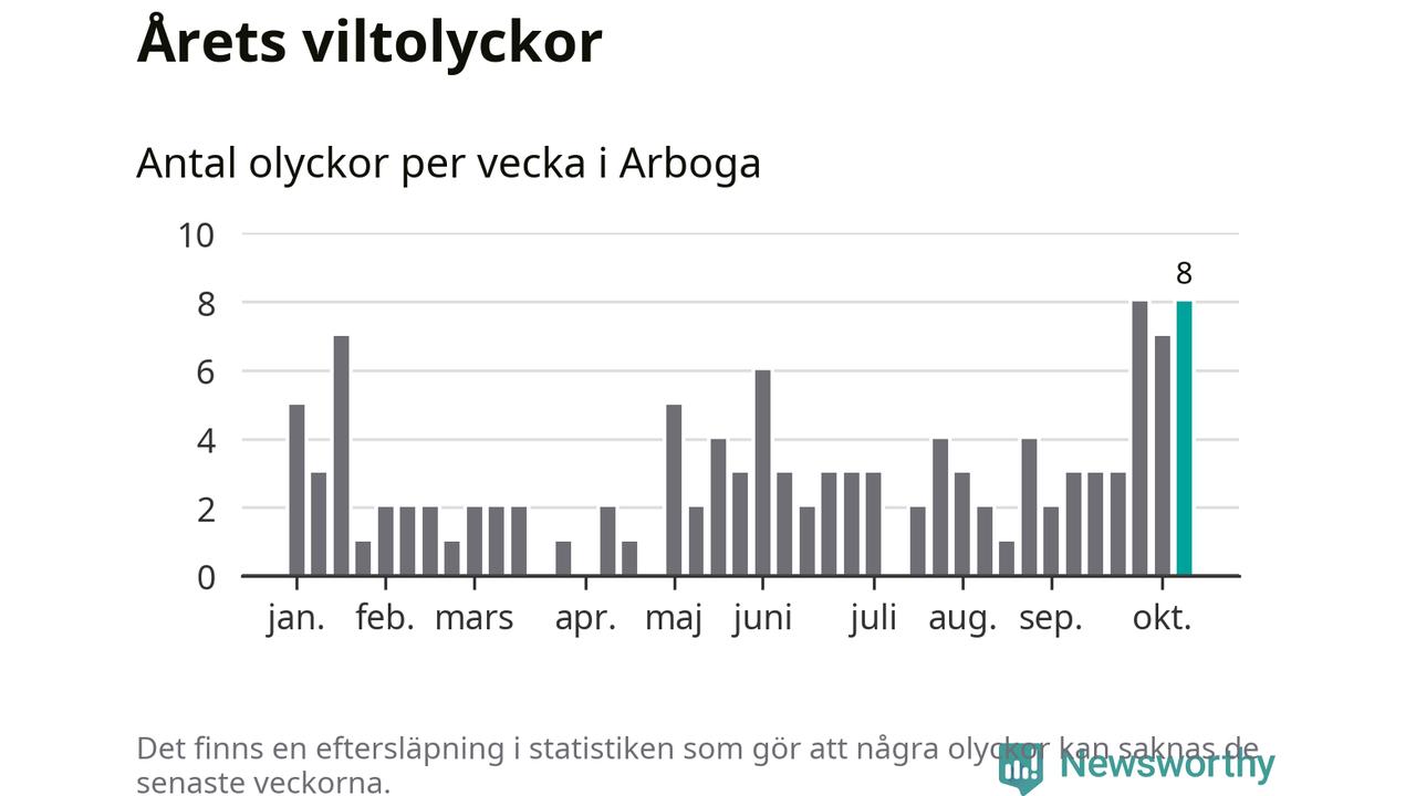 Hittills har åtta viltolyckor rapporterats in i Arboga kommun från vecka 42. Det är en av de högsta siffrorna för en enskild vecka på över tio år.