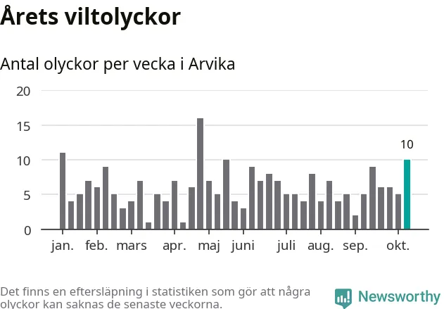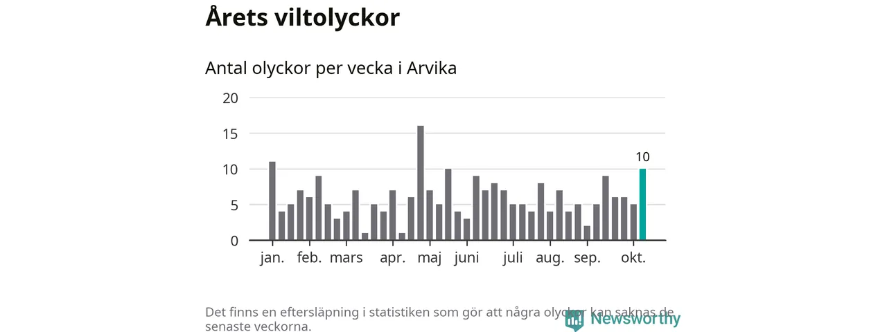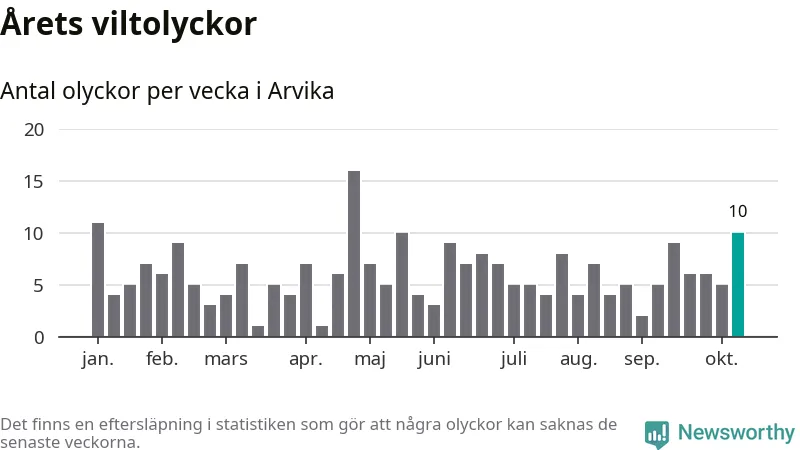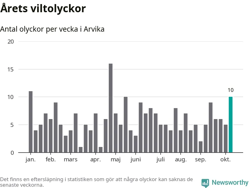 Tio viltolyckor i Arvika förra veckan – här inträffade de