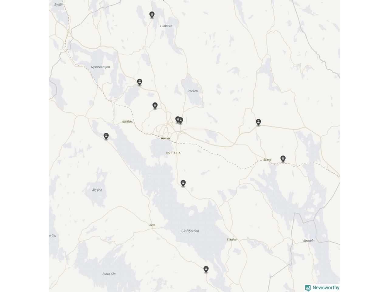 Karta över viltolyckor i Arvika kommun