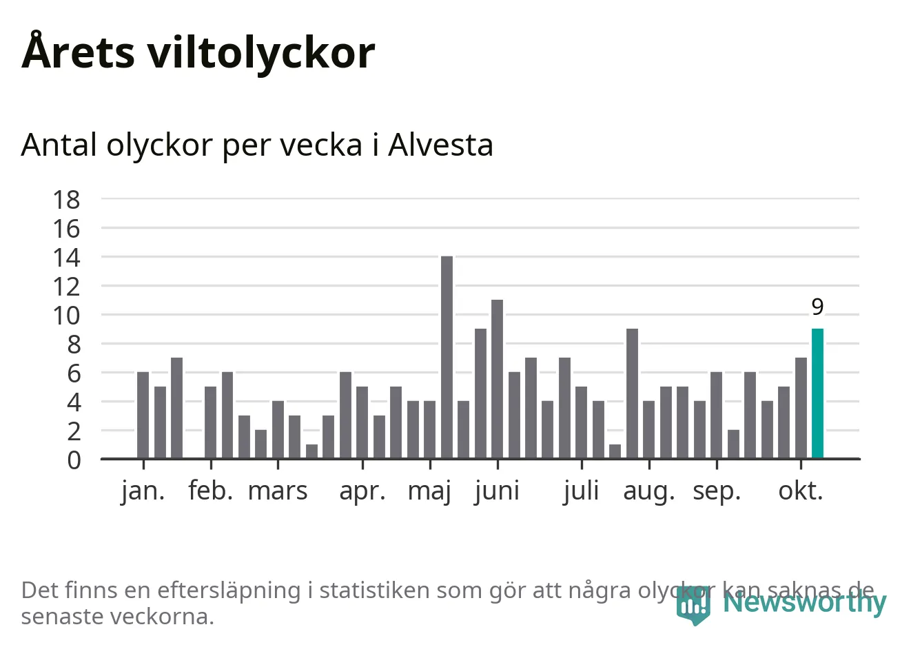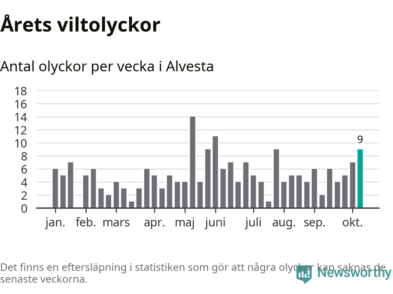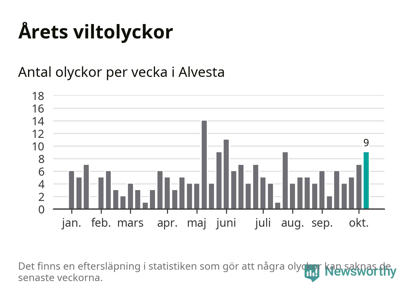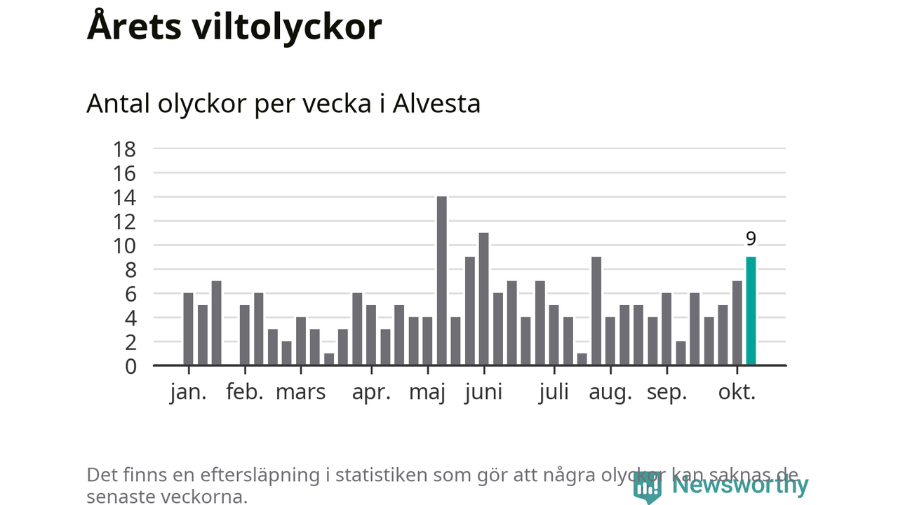 Hittills har nio viltolyckor rapporterats in i Alvesta kommun från vecka 42. Se listan här.