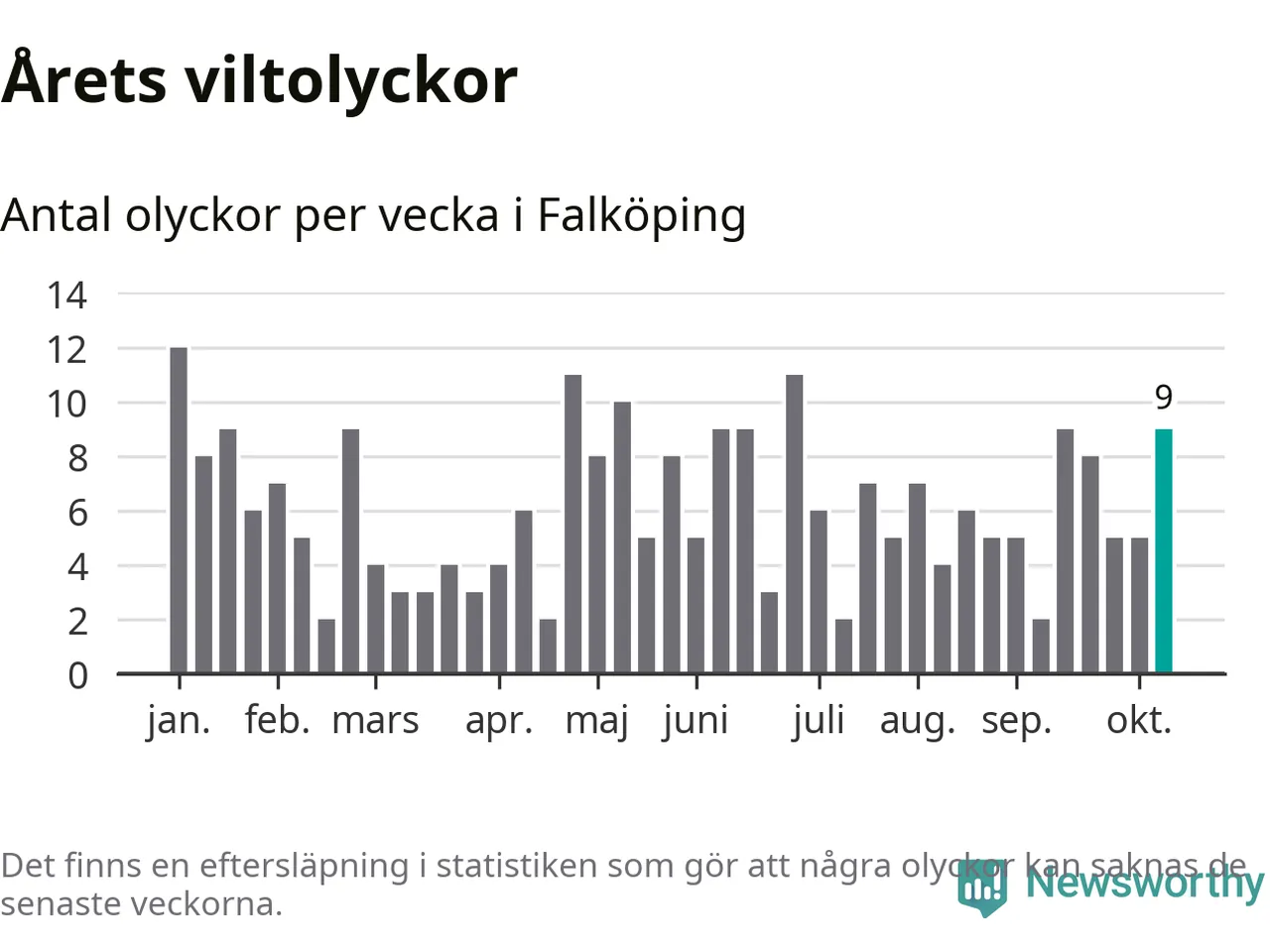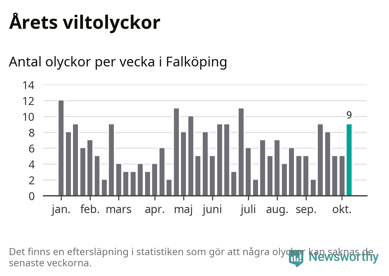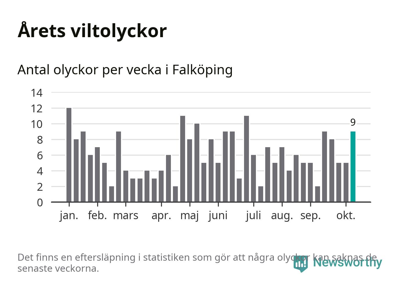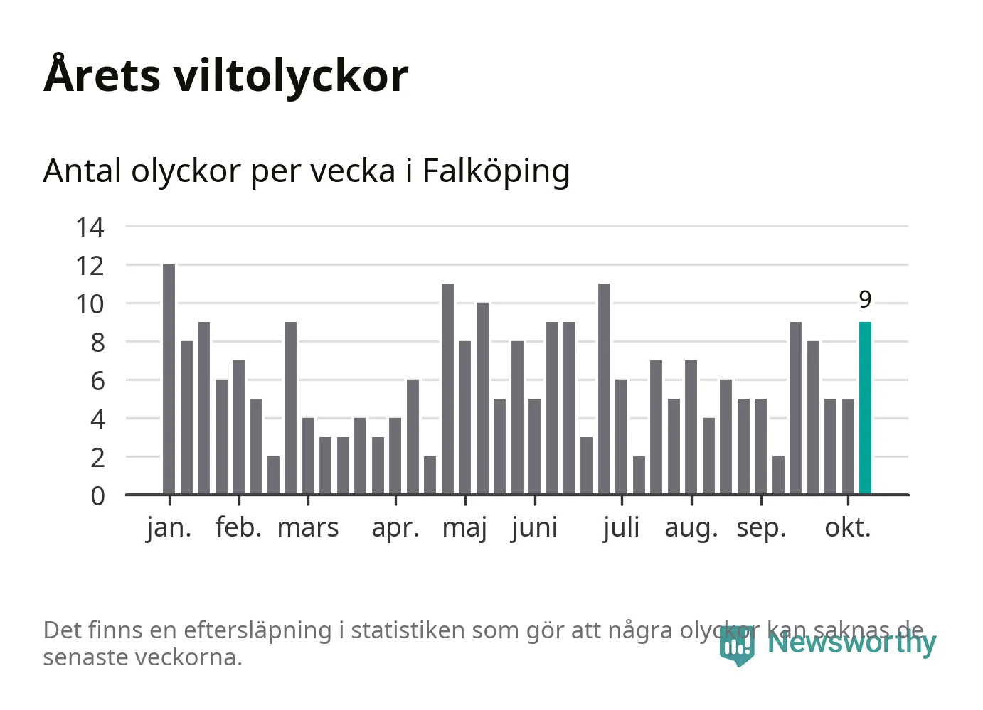 Hittills har nio viltolyckor rapporterats in i Falköpings kommun från vecka 42. Se listan här.