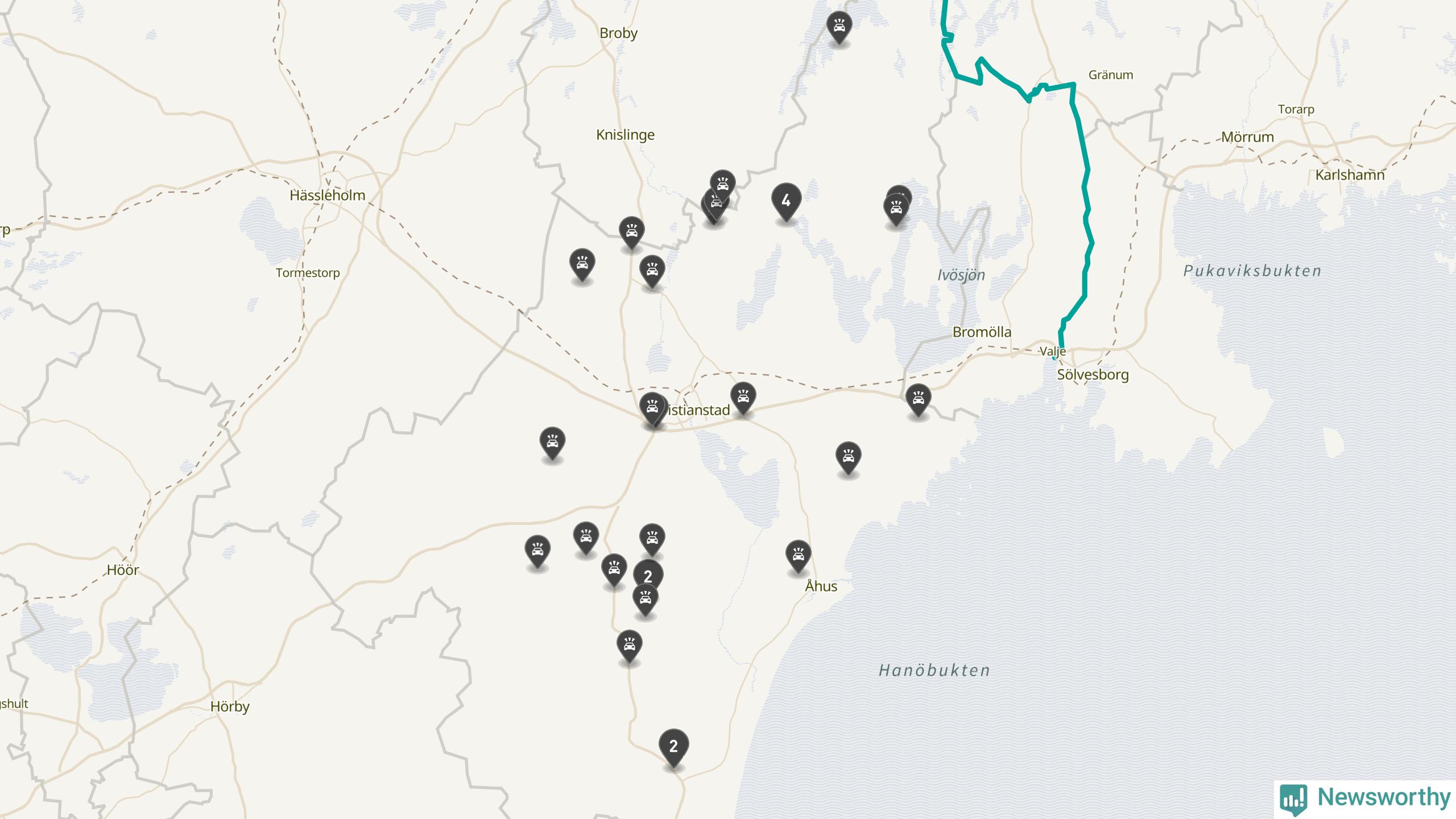 | Lördag 18 oktober kl. 23 | E22 | rådjur |