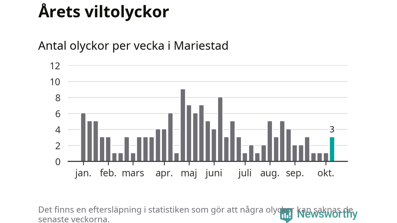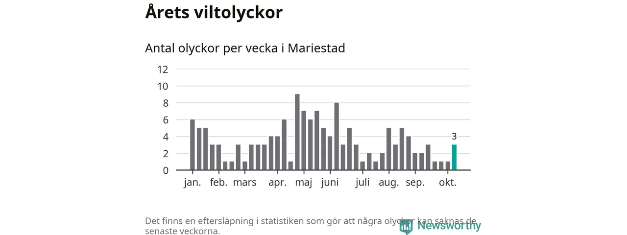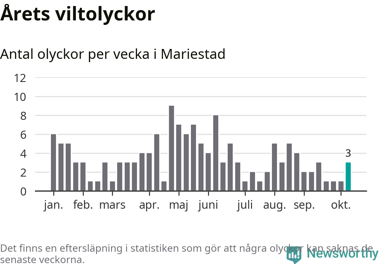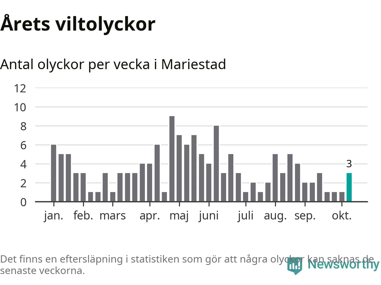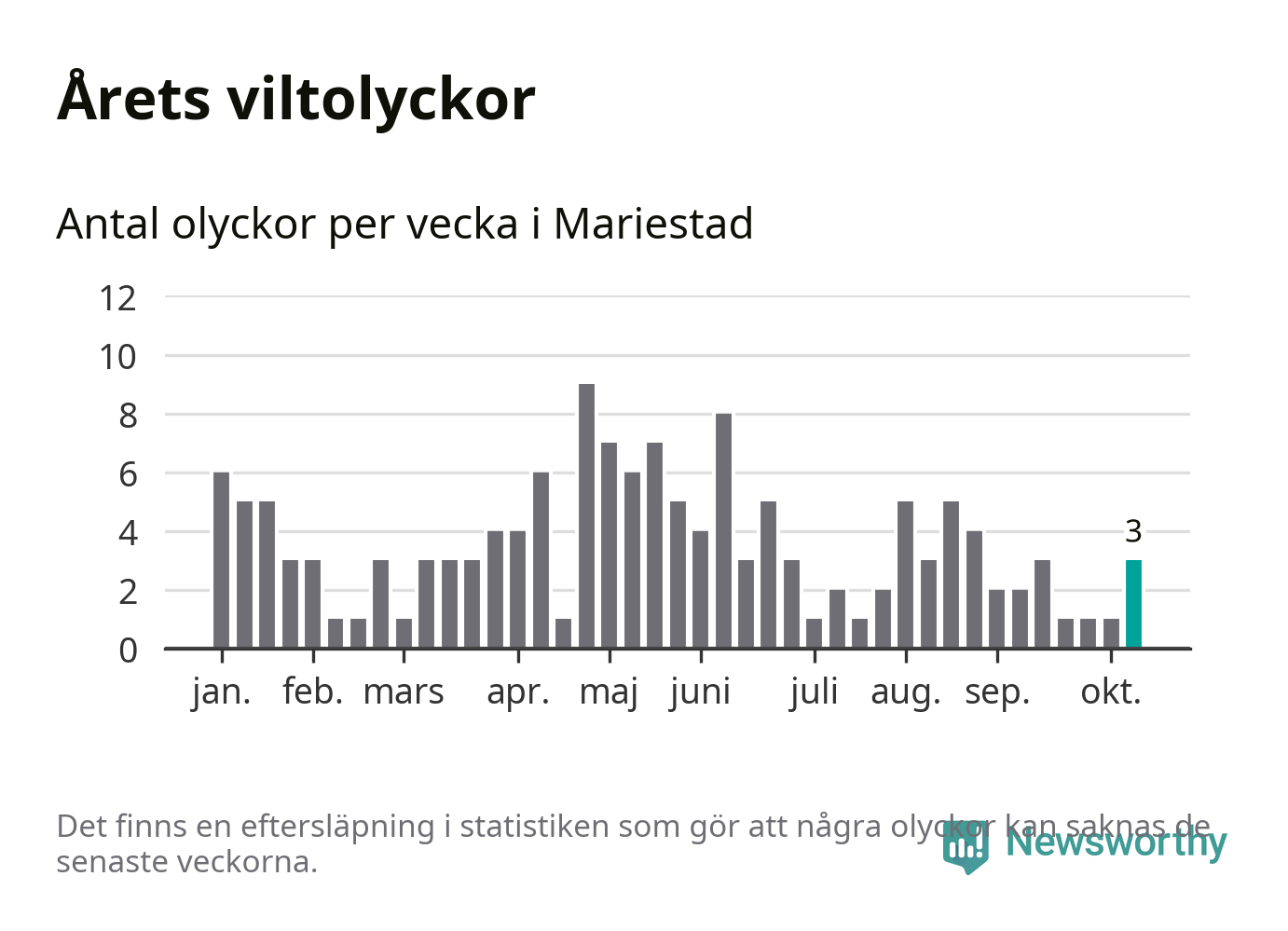 Hittills har tre viltolyckor rapporterats in i Mariestads kommun från vecka 42. Se listan här.