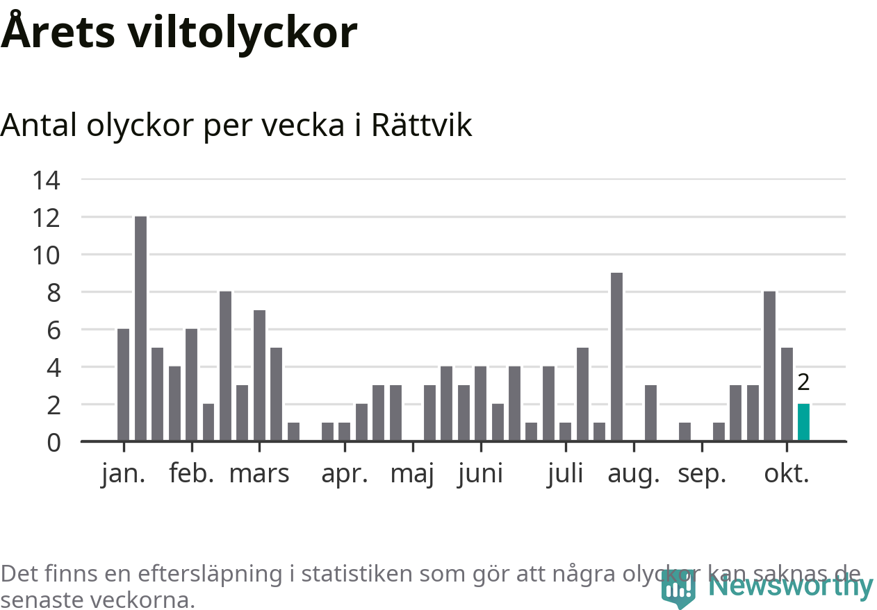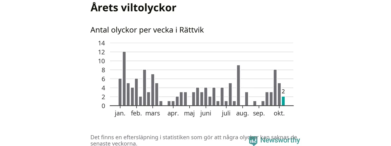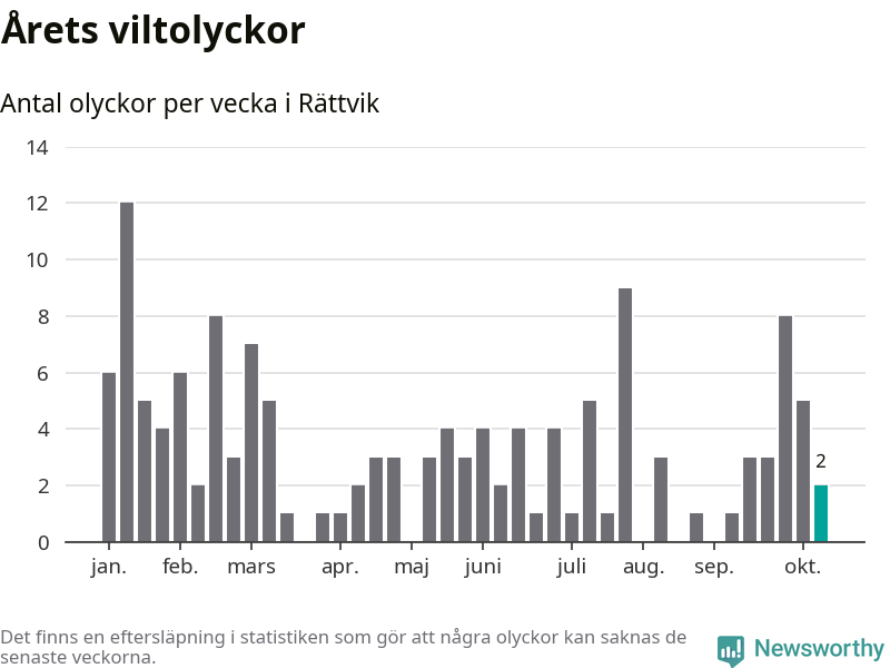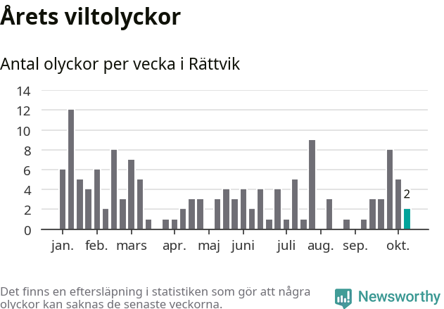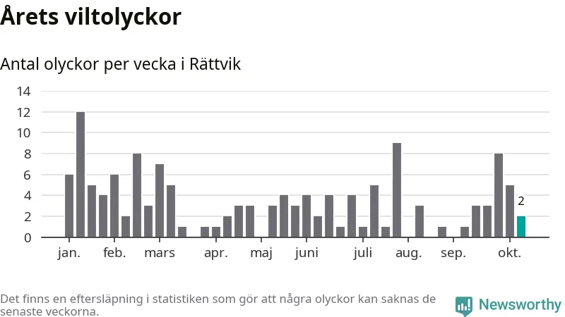 Hittills har två viltolyckor rapporterats in i Rättviks kommun från vecka 42. Se listan här.