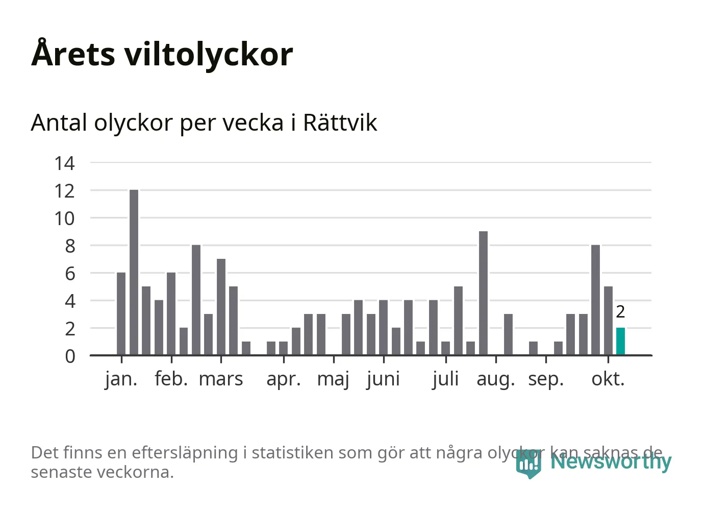 Totalt det här året har det inträffat 139 viltolyckor i kommunen. Det är en normal nivå i förhållande till hur det har sett ut under de senaste tio åren – genomsnittet för motsvarande period är 135.