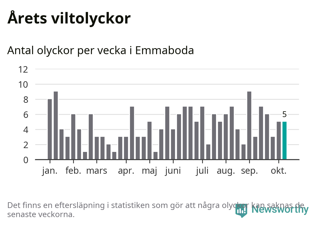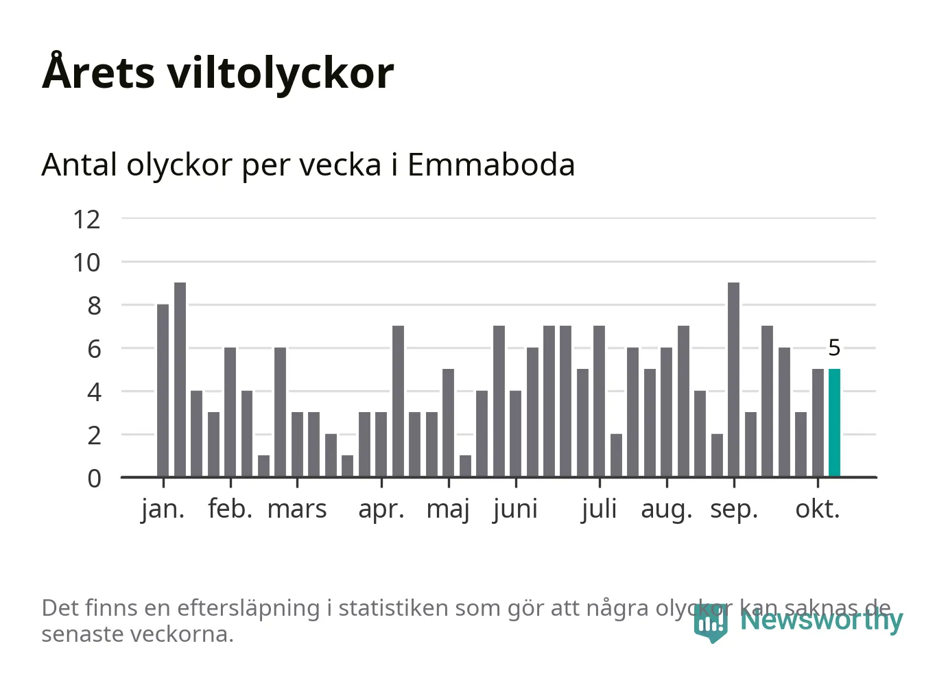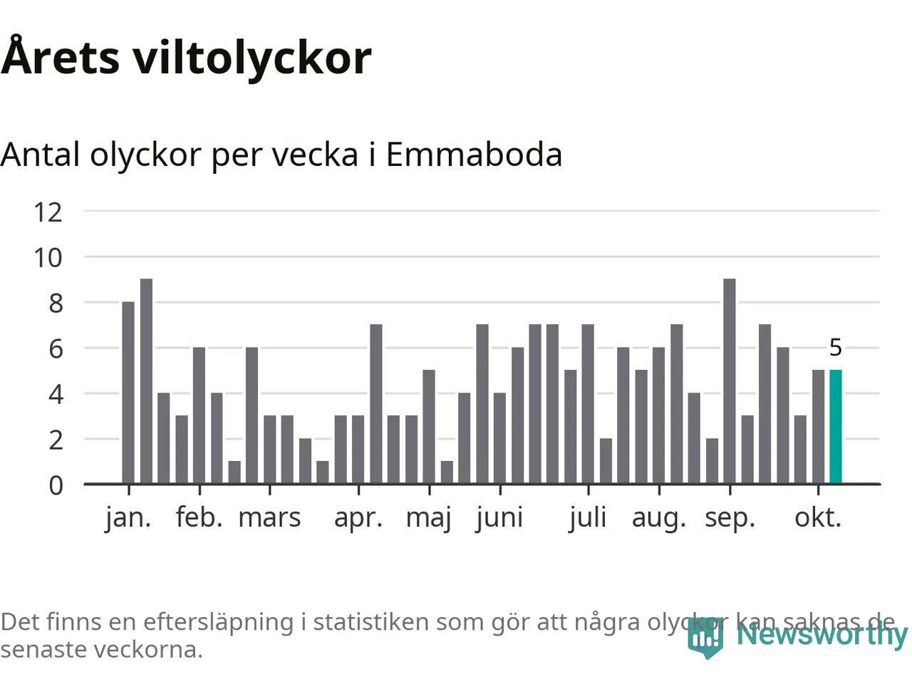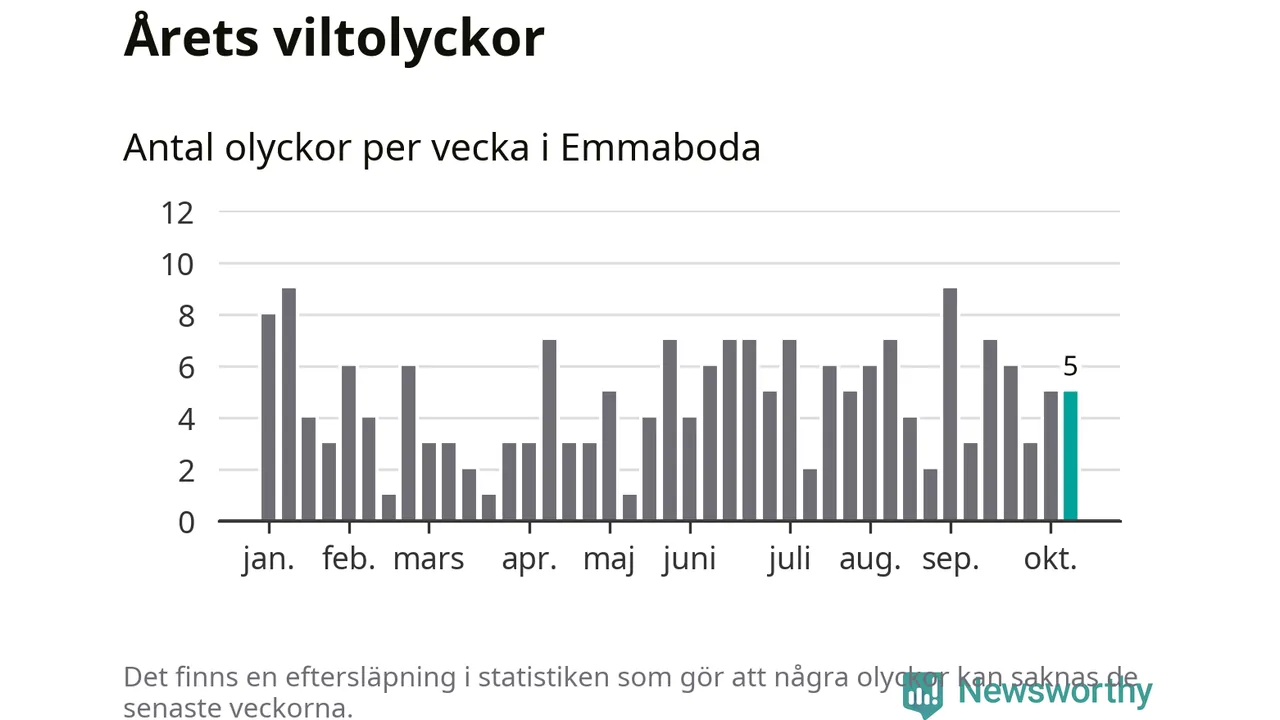 Hittills har fem viltolyckor rapporterats in i Emmaboda kommun från vecka 42. Se listan här.