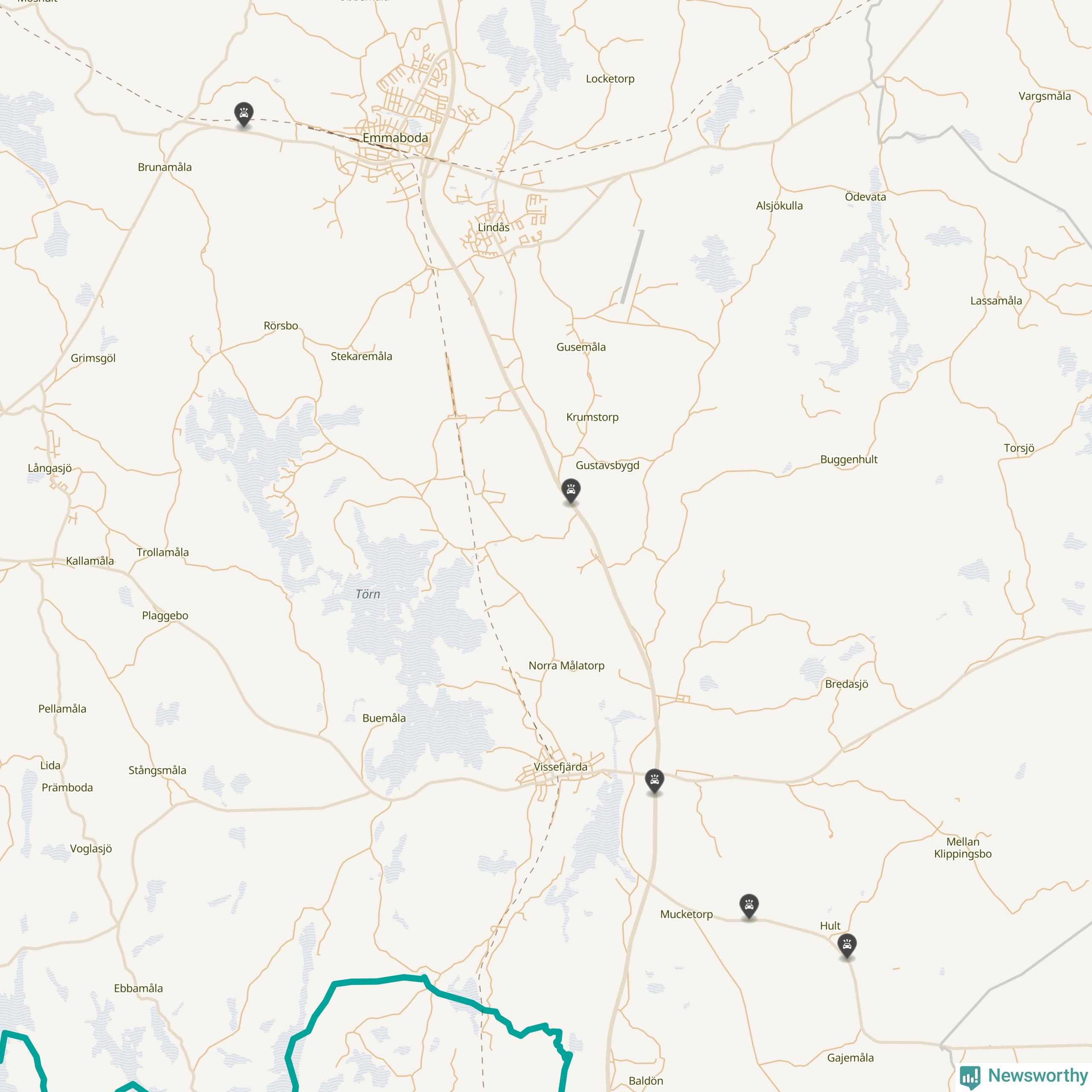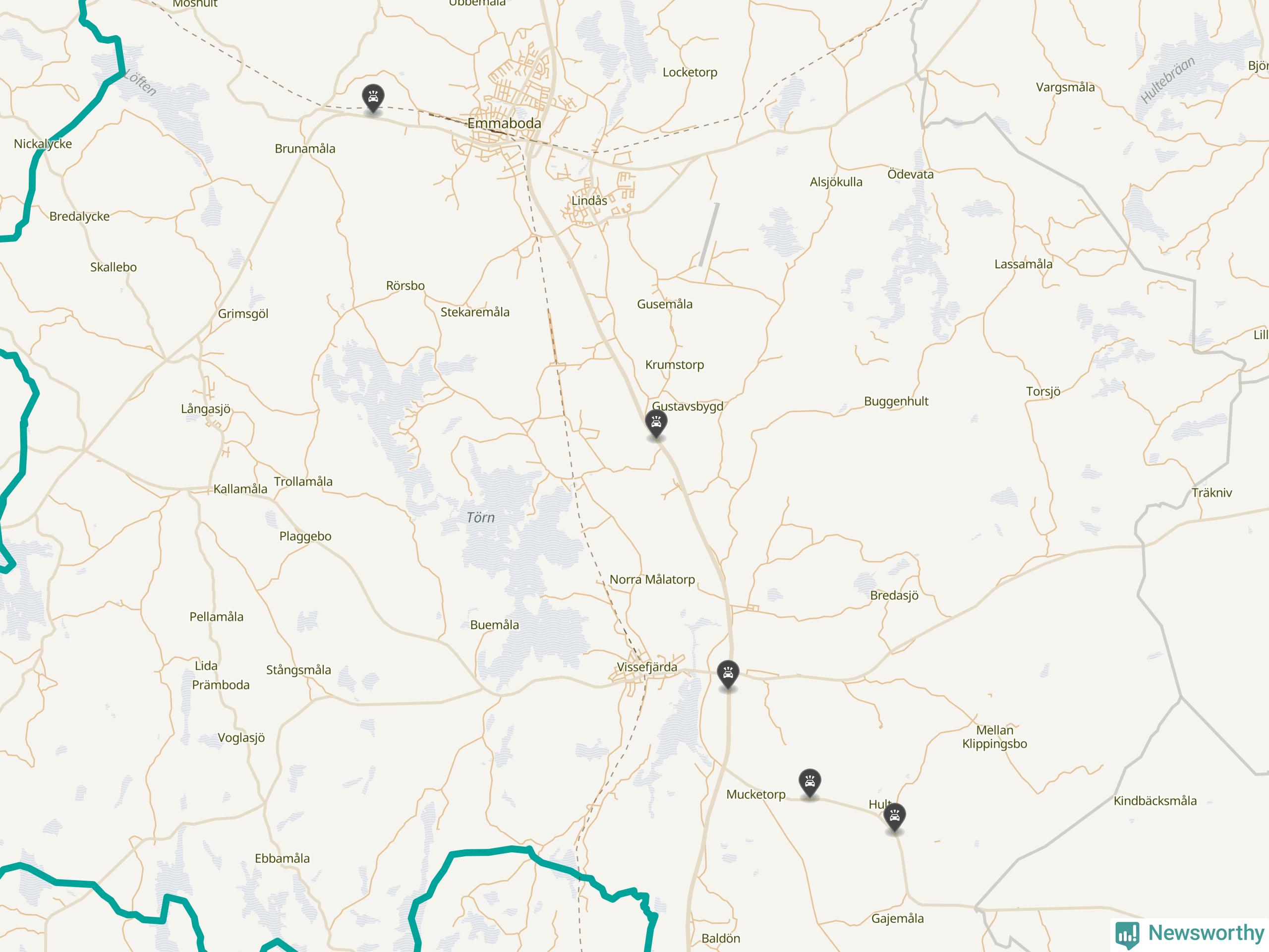 Här inträffade viltolyckorna i Emmaboda förra veckan