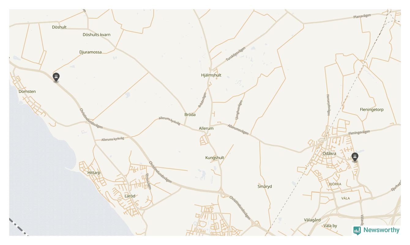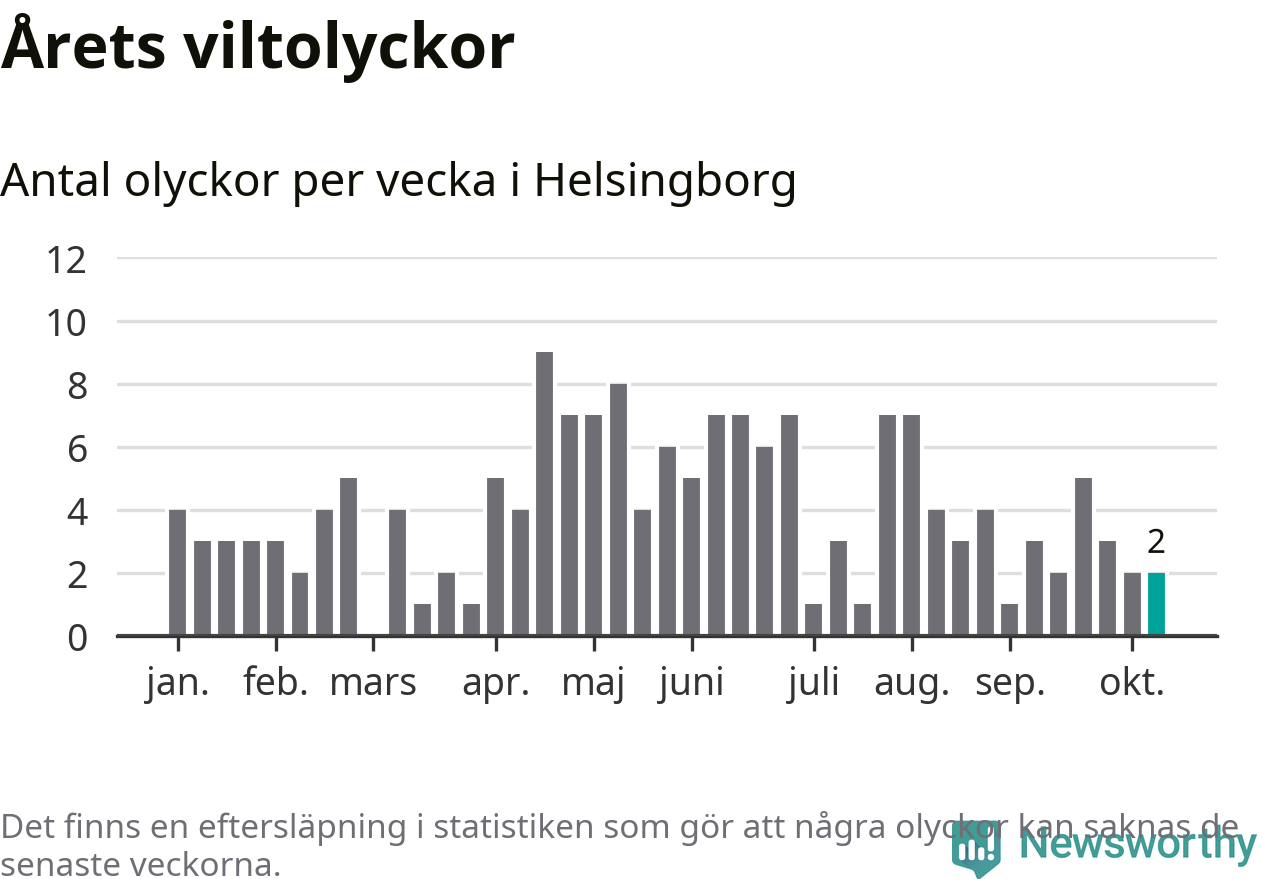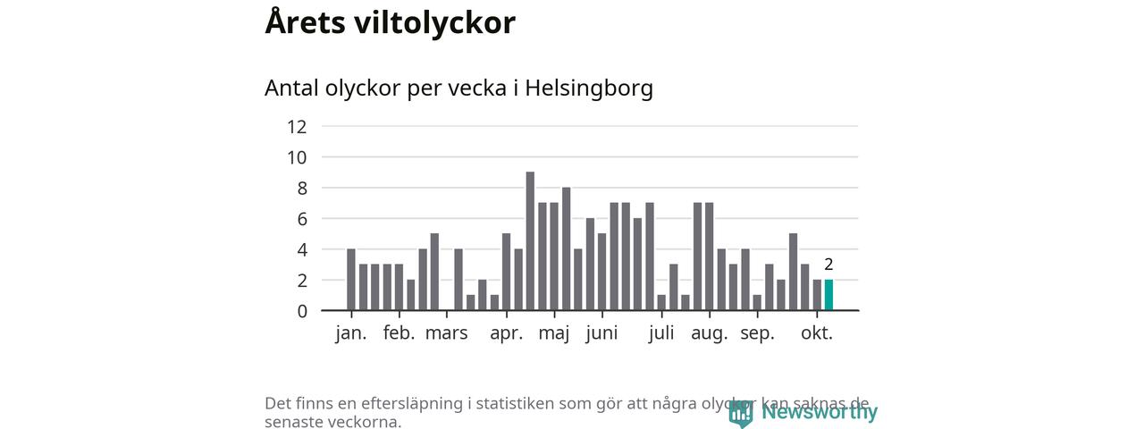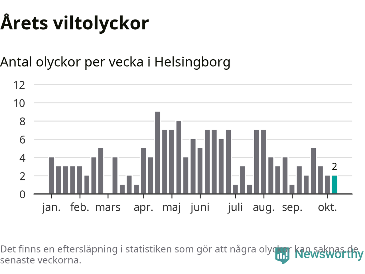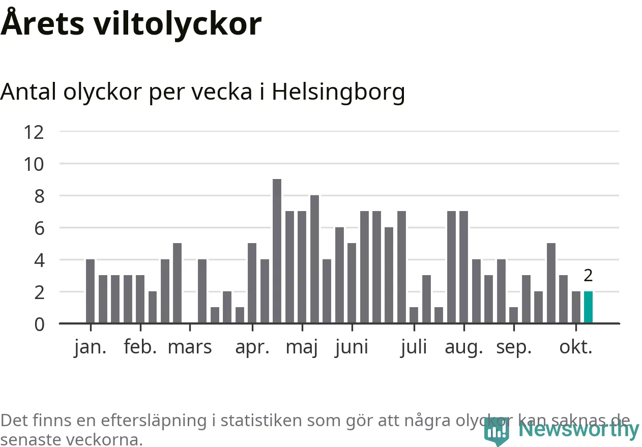 Hittills har två viltolyckor rapporterats in i Helsingborgs kommun från vecka 42. Se listan här.