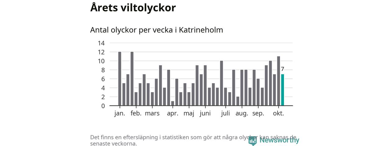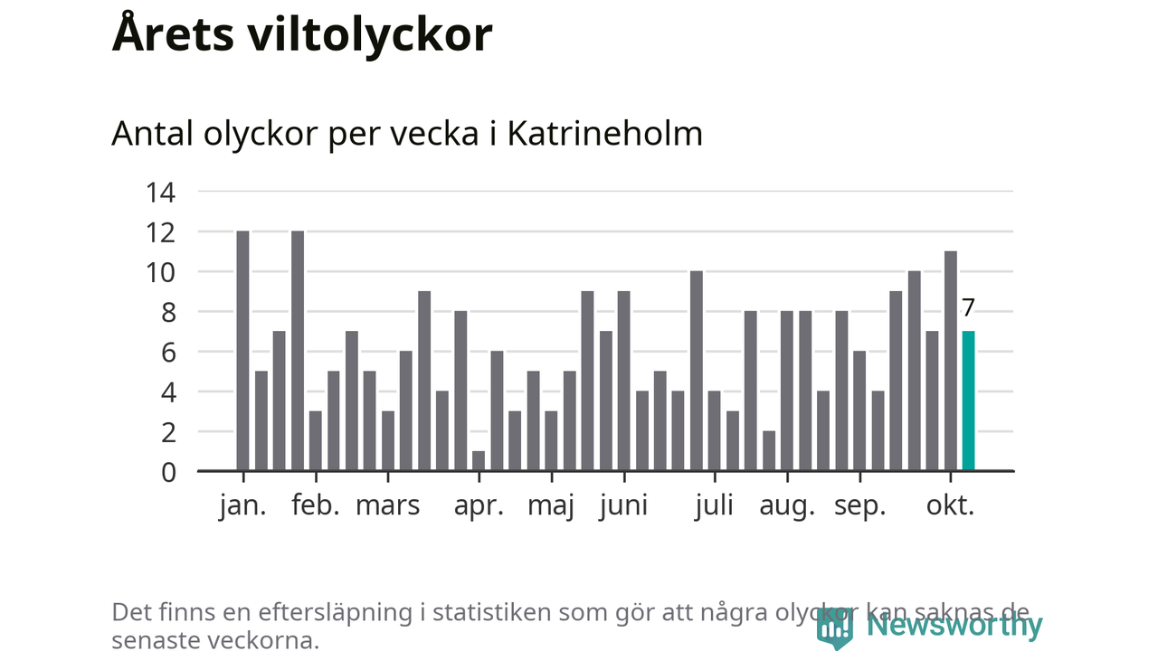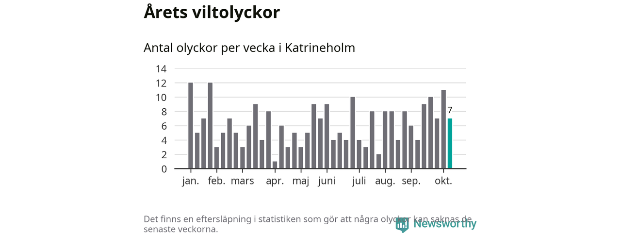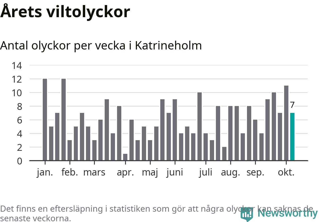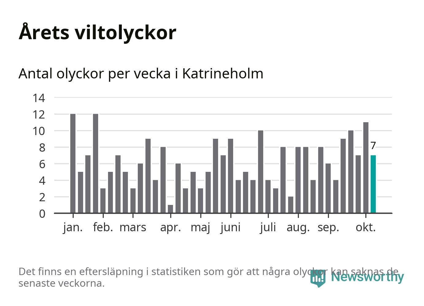 Hittills har sju viltolyckor rapporterats in i Katrineholms kommun från vecka 42. Se listan här.