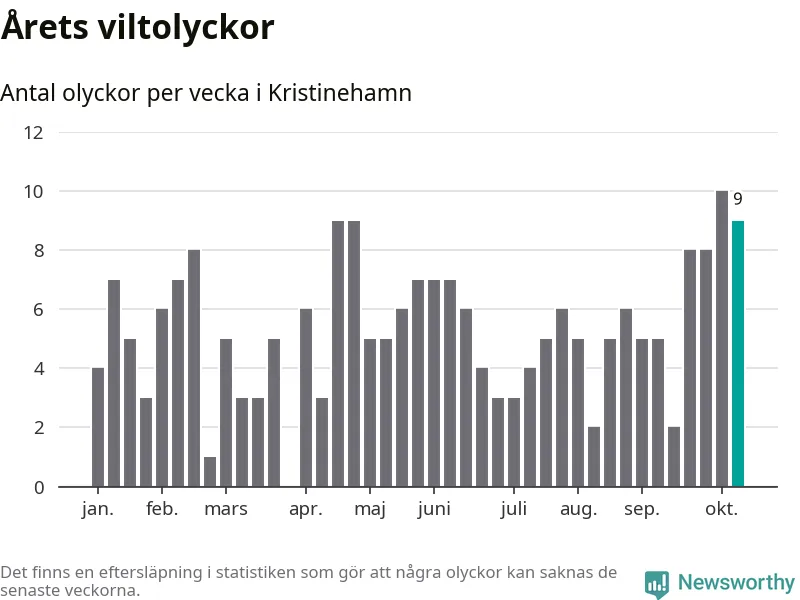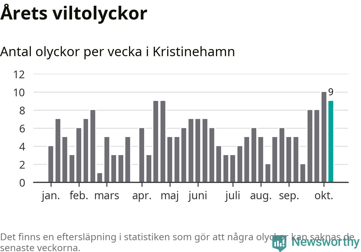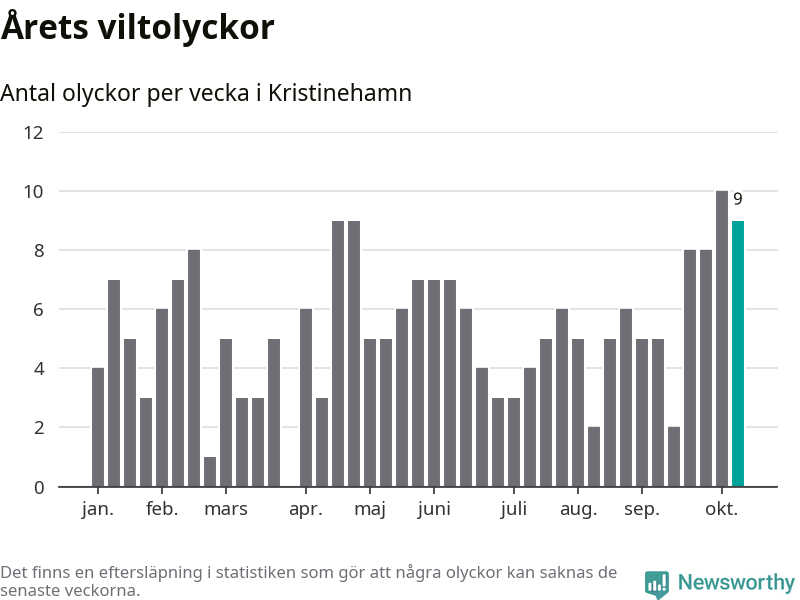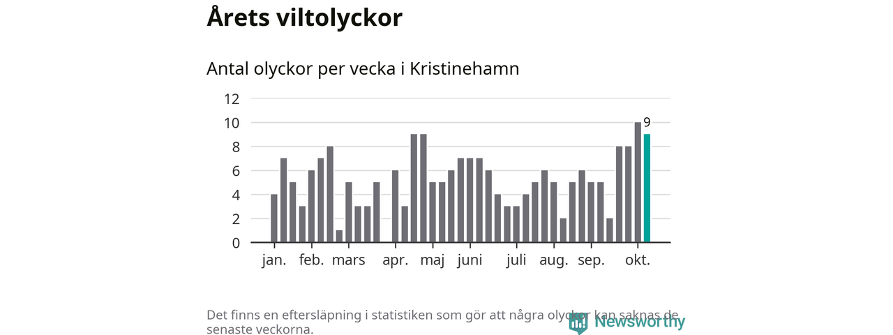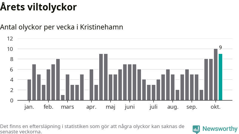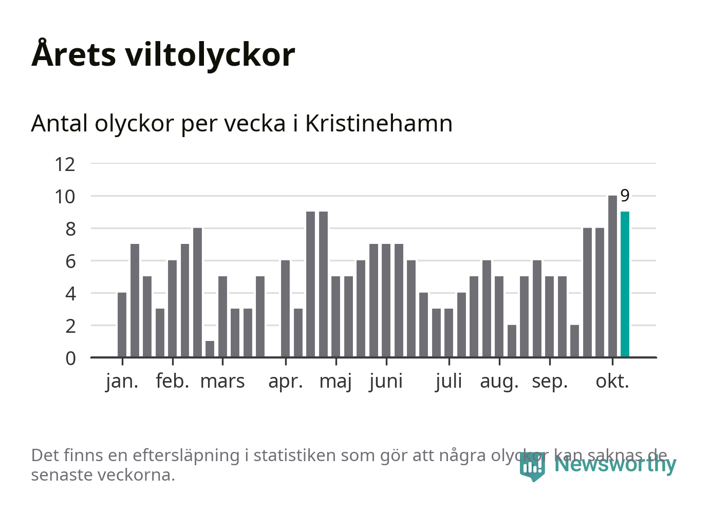 Hittills har nio viltolyckor rapporterats in i Kristinehamns kommun från vecka 42. Se listan här.