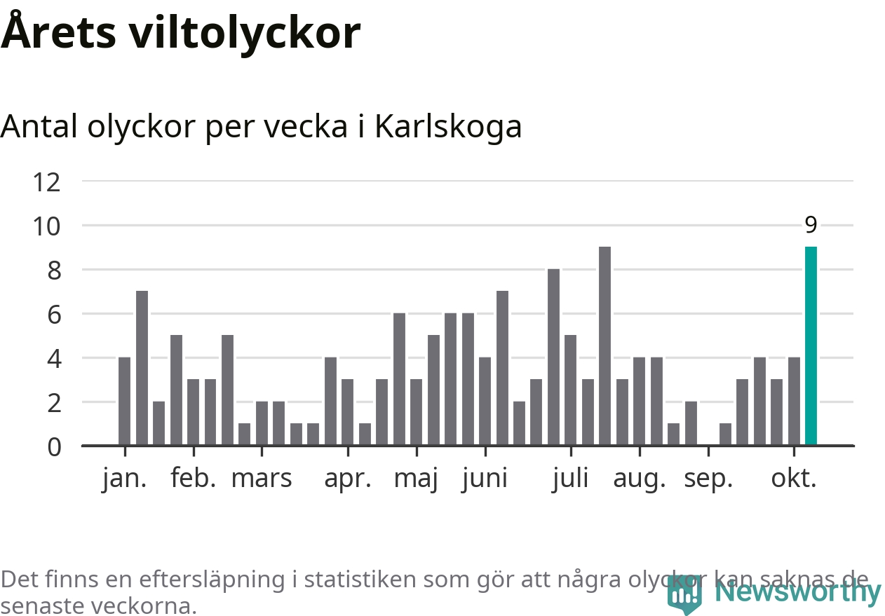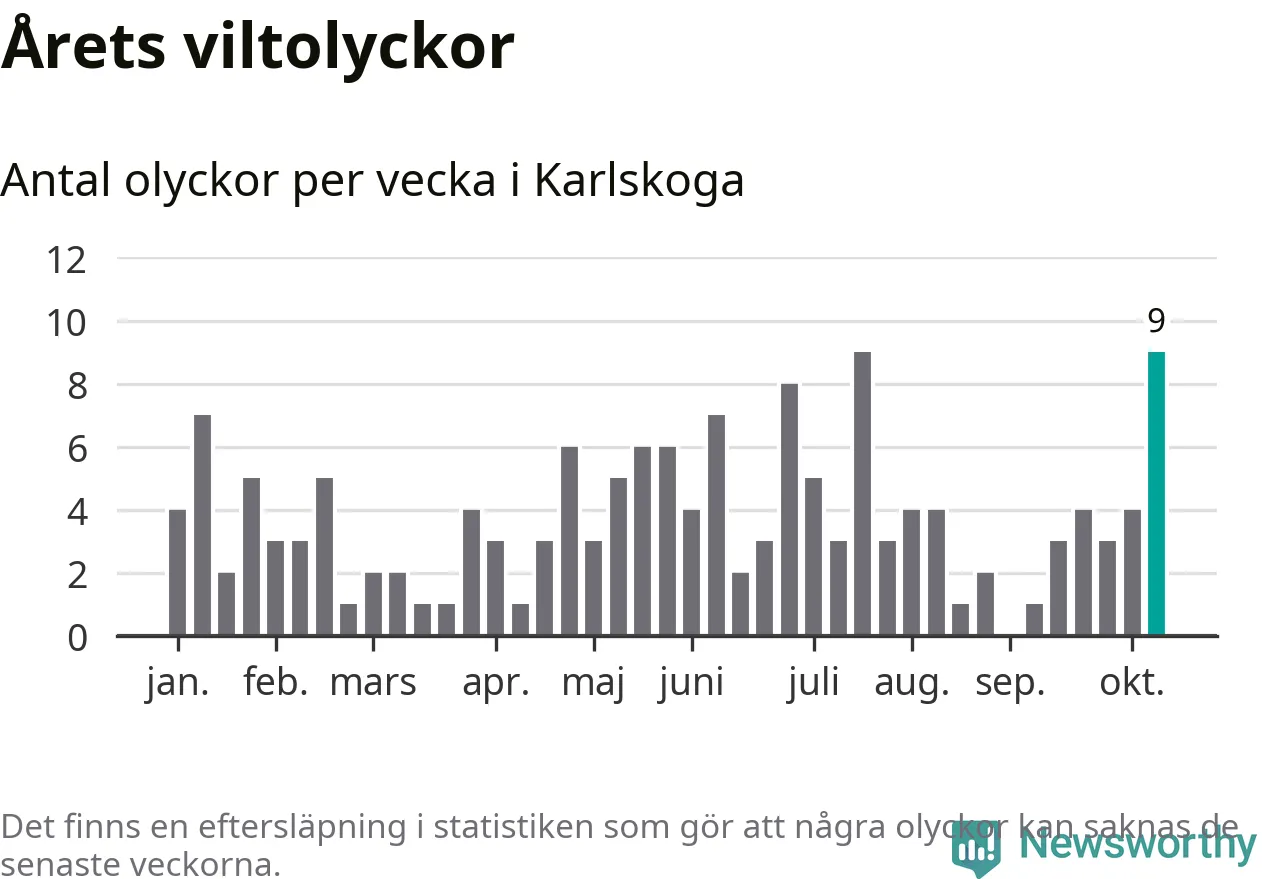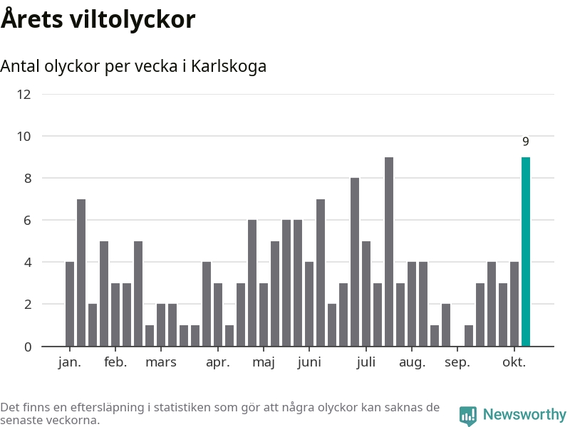 Nio olyckor på en enda vecka är också ovanligt många. Bara tio gånger tidigare sedan 2015 har det skett