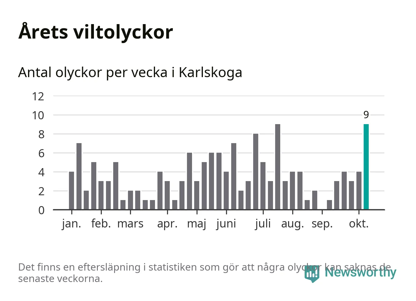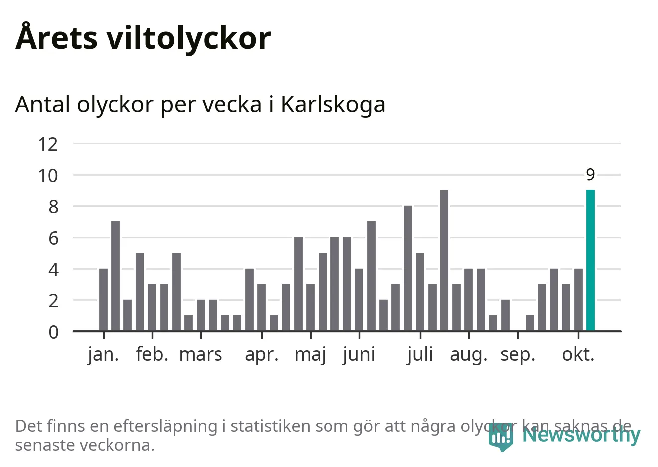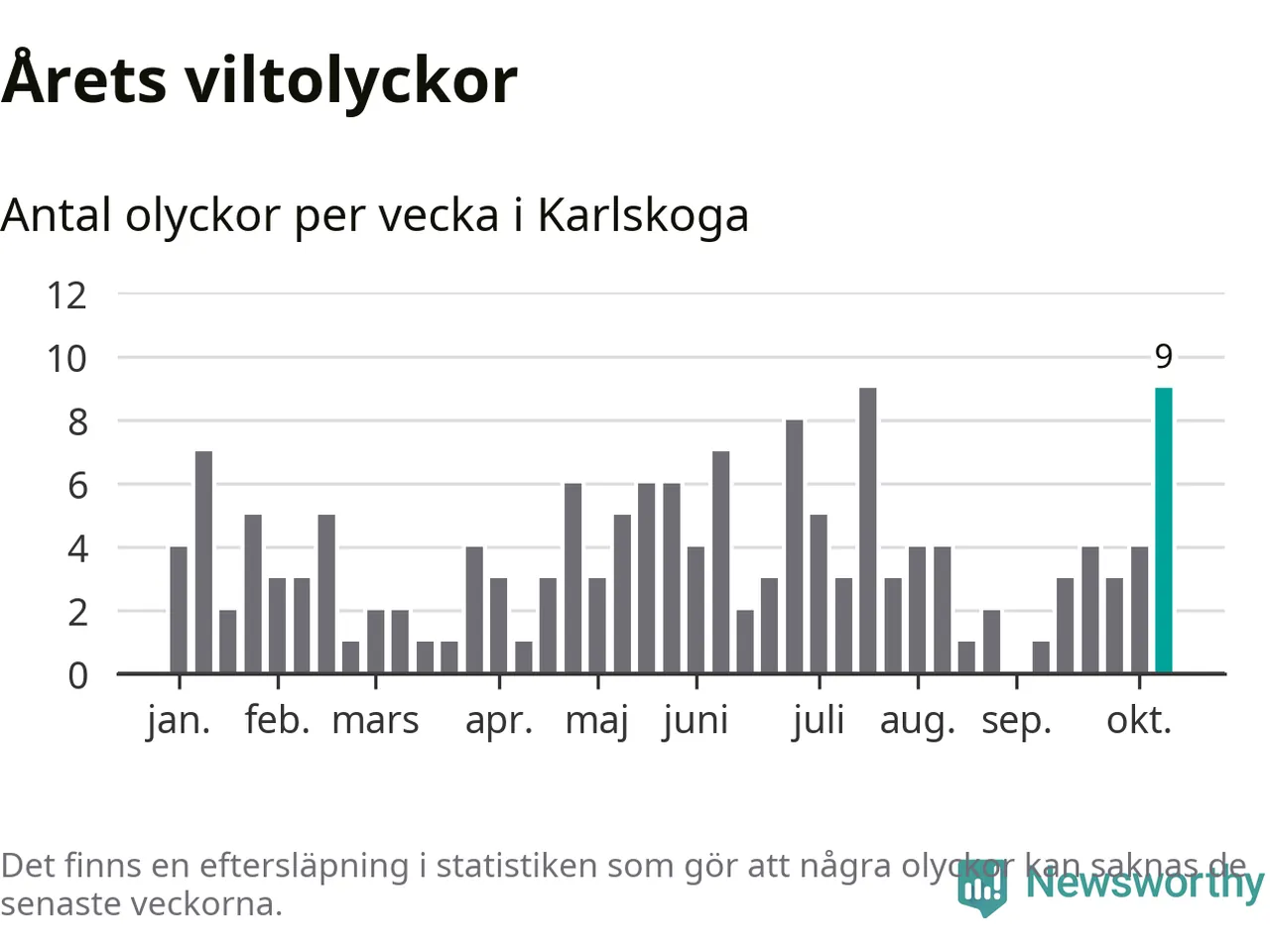 Nio olyckor på en enda vecka är också ovanligt många. Bara tio gånger tidigare sedan 2015 har det skett