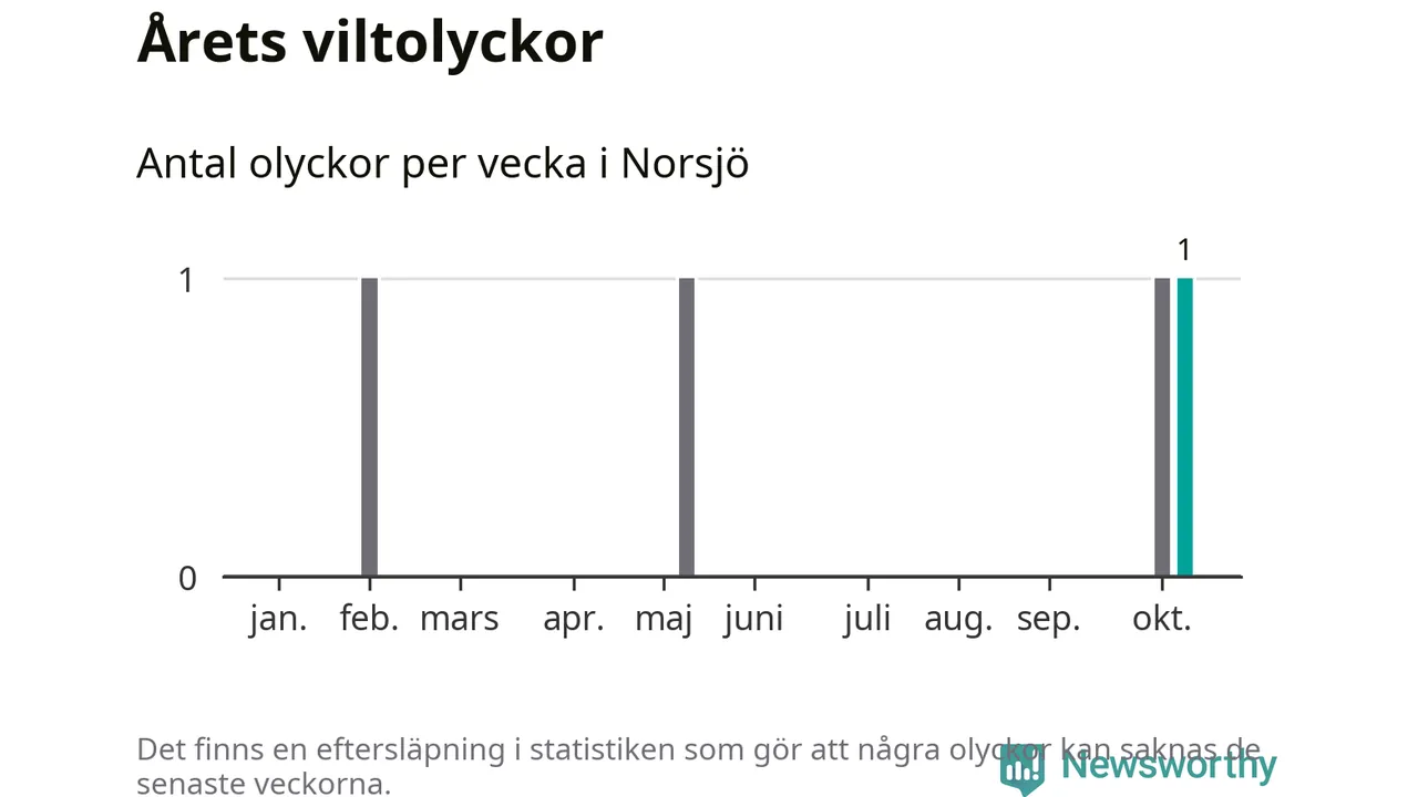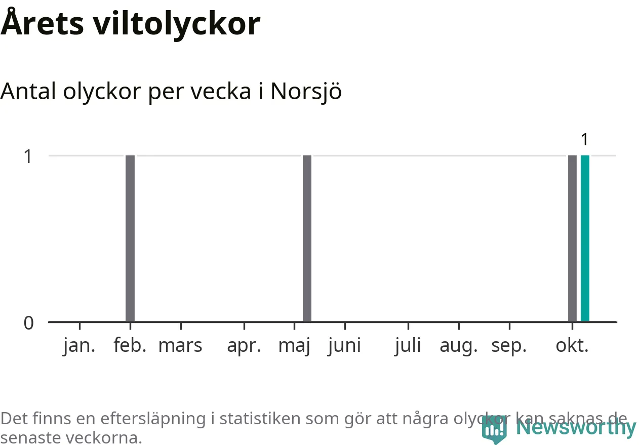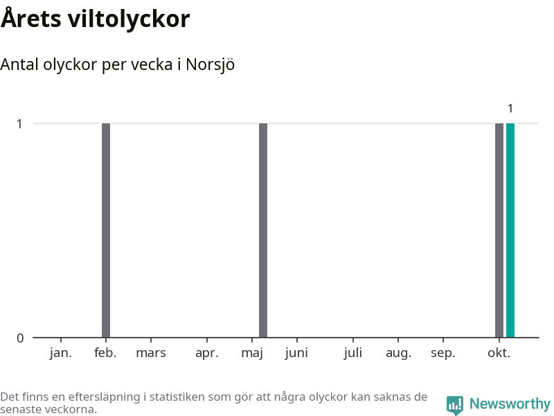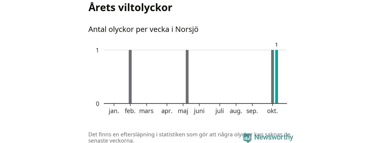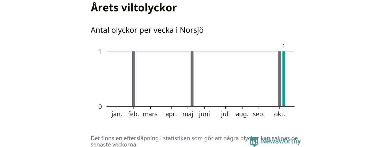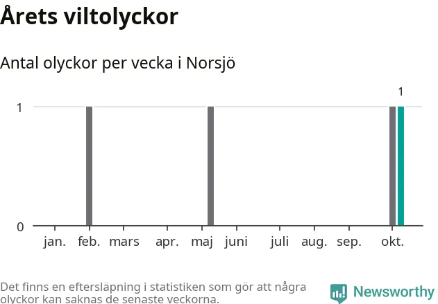 Från förra veckan (vecka 42) har hittills en viltolycka rapporterats in i Norsjö kommun.
