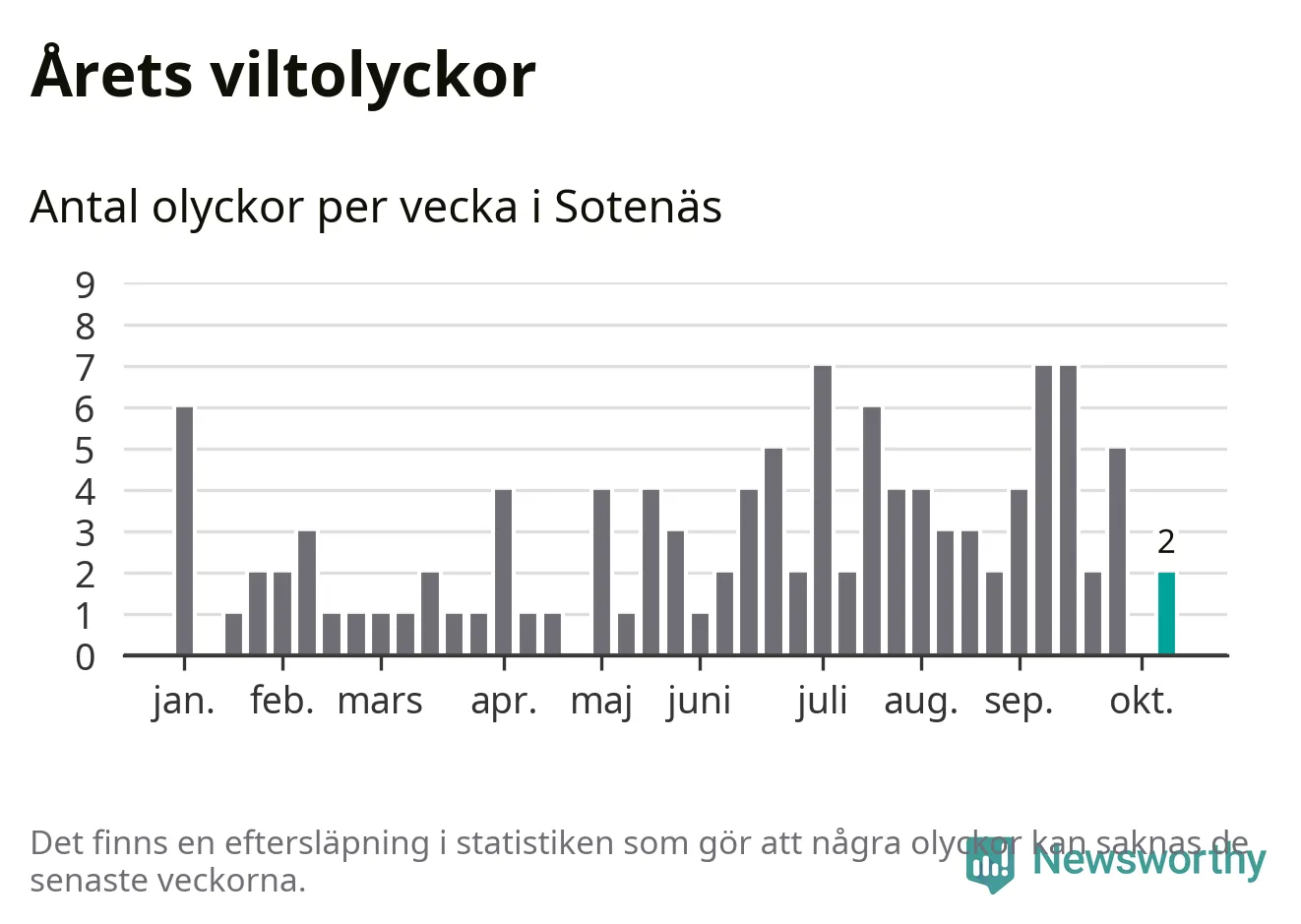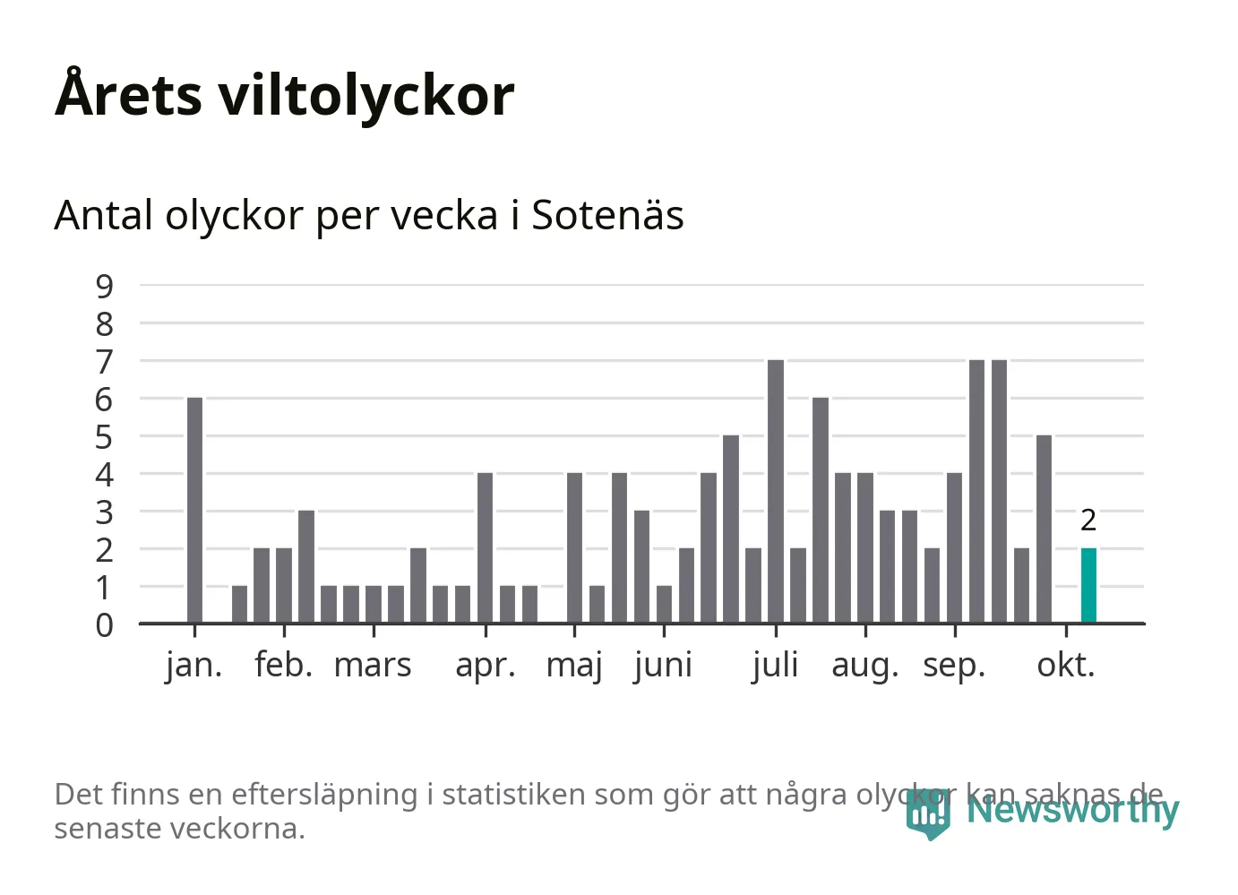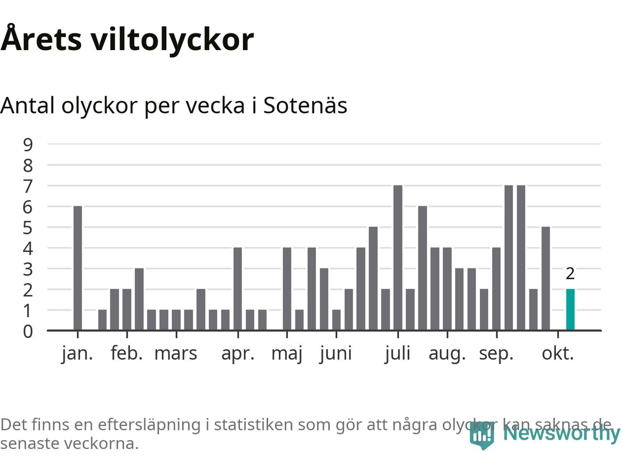 Hittills har två viltolyckor rapporterats in i Sotenäs kommun från vecka 42. Se listan här.