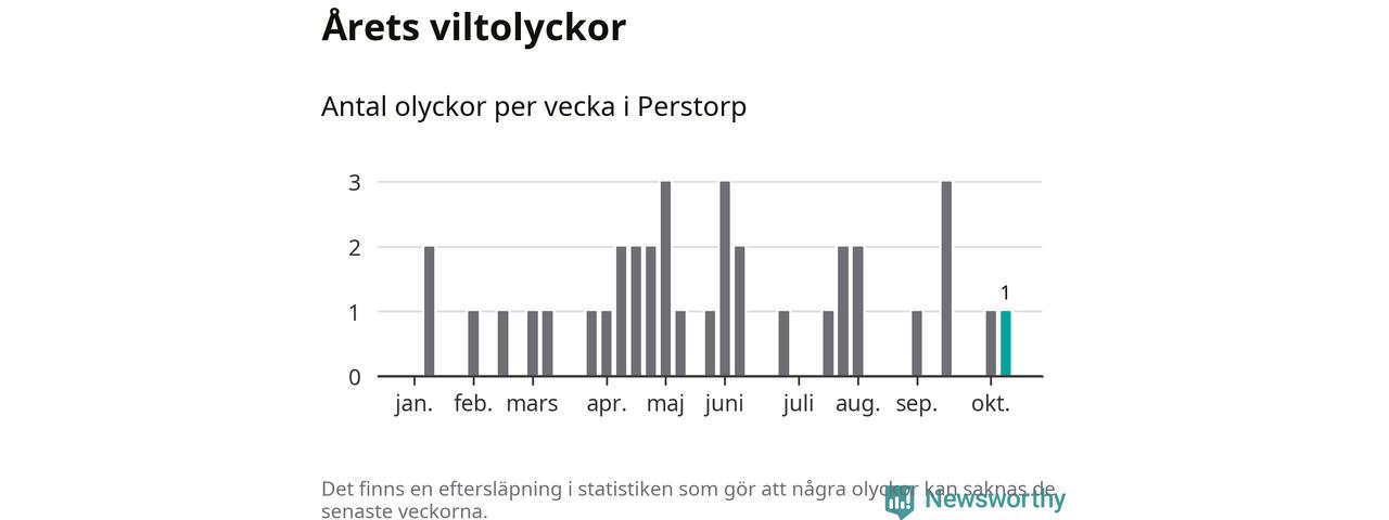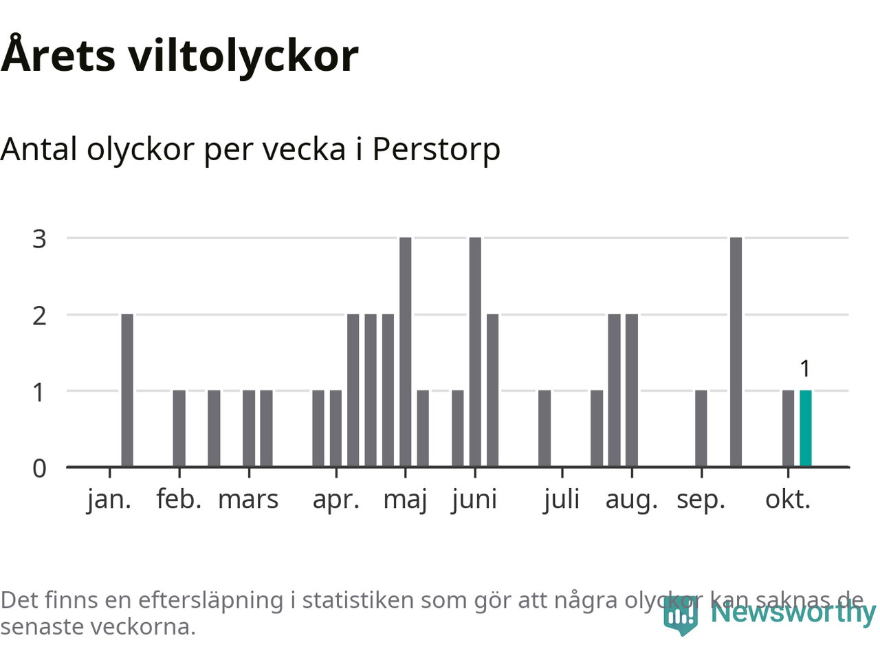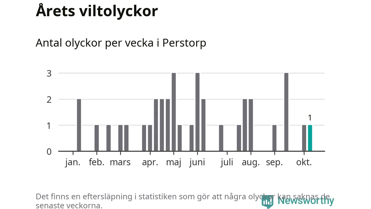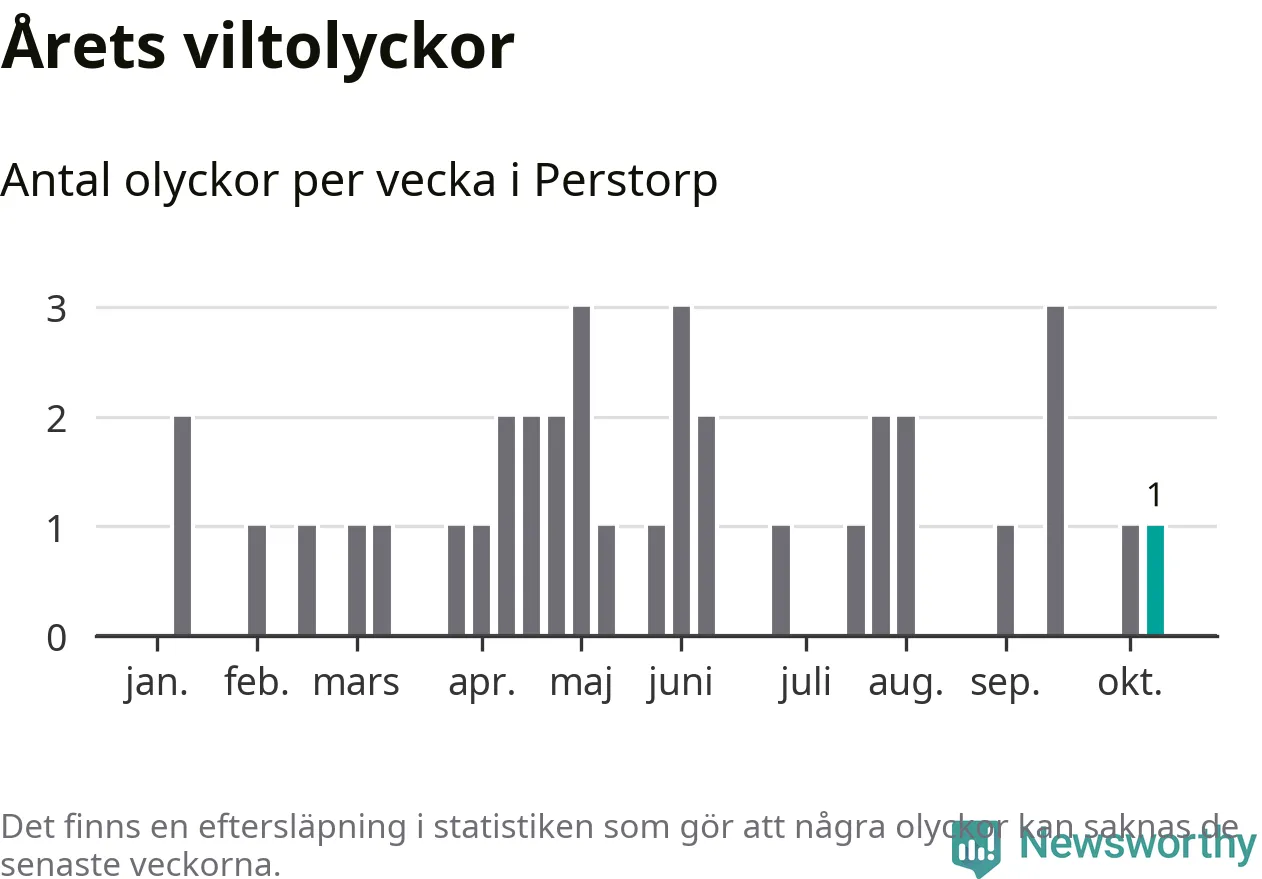 Från förra veckan (vecka 42) har hittills en viltolycka rapporterats in i Perstorps kommun.