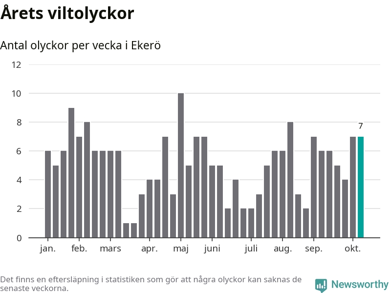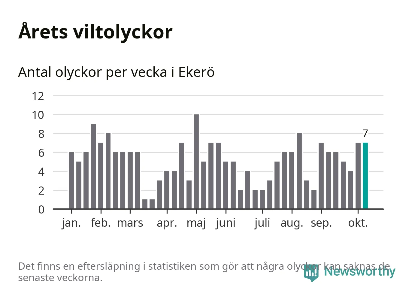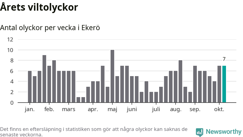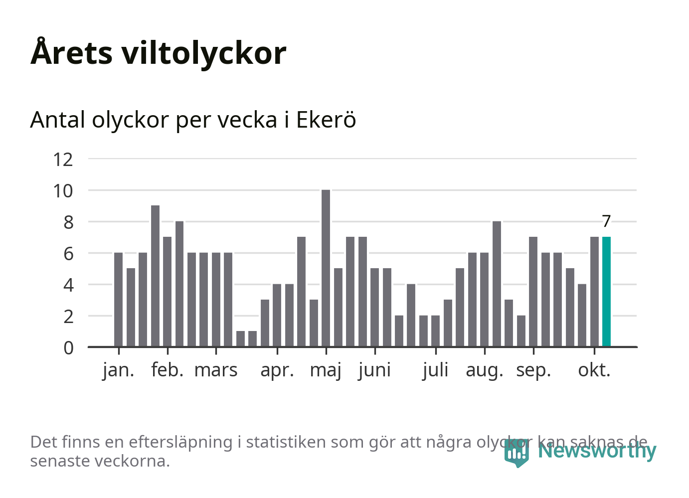 Hittills har sju viltolyckor rapporterats in i Ekerö kommun från vecka 42. Se listan här.