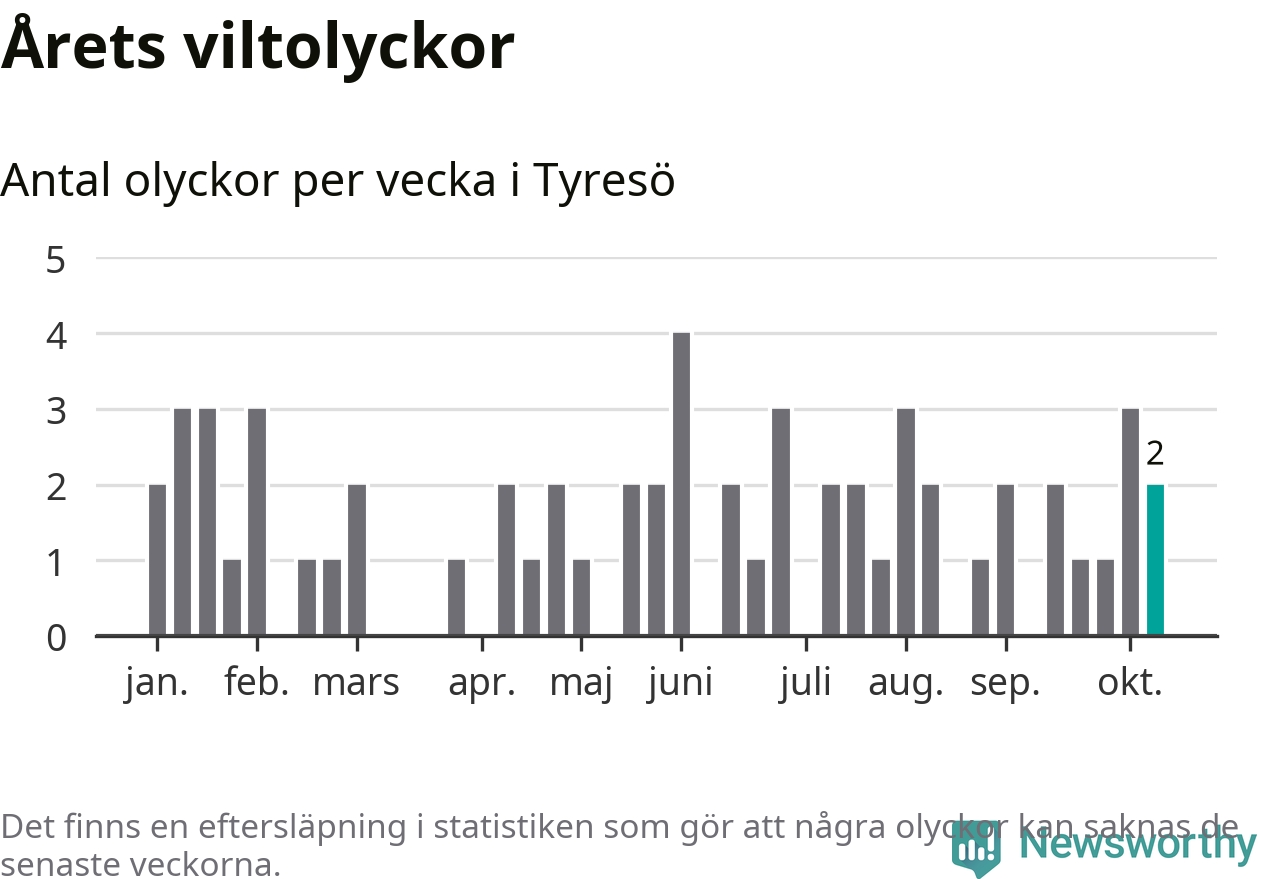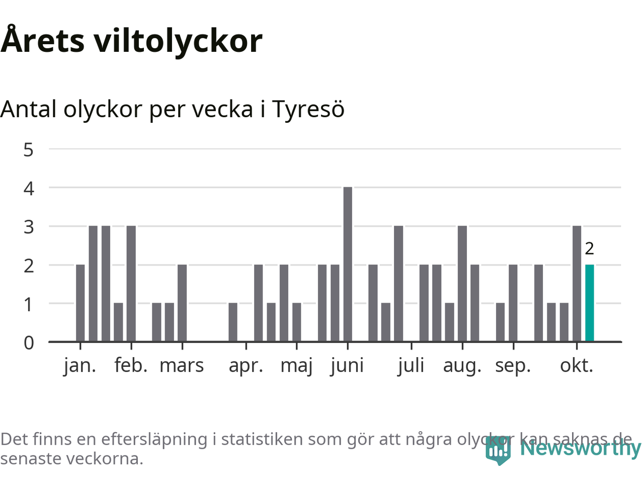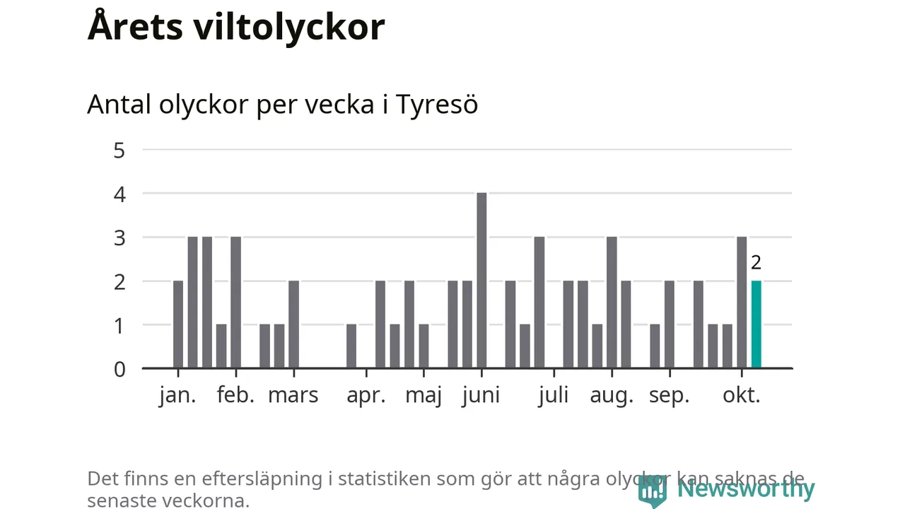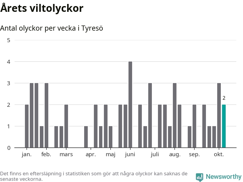 Hittills har två viltolyckor rapporterats in i Tyresö kommun från vecka 42. Se listan här.