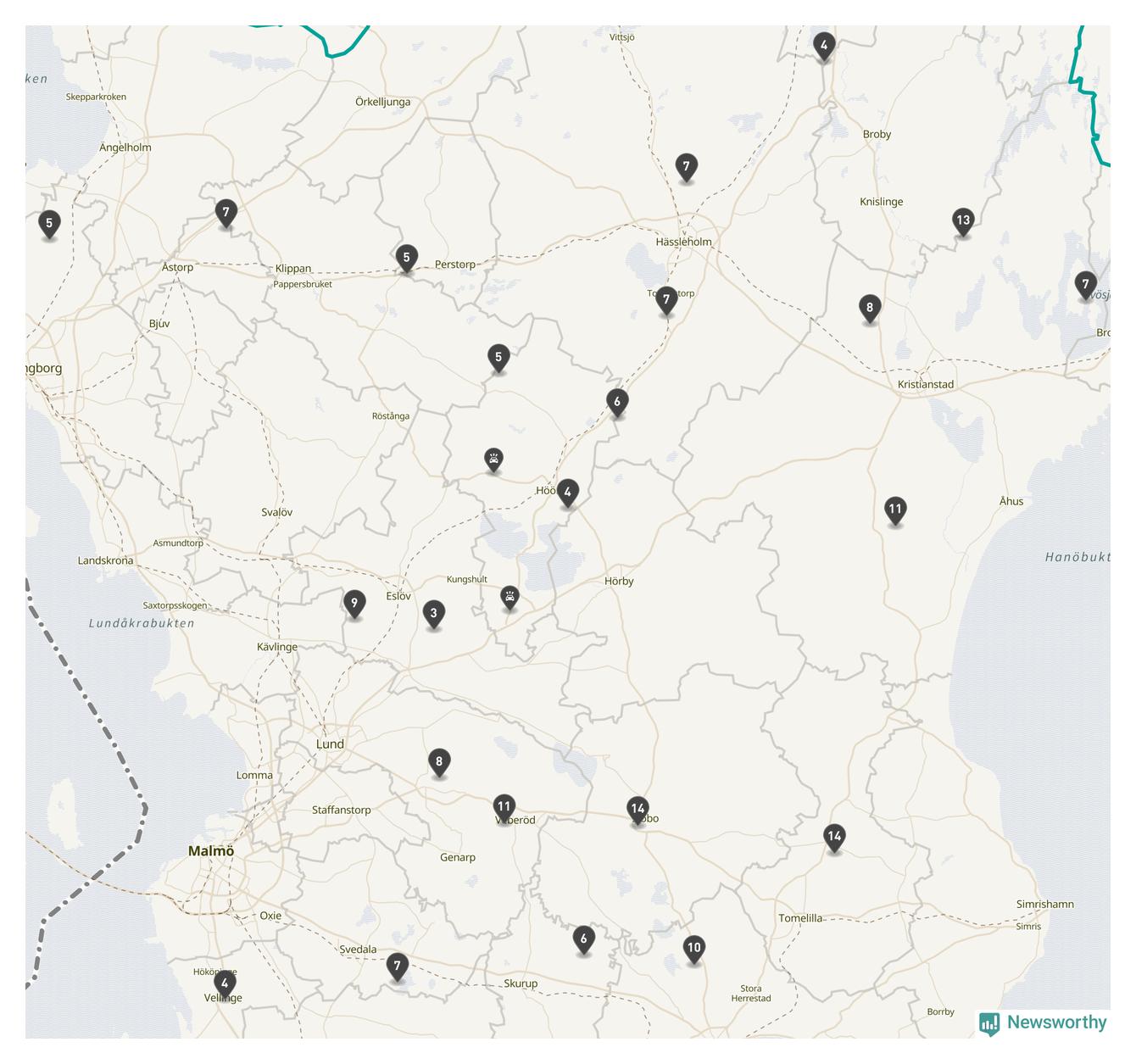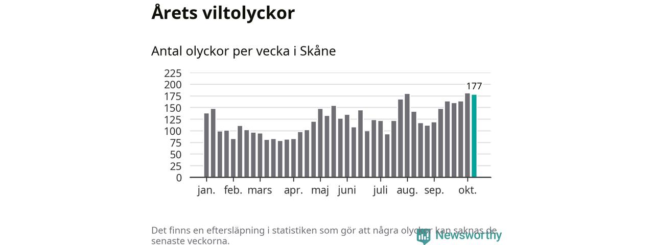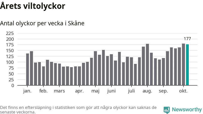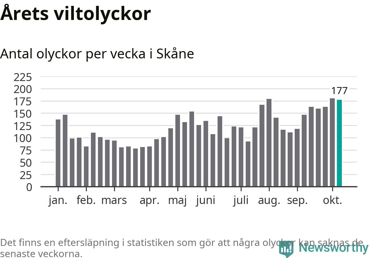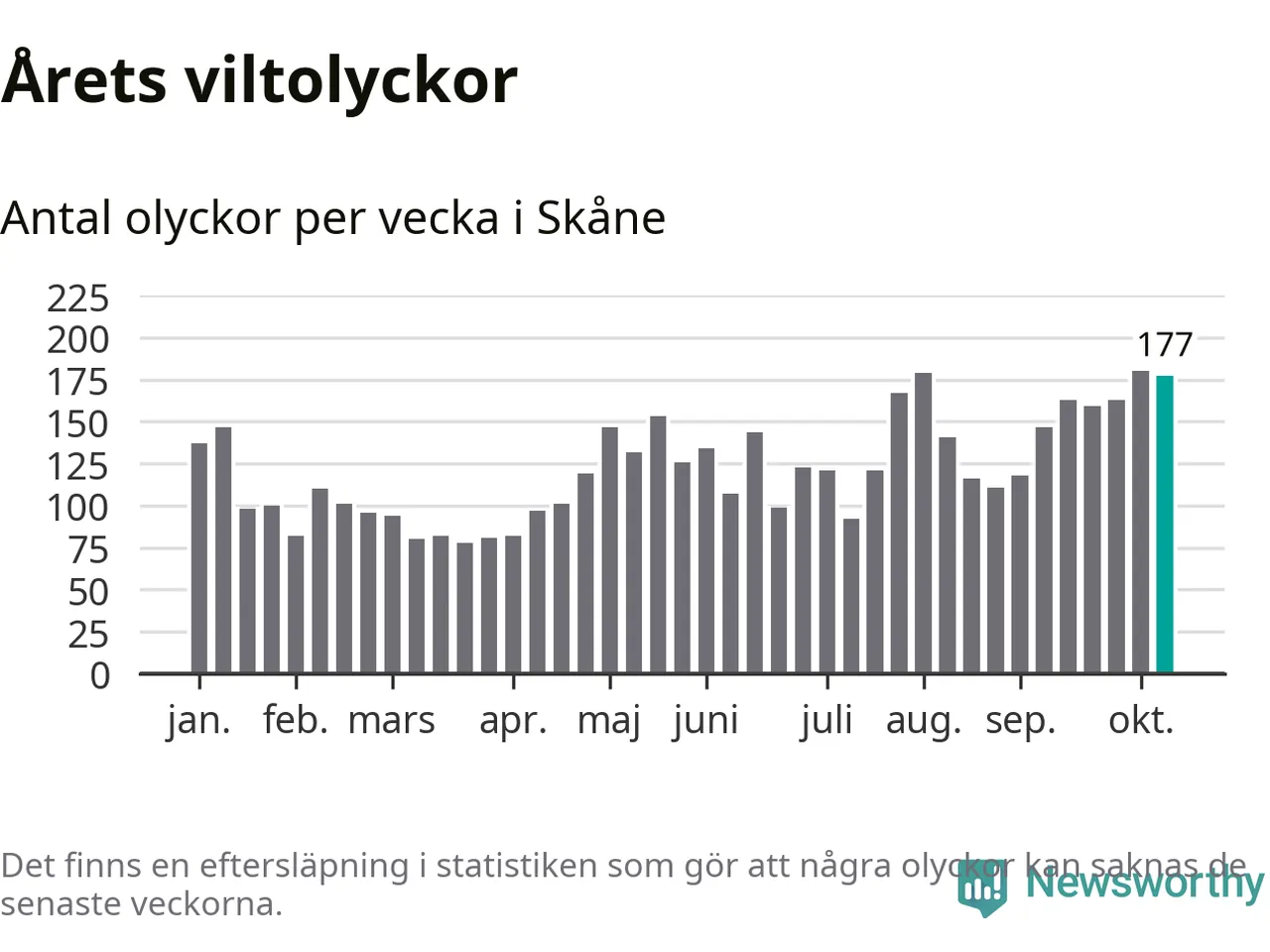 Hittills har 177 viltolyckor rapporterats in i Skåne län från vecka 42. Se listan här.