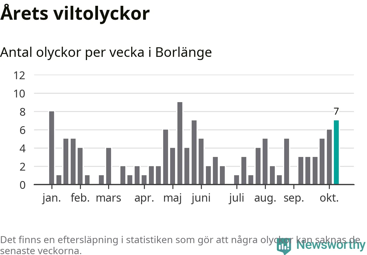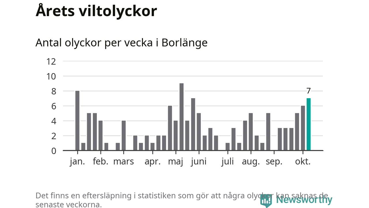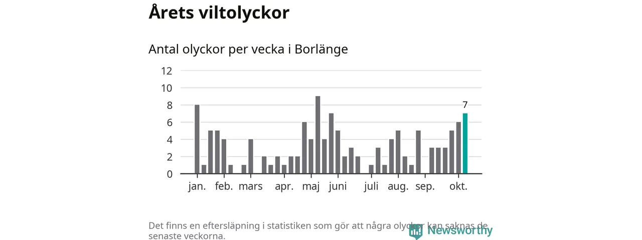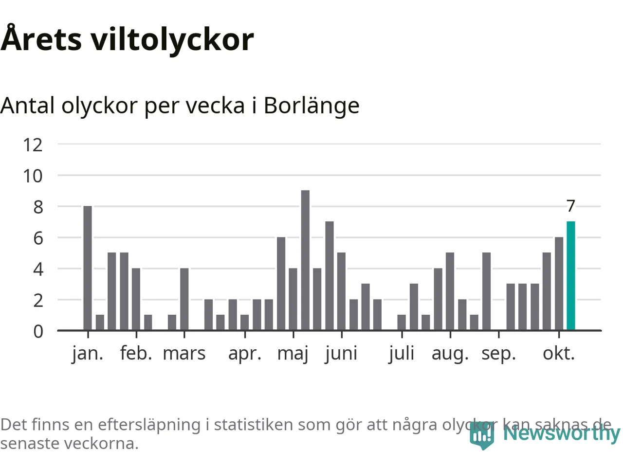 Hittills har sju viltolyckor rapporterats in i Borlänge kommun från vecka 42. Se listan här.