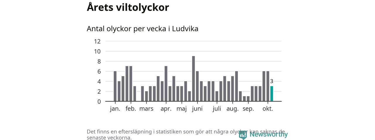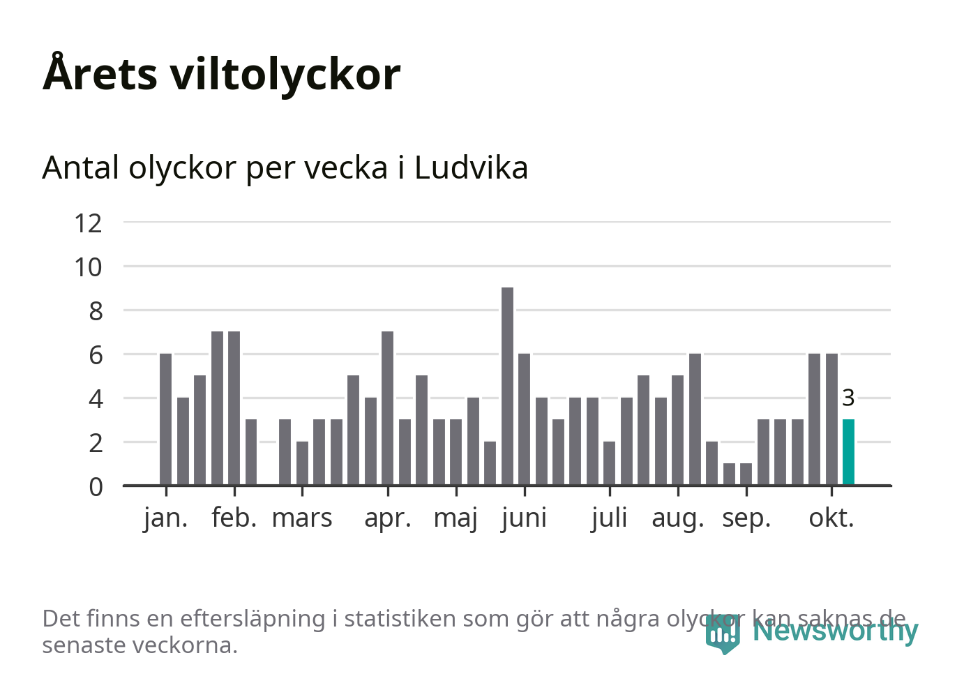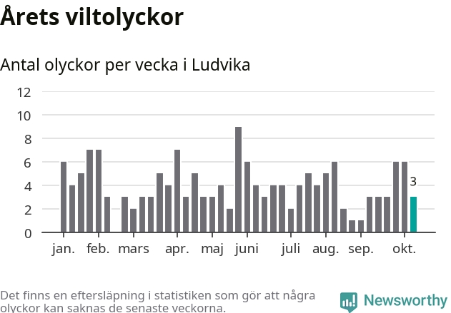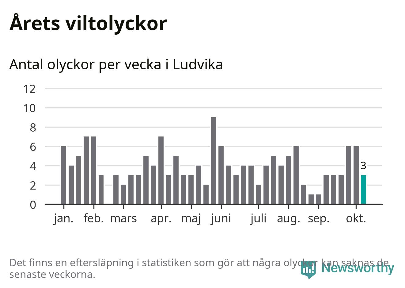 Hittills har tre viltolyckor rapporterats in i Ludvika kommun från vecka 42. Se listan här.