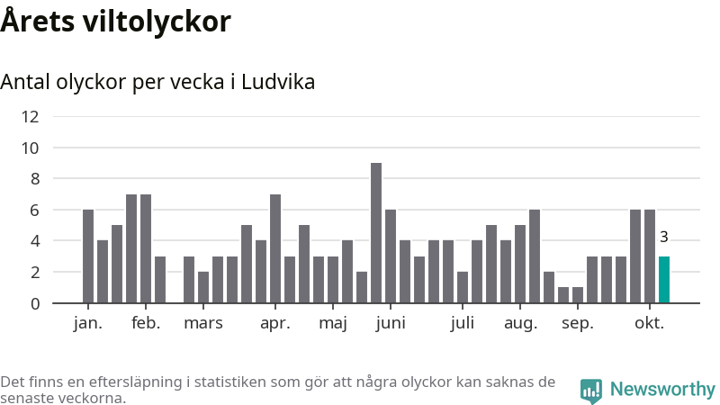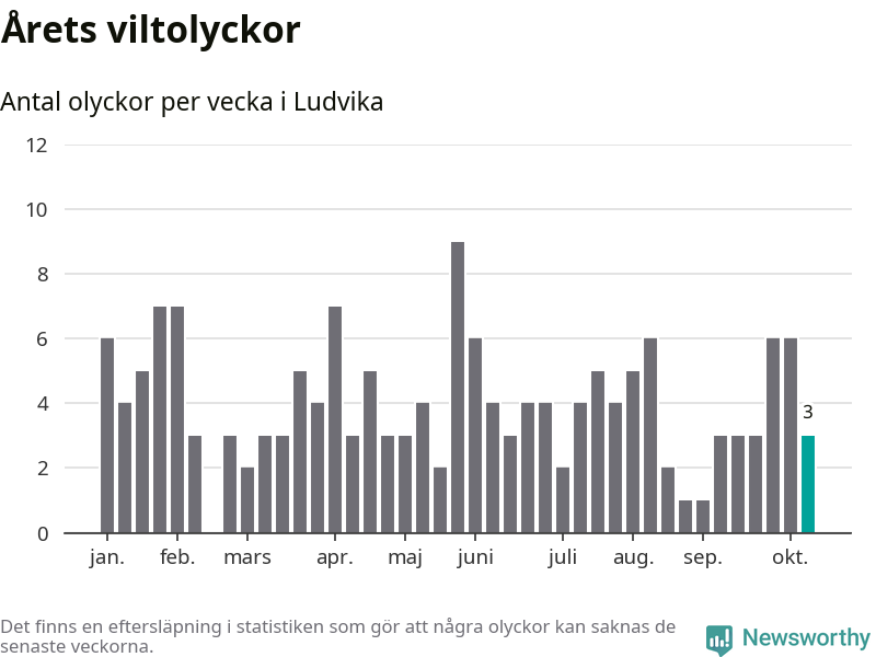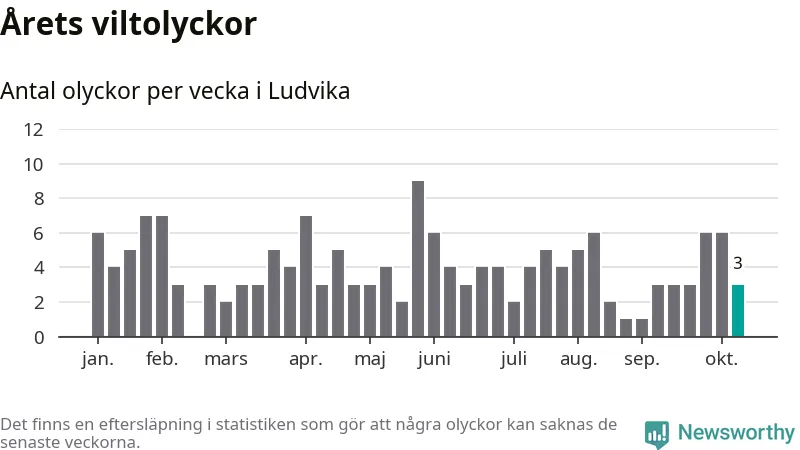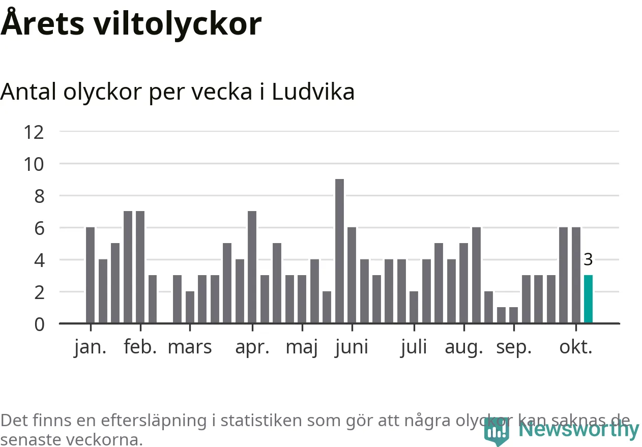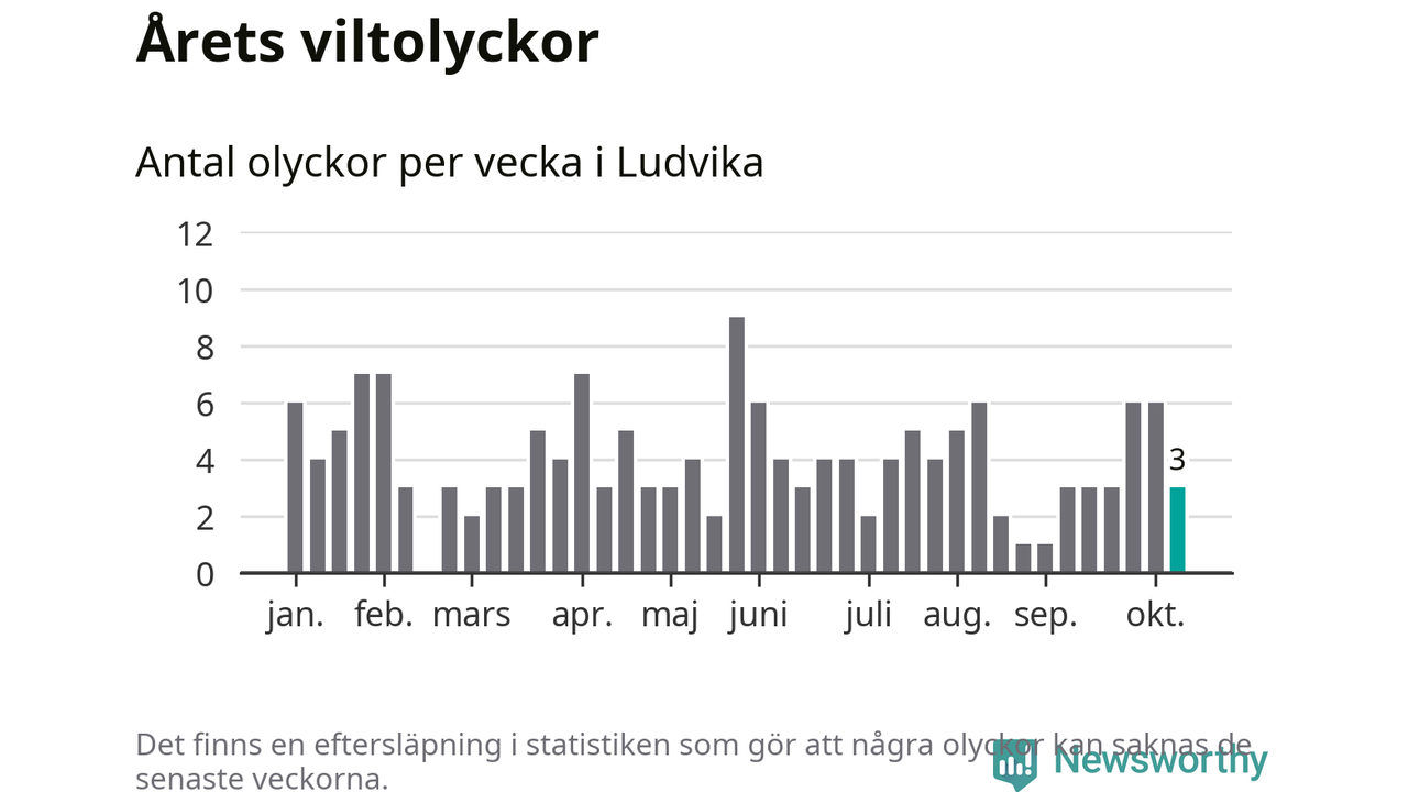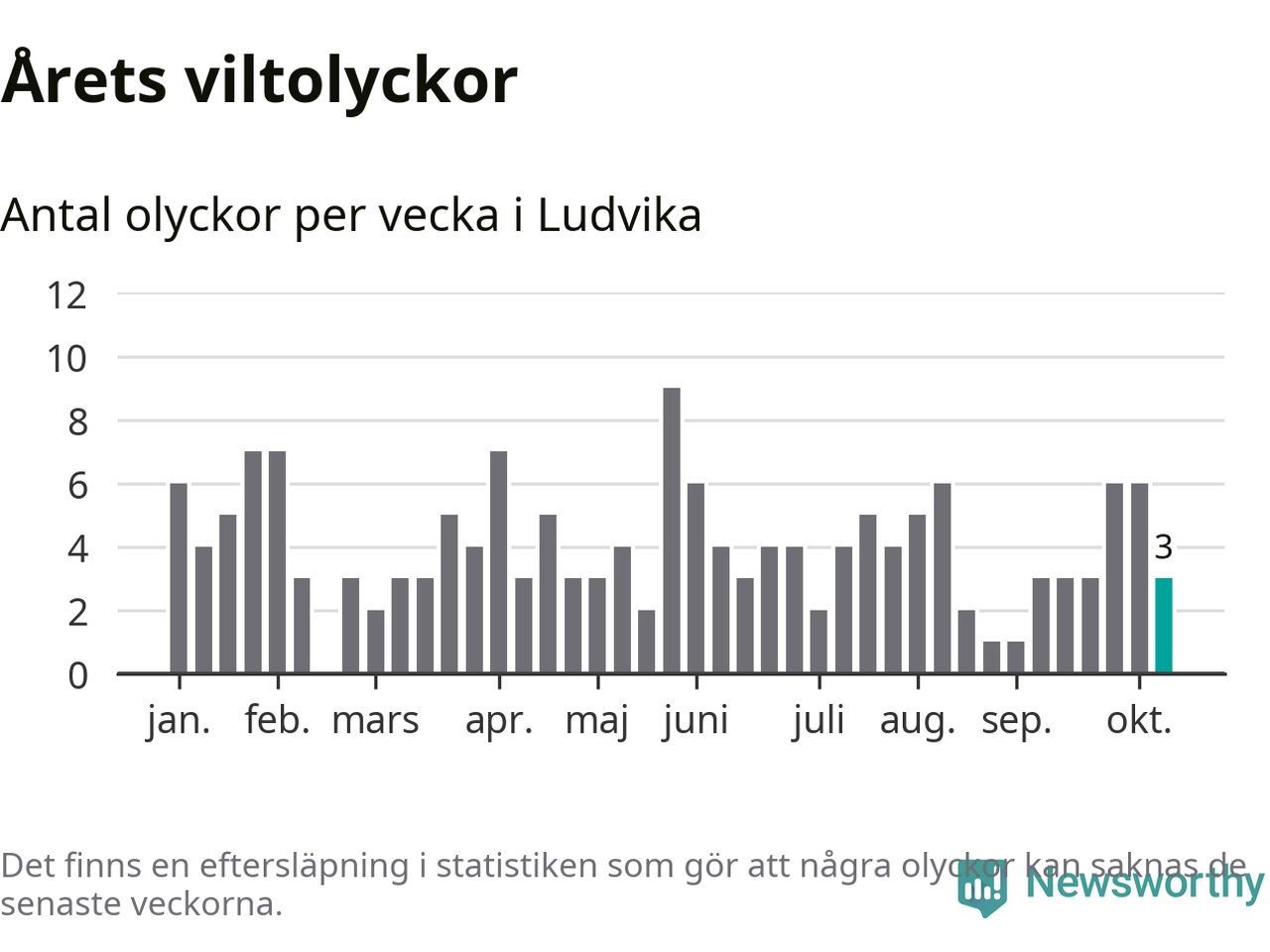 Hittills har tre viltolyckor rapporterats in i Ludvika kommun från vecka 42. Se listan här.