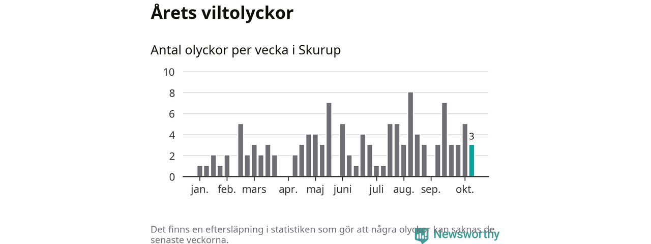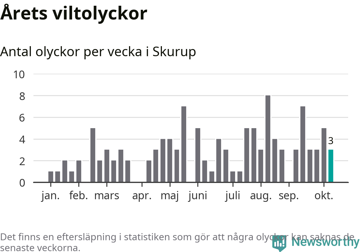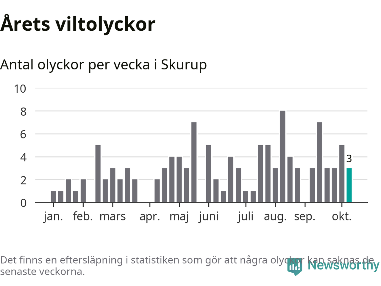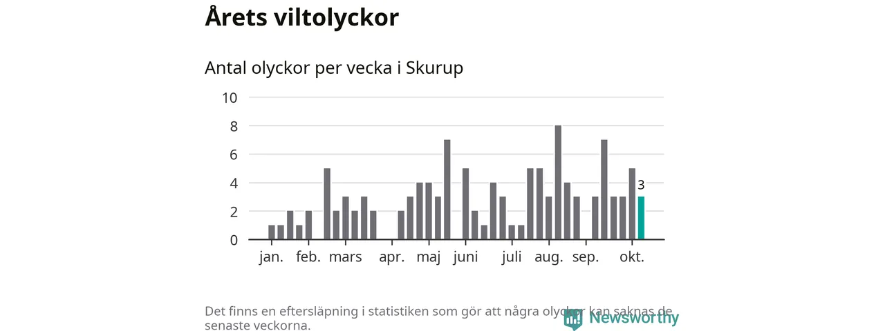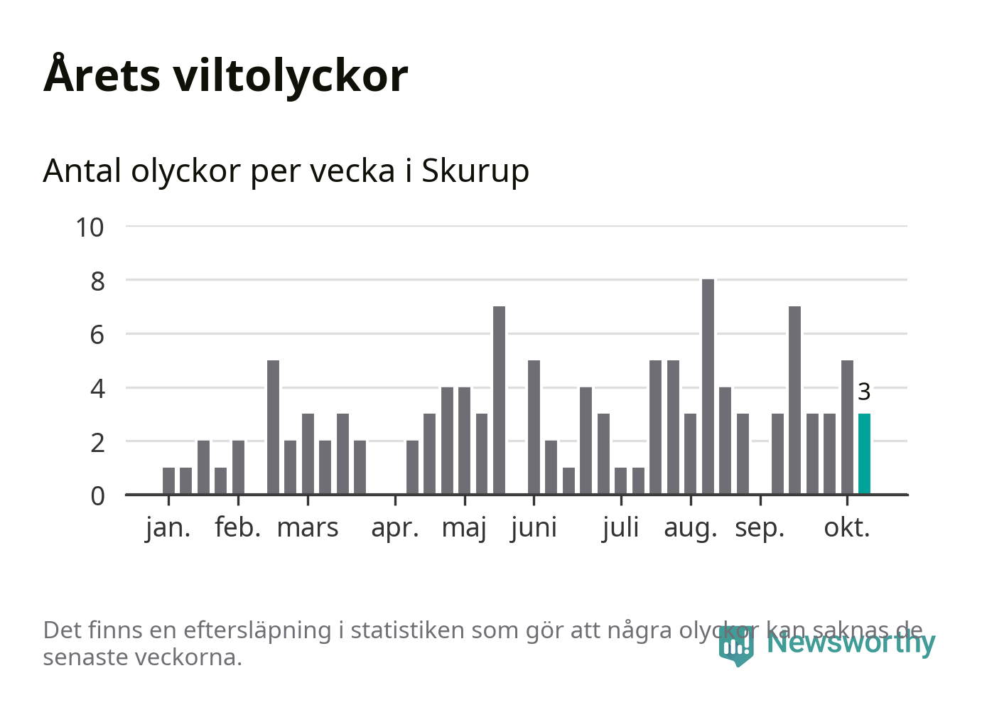 Hittills har tre viltolyckor rapporterats in i Skurups kommun från vecka 42. Se listan här.