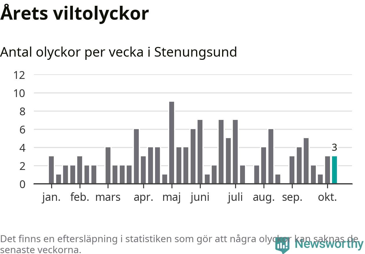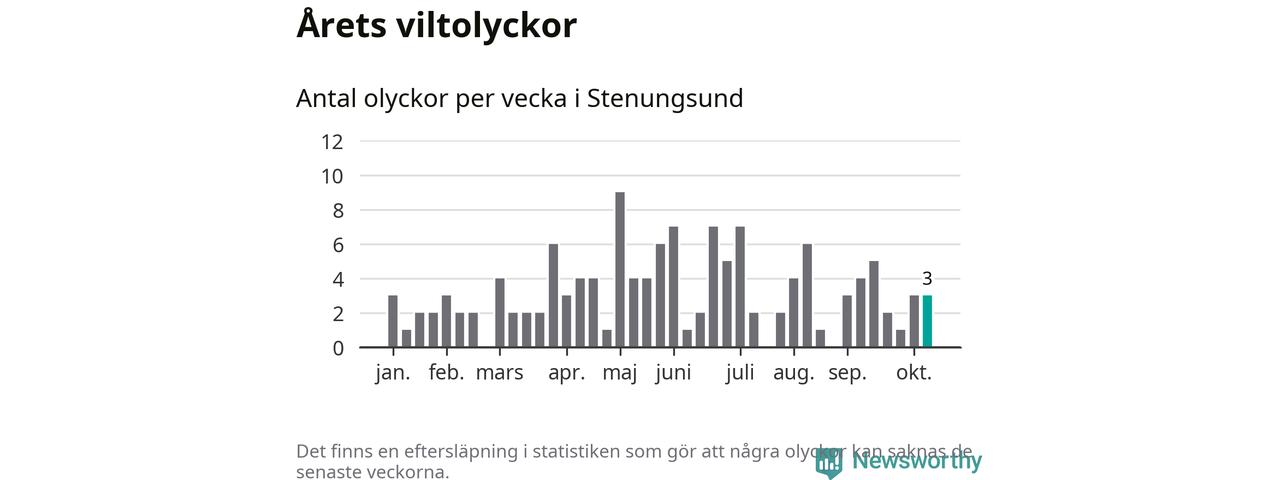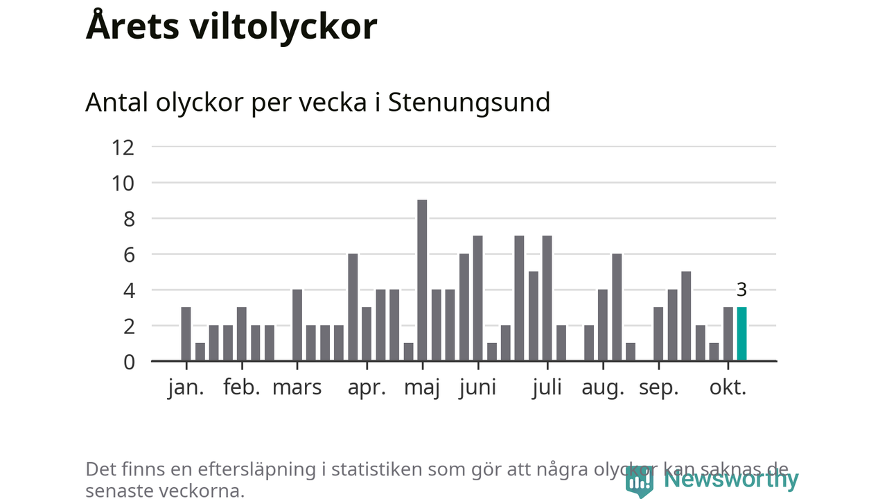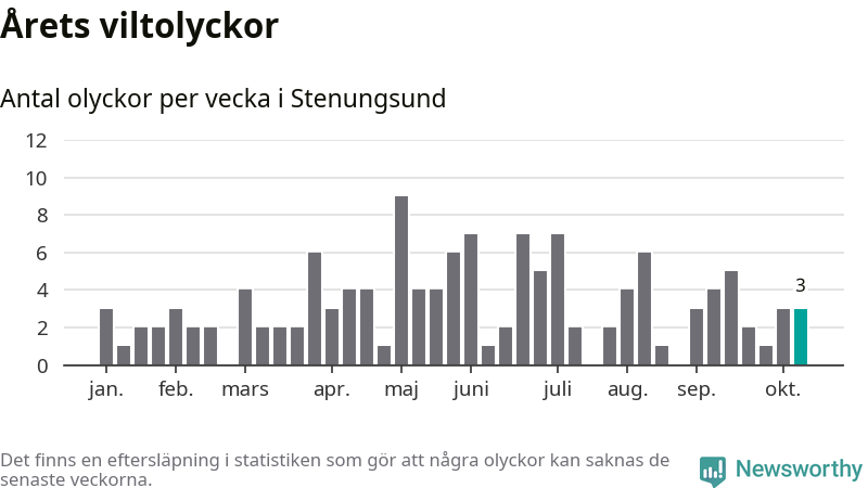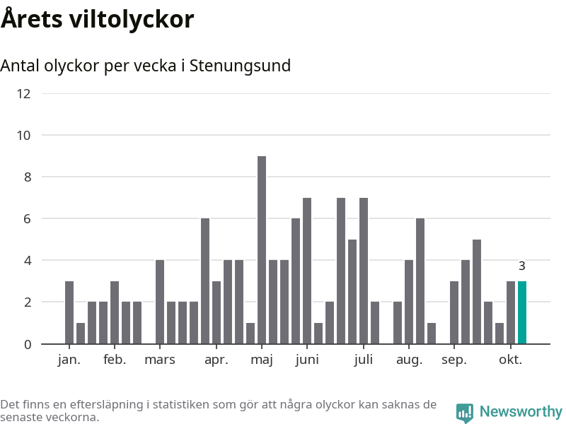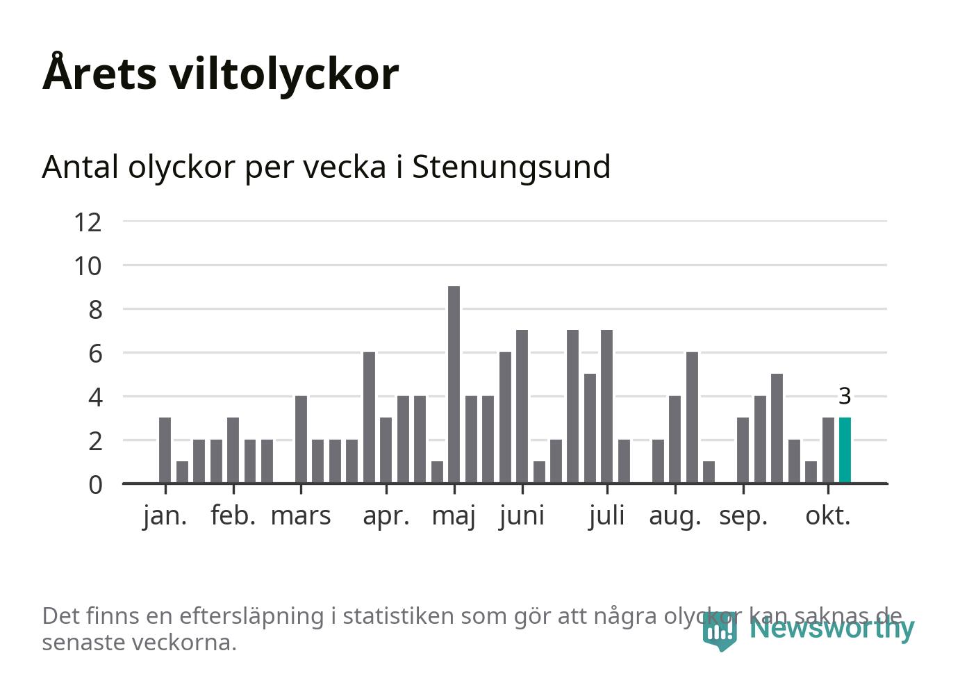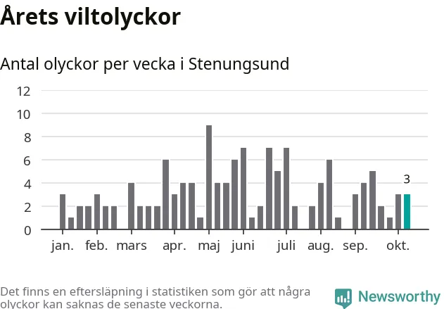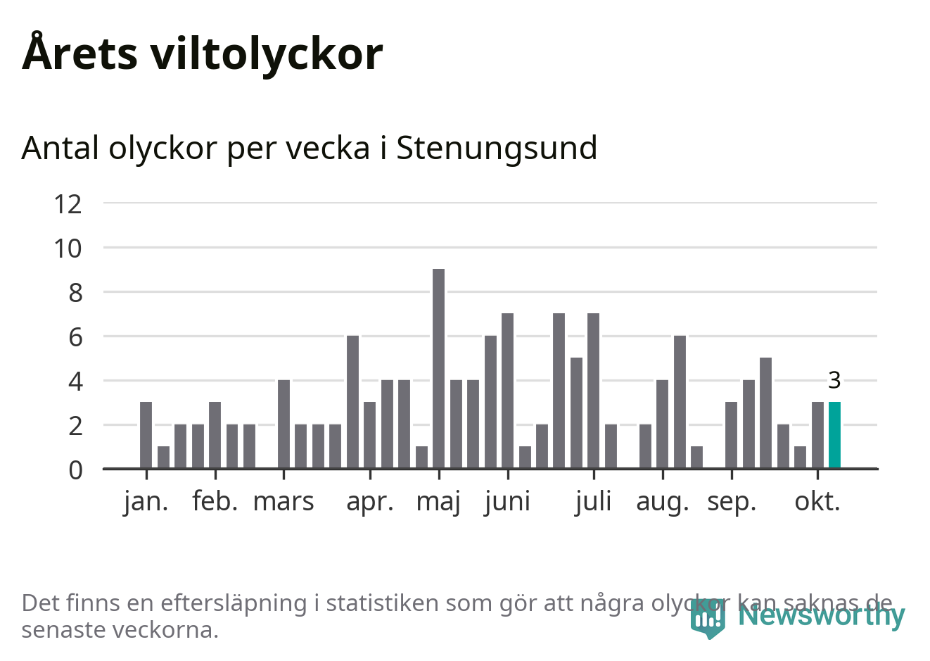 Hittills har tre viltolyckor rapporterats in i Stenungsunds kommun från vecka 42. Se listan här.