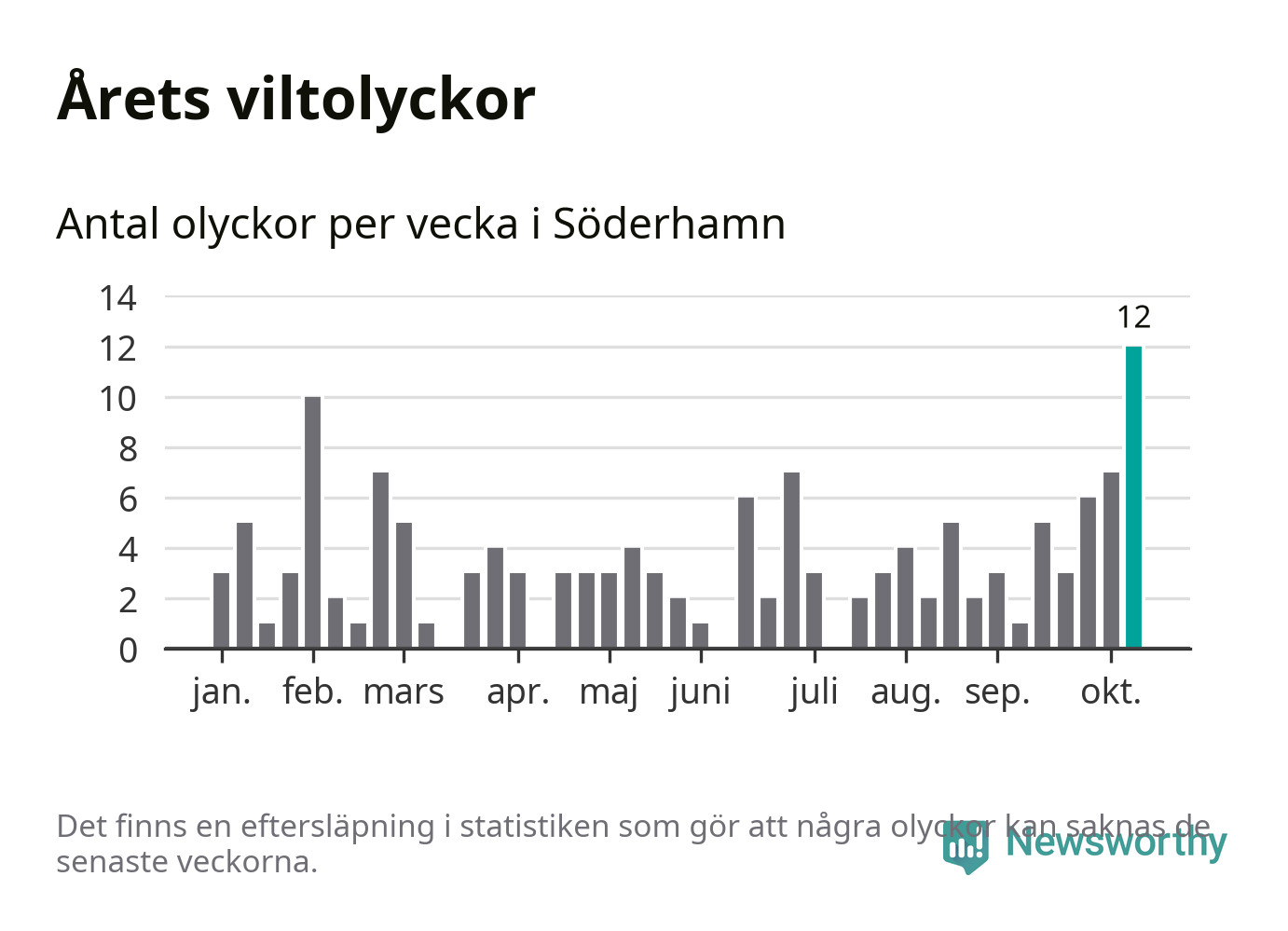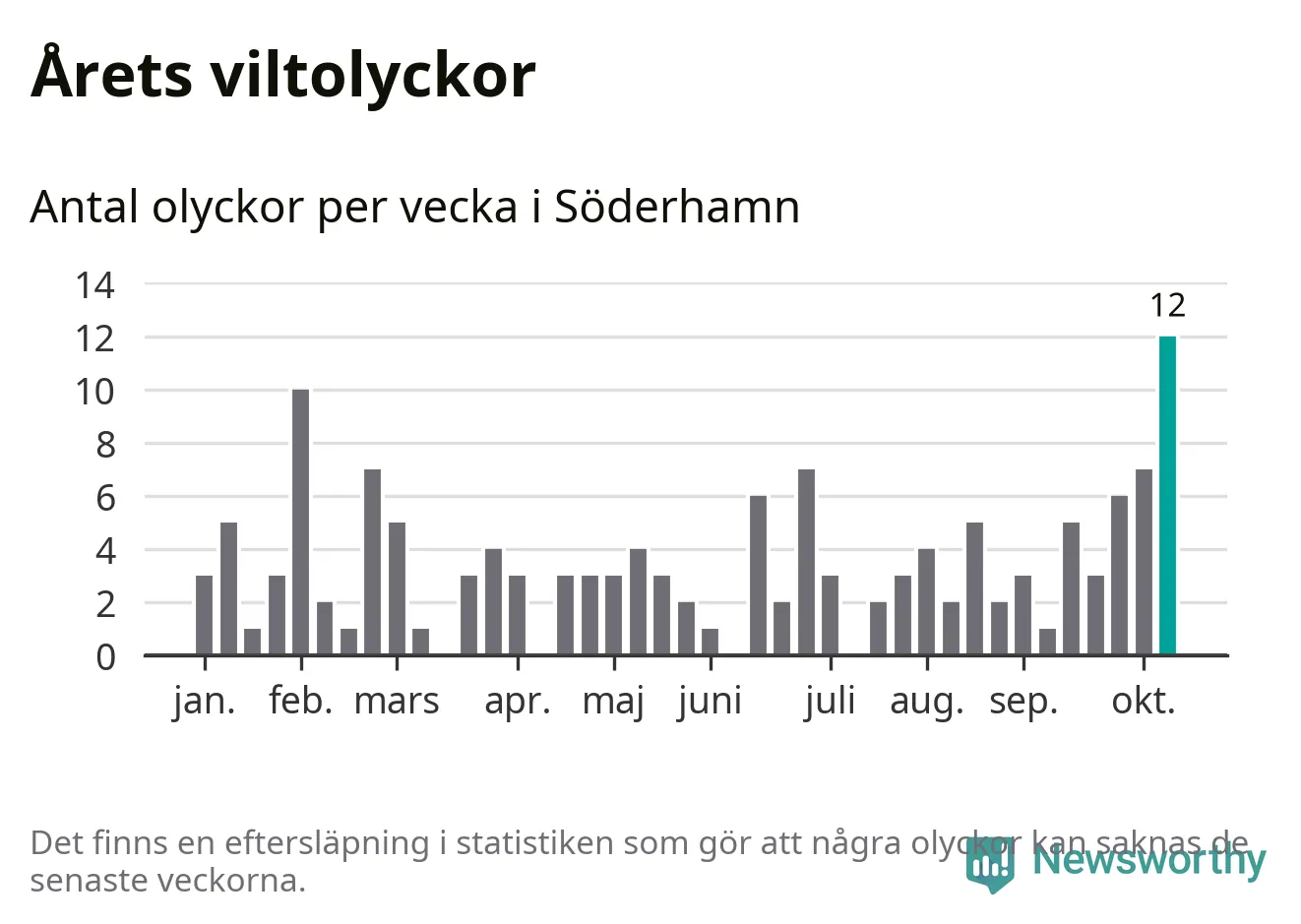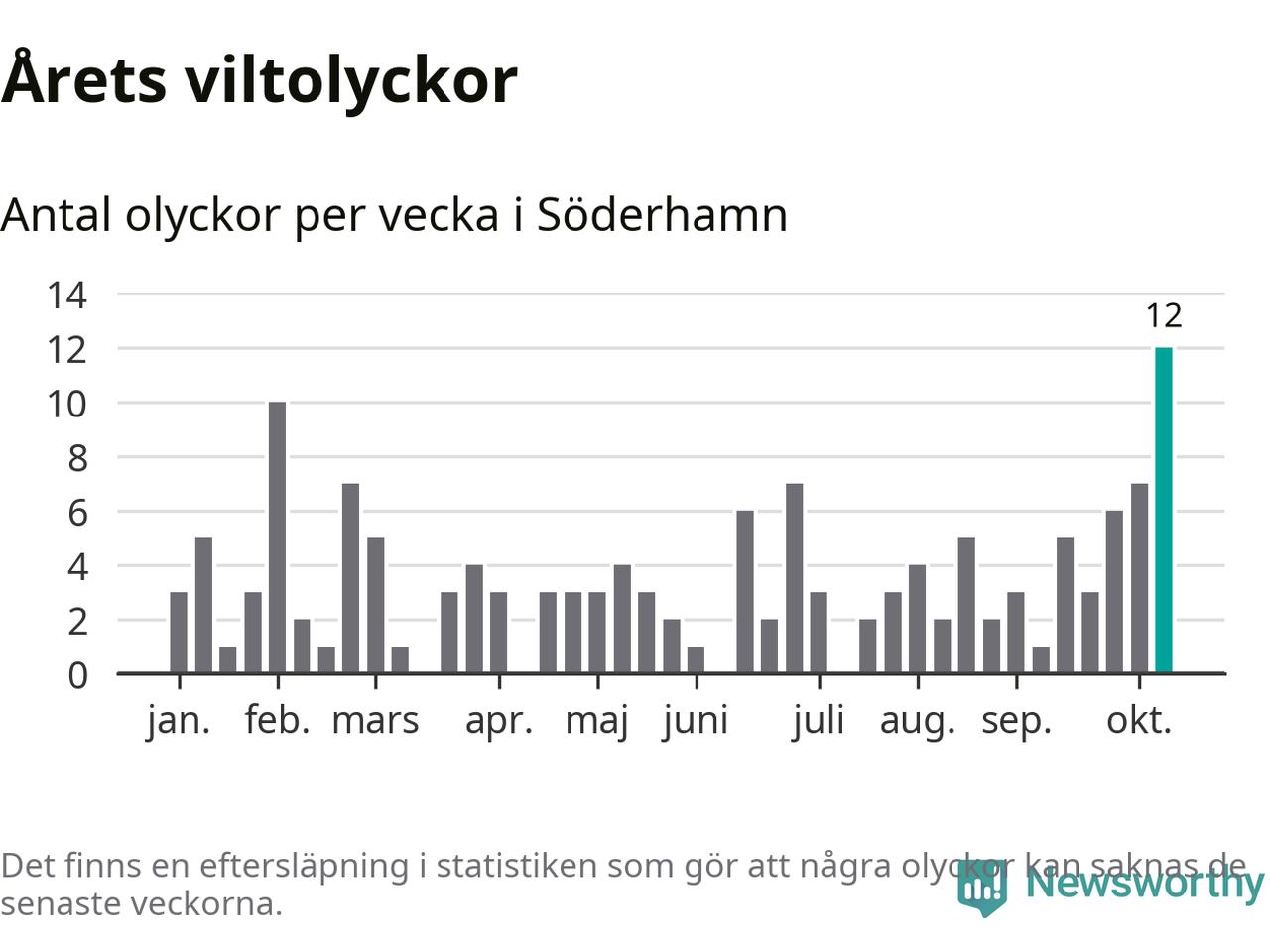 Hittills har tolv viltolyckor rapporterats in i Söderhamns kommun från vecka 42. Det är en av de högsta höstsiffrorna för en enskild vecka på över tio år.
