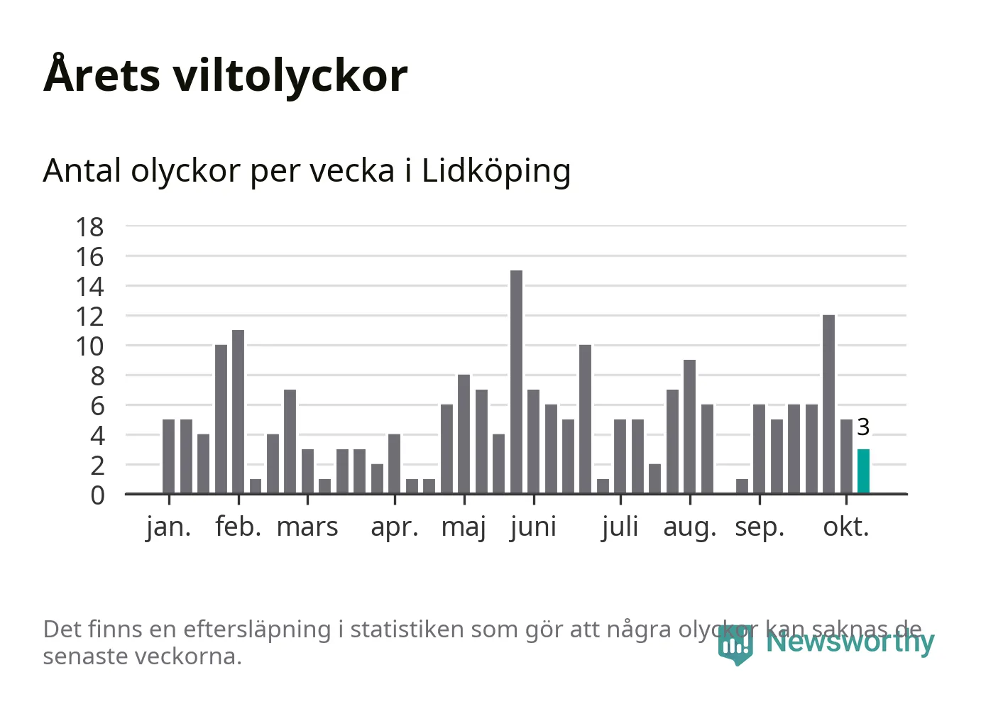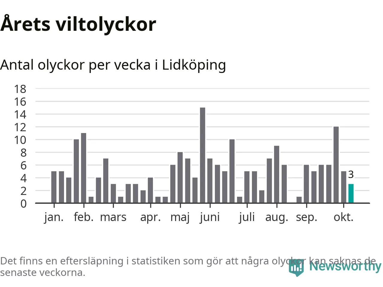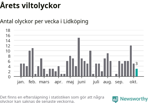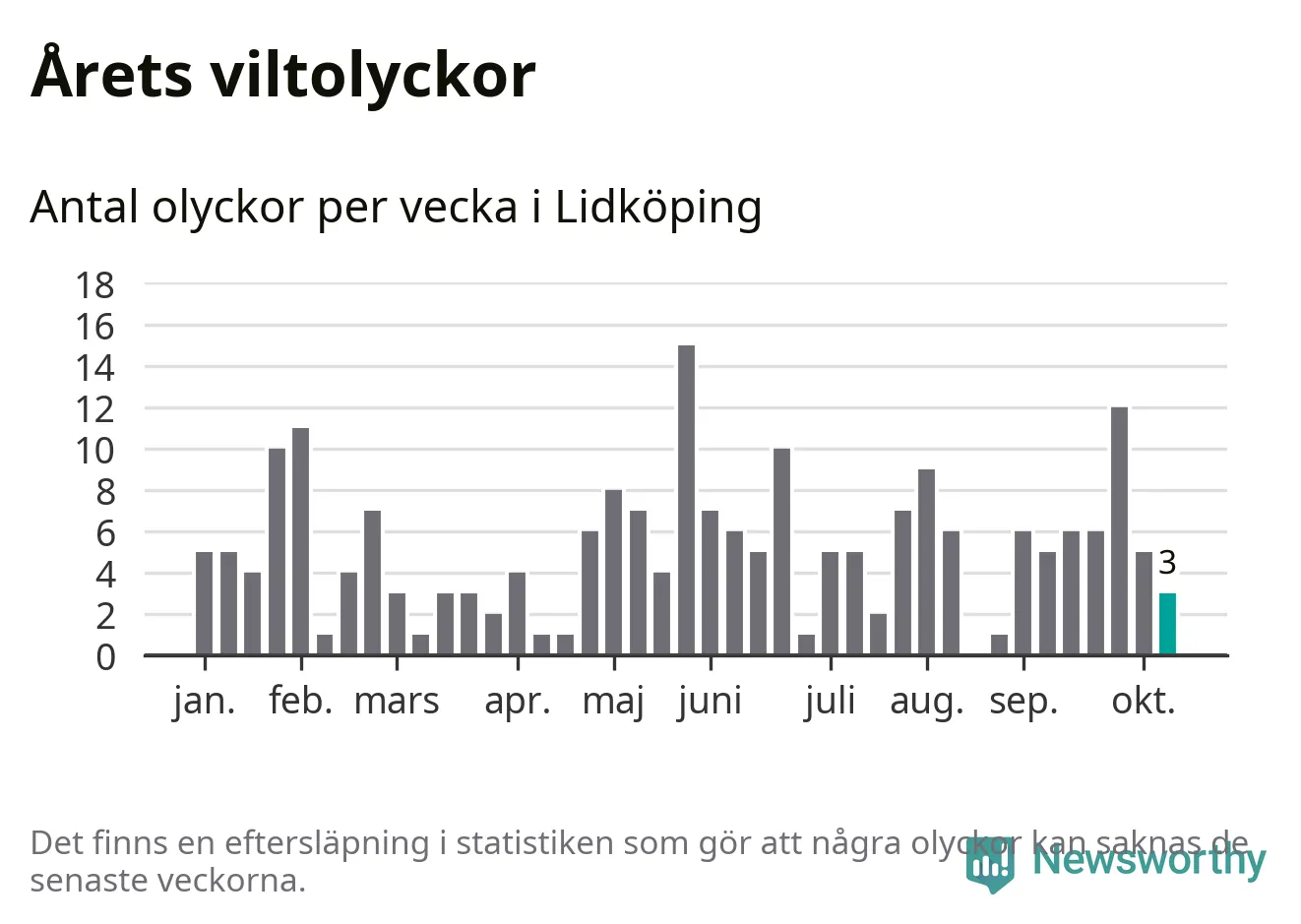 Hittills har tre viltolyckor rapporterats in i Lidköpings kommun från vecka 42. Se listan här.
