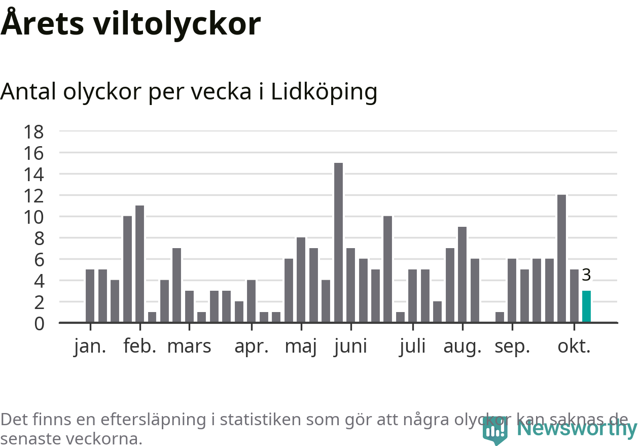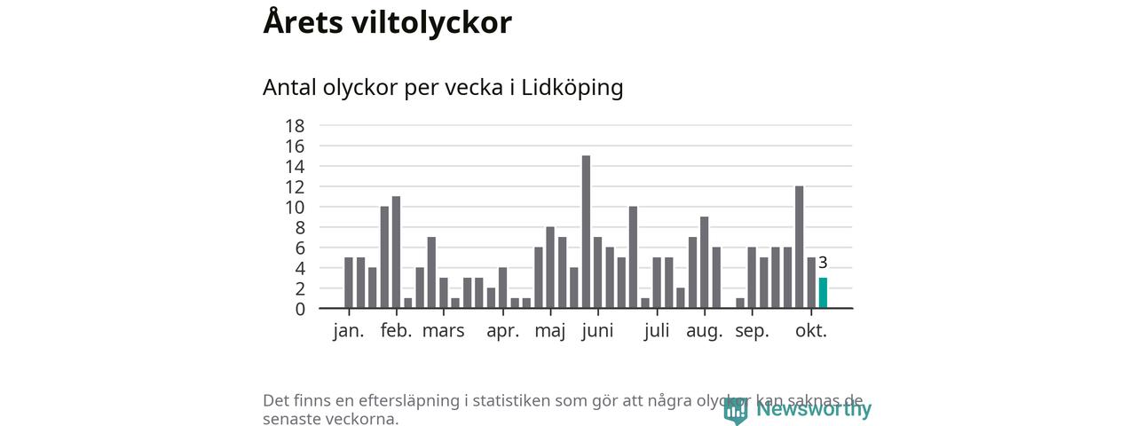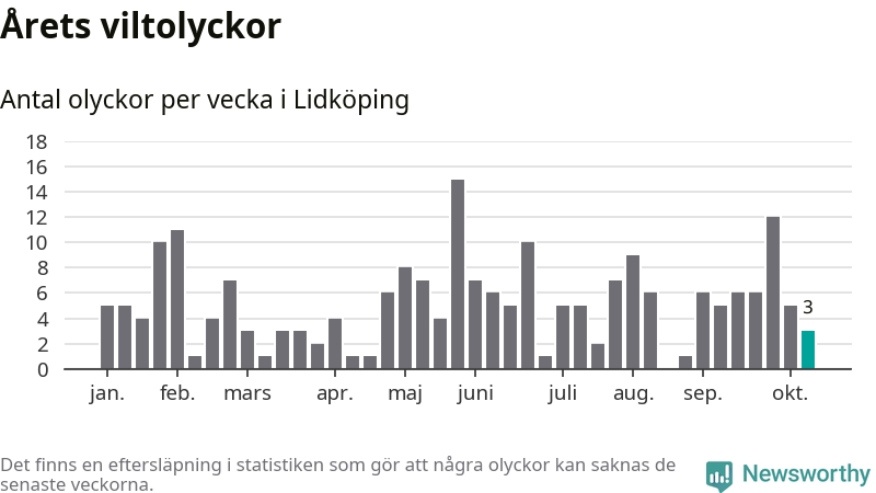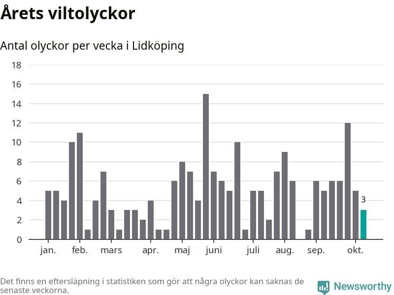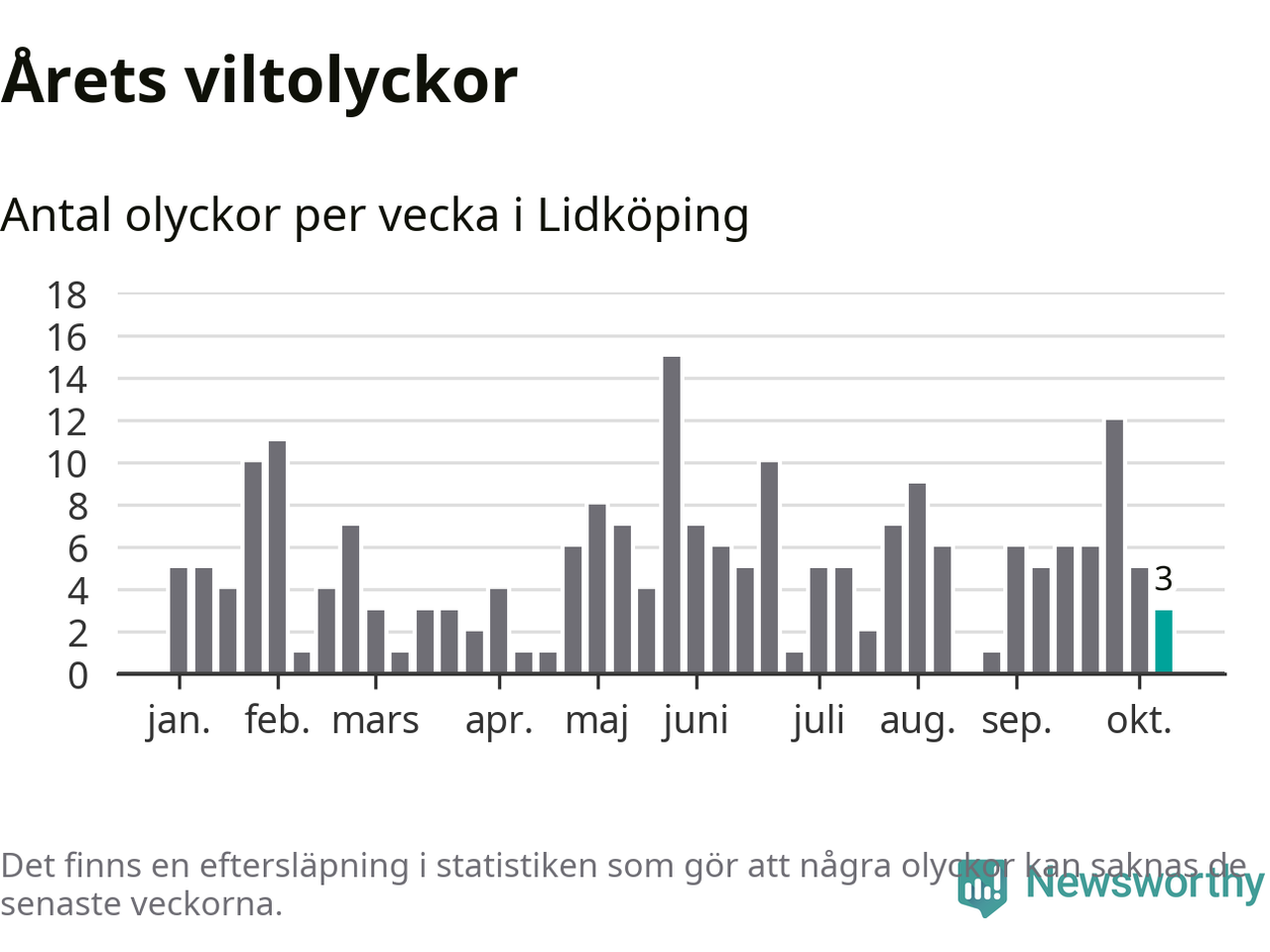 Hittills har tre viltolyckor rapporterats in i Lidköpings kommun från vecka 42. Se listan här.