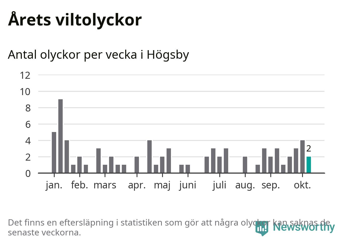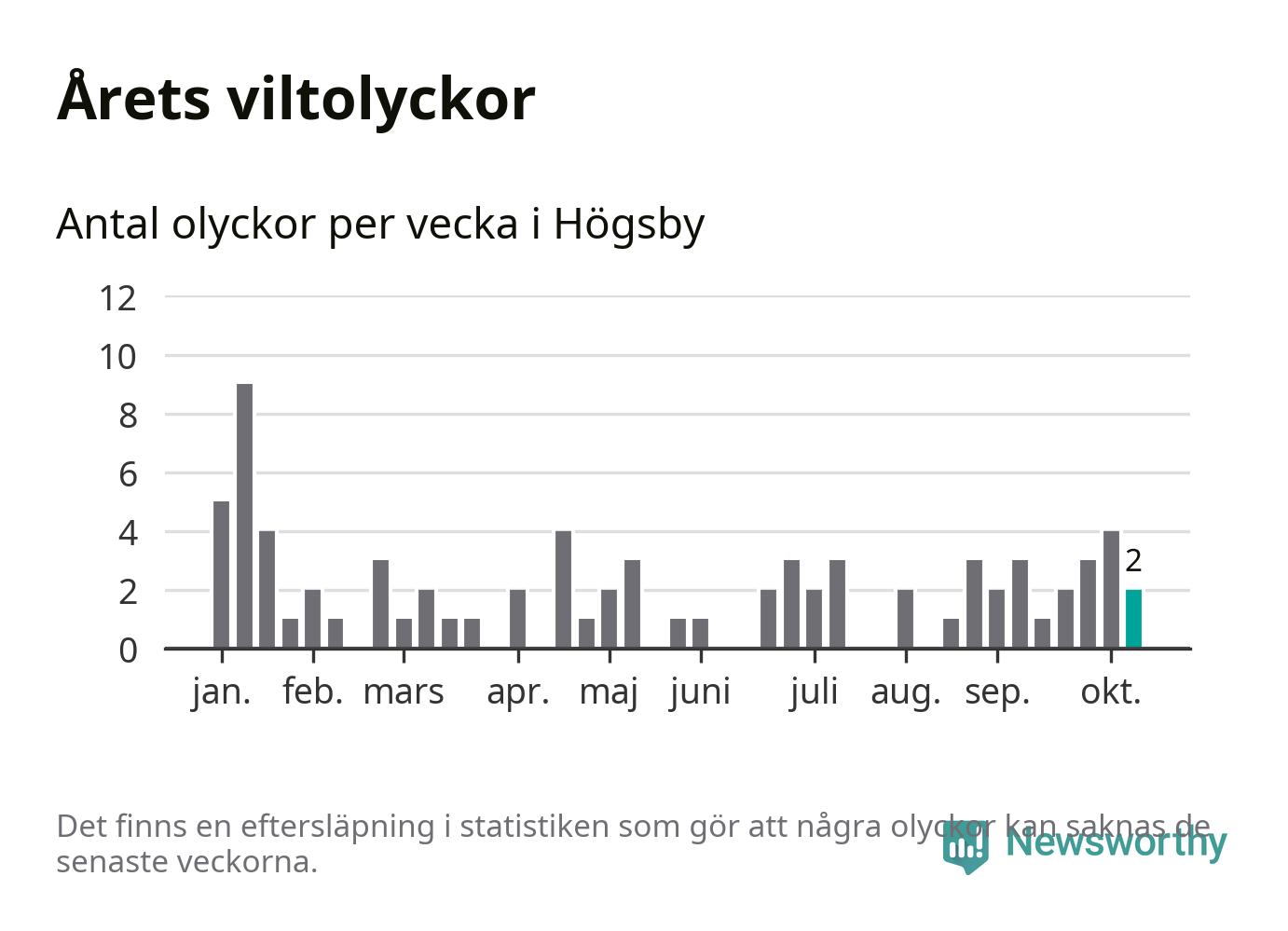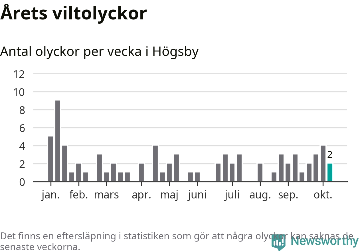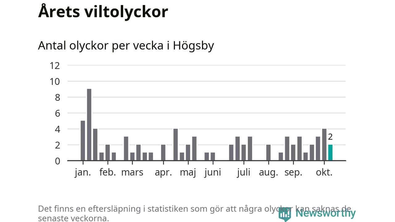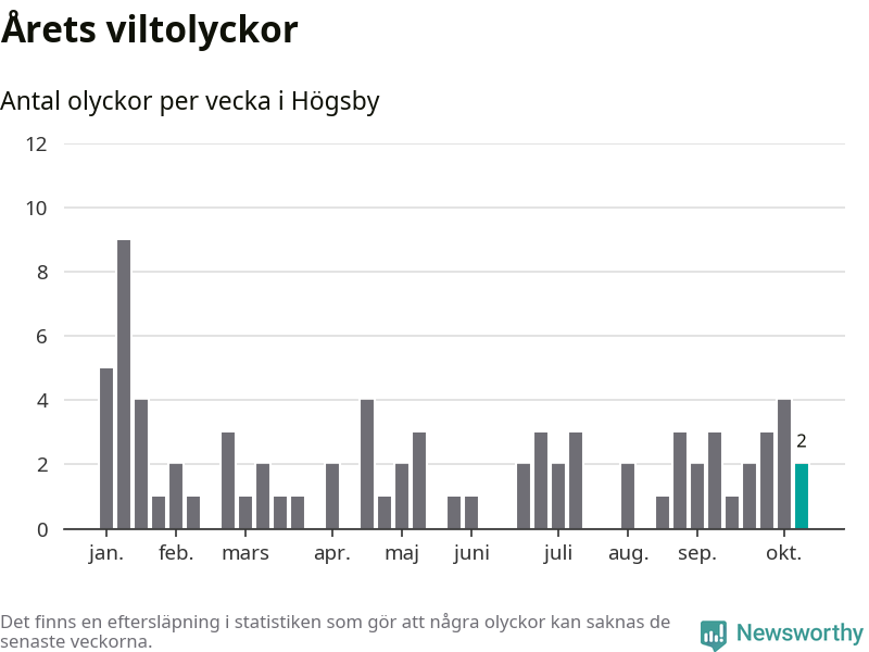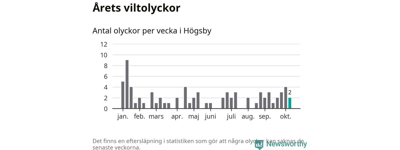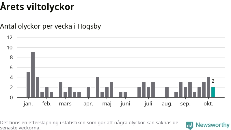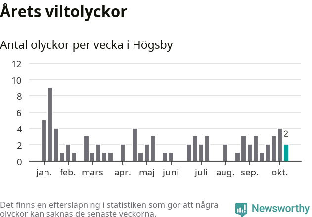 Hittills har två viltolyckor rapporterats in i Högsby kommun från vecka 42. Se listan här.