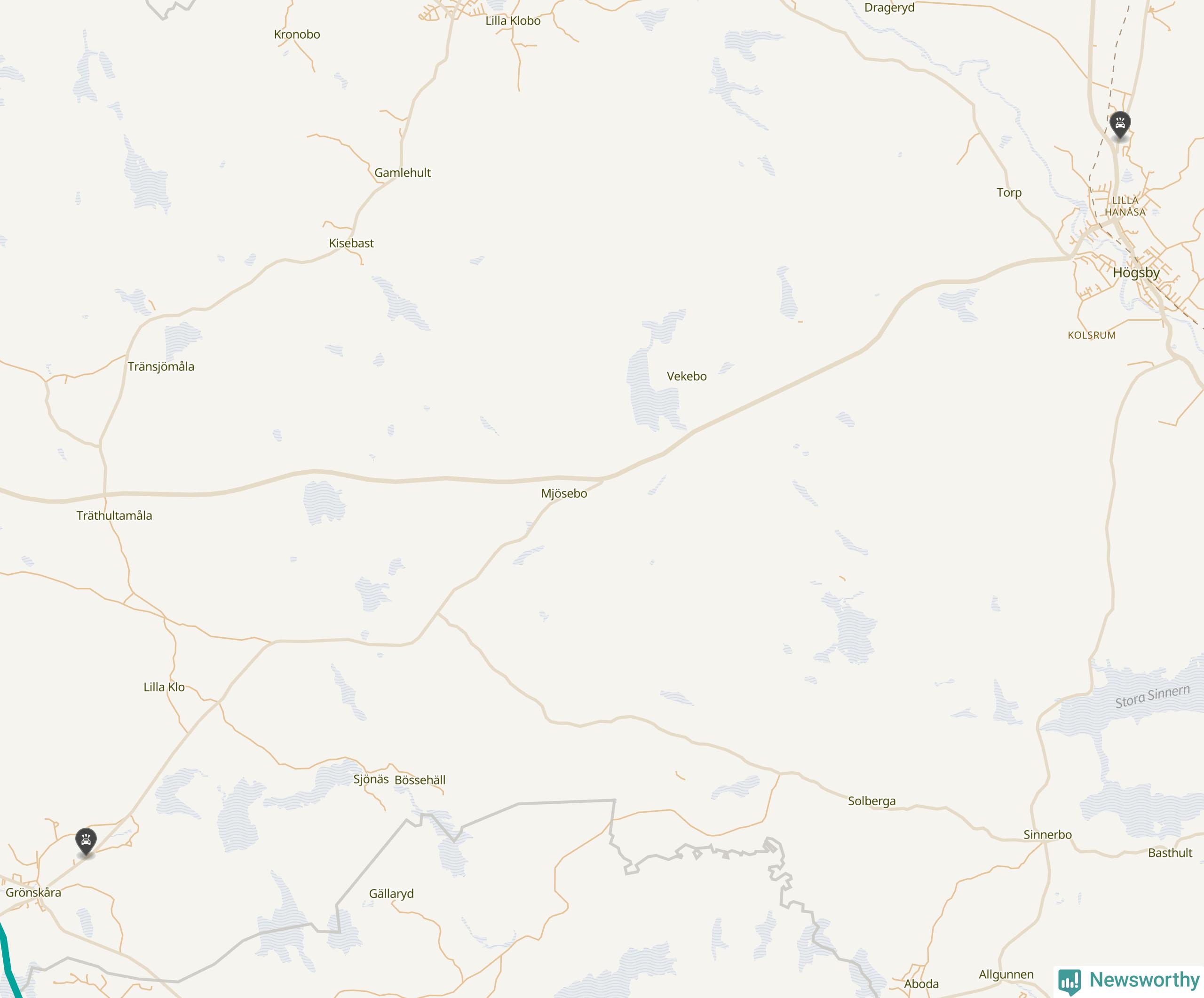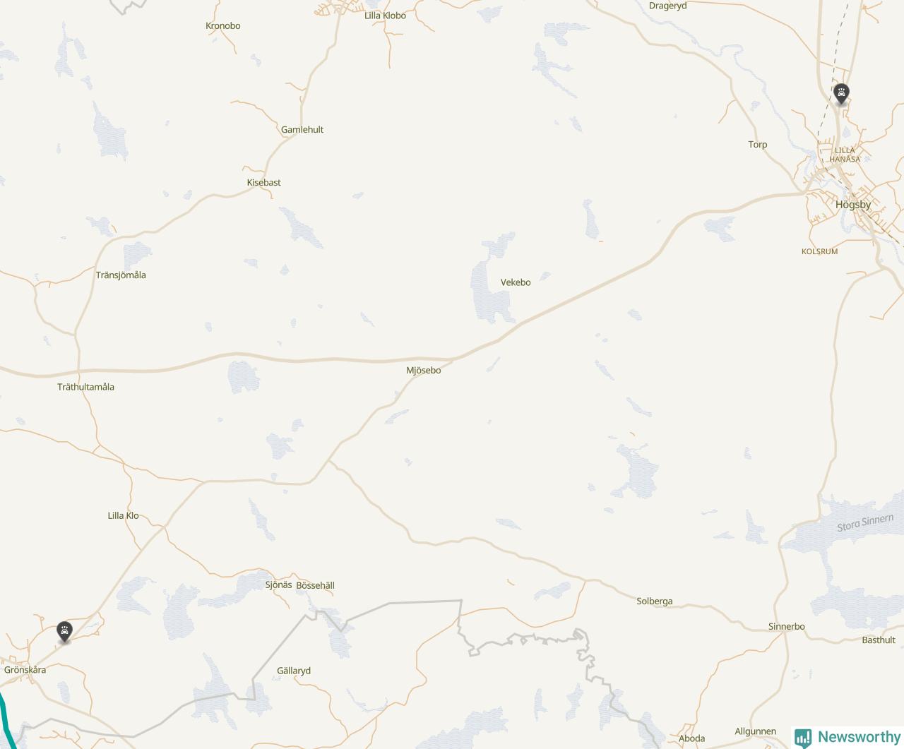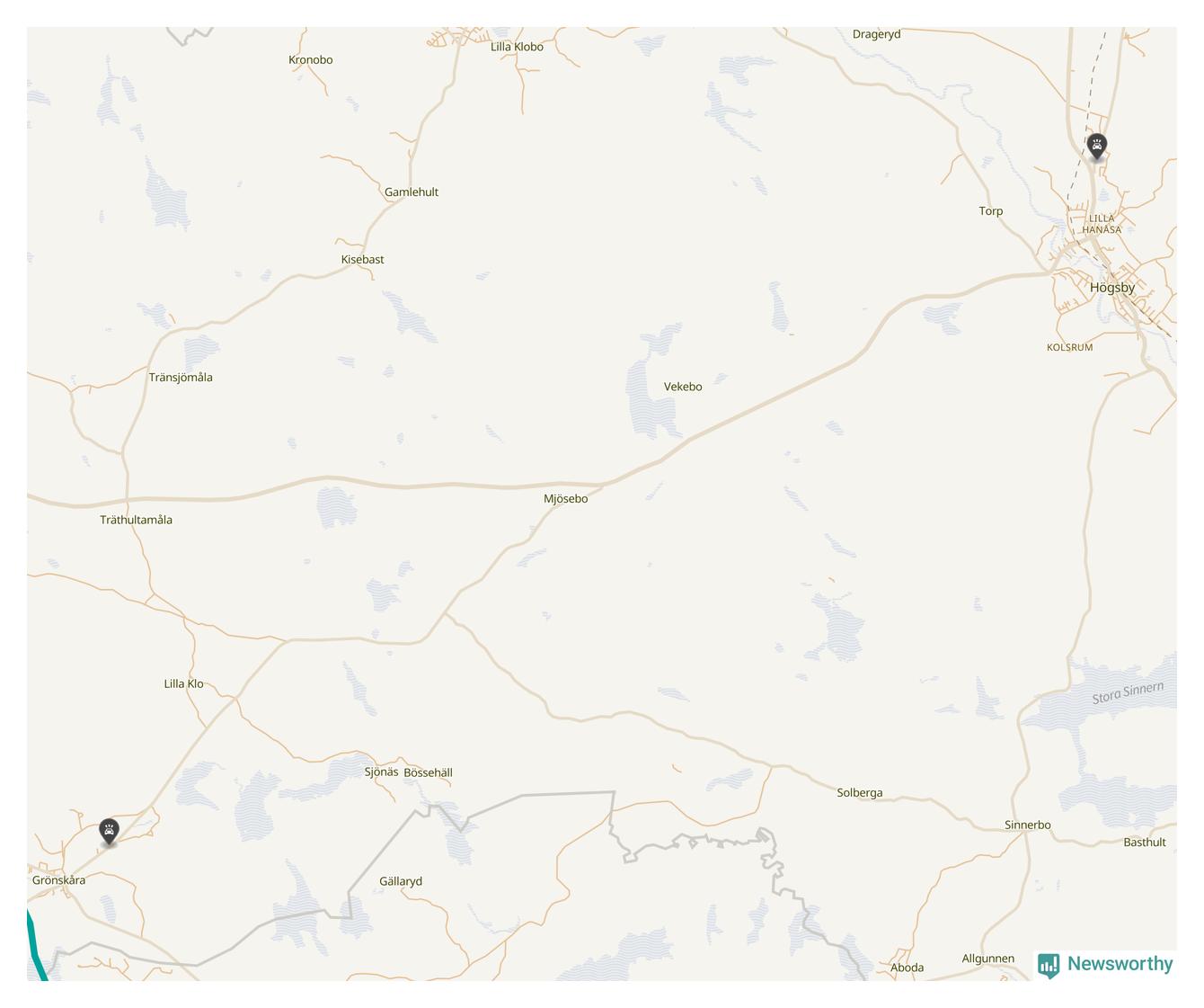 Karta: Förra veckans viltolyckor i Högsby