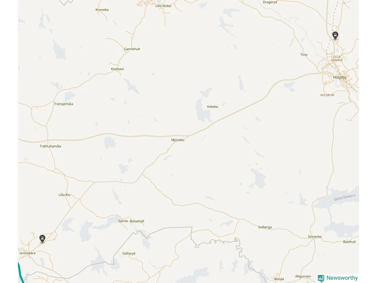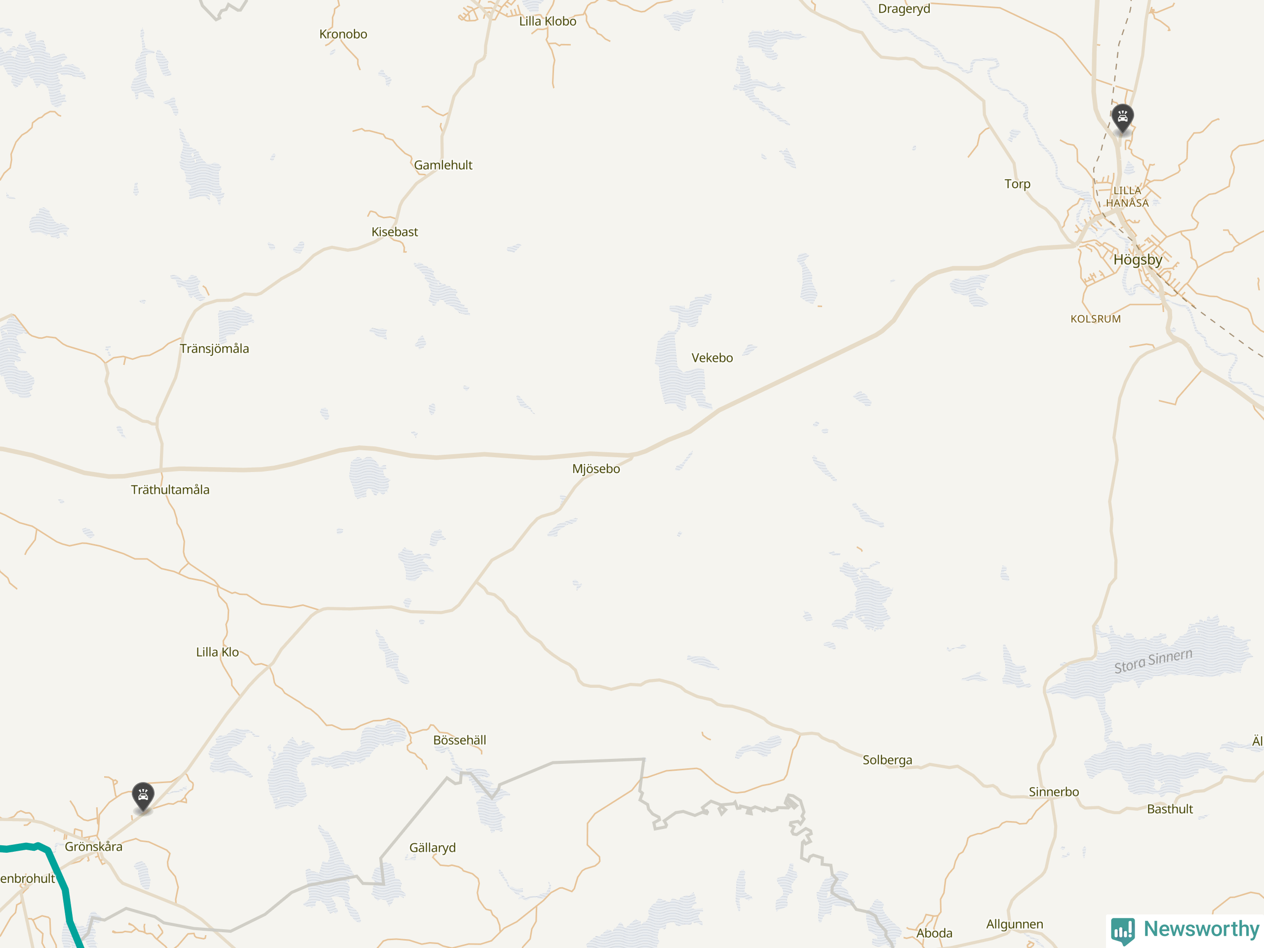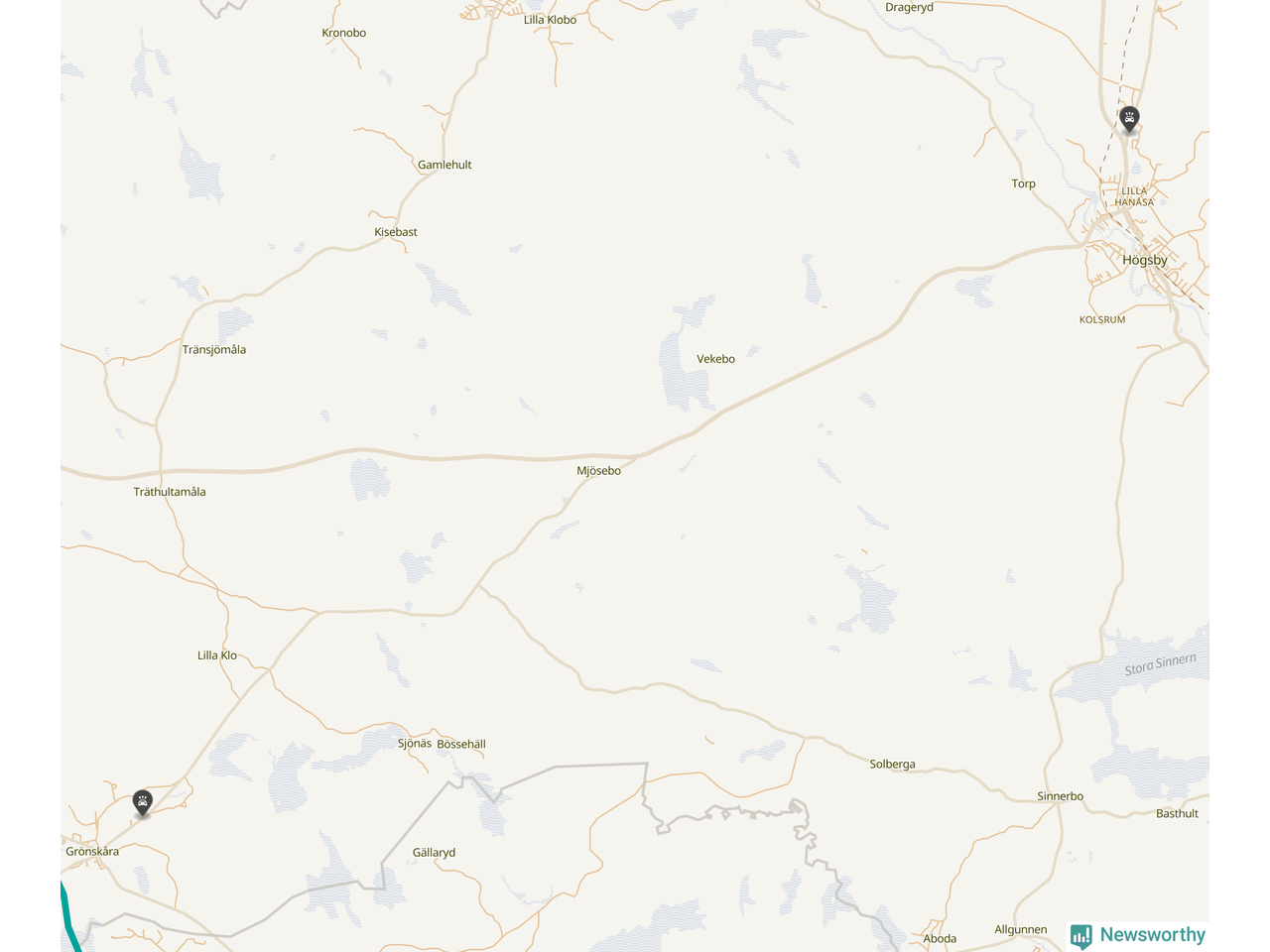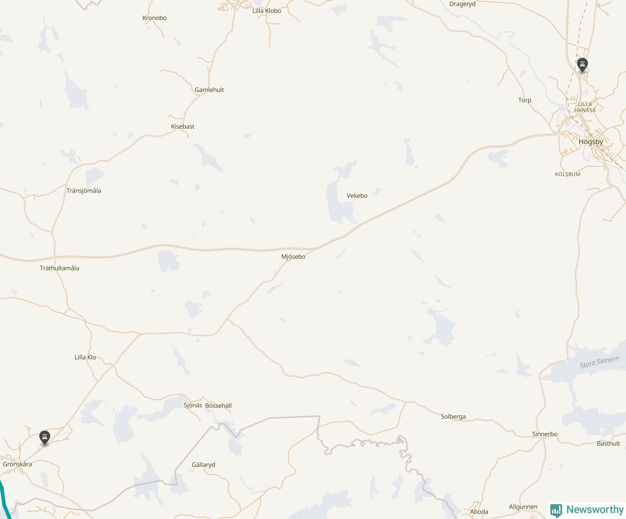 Karta: Förra veckans viltolyckor i Högsby