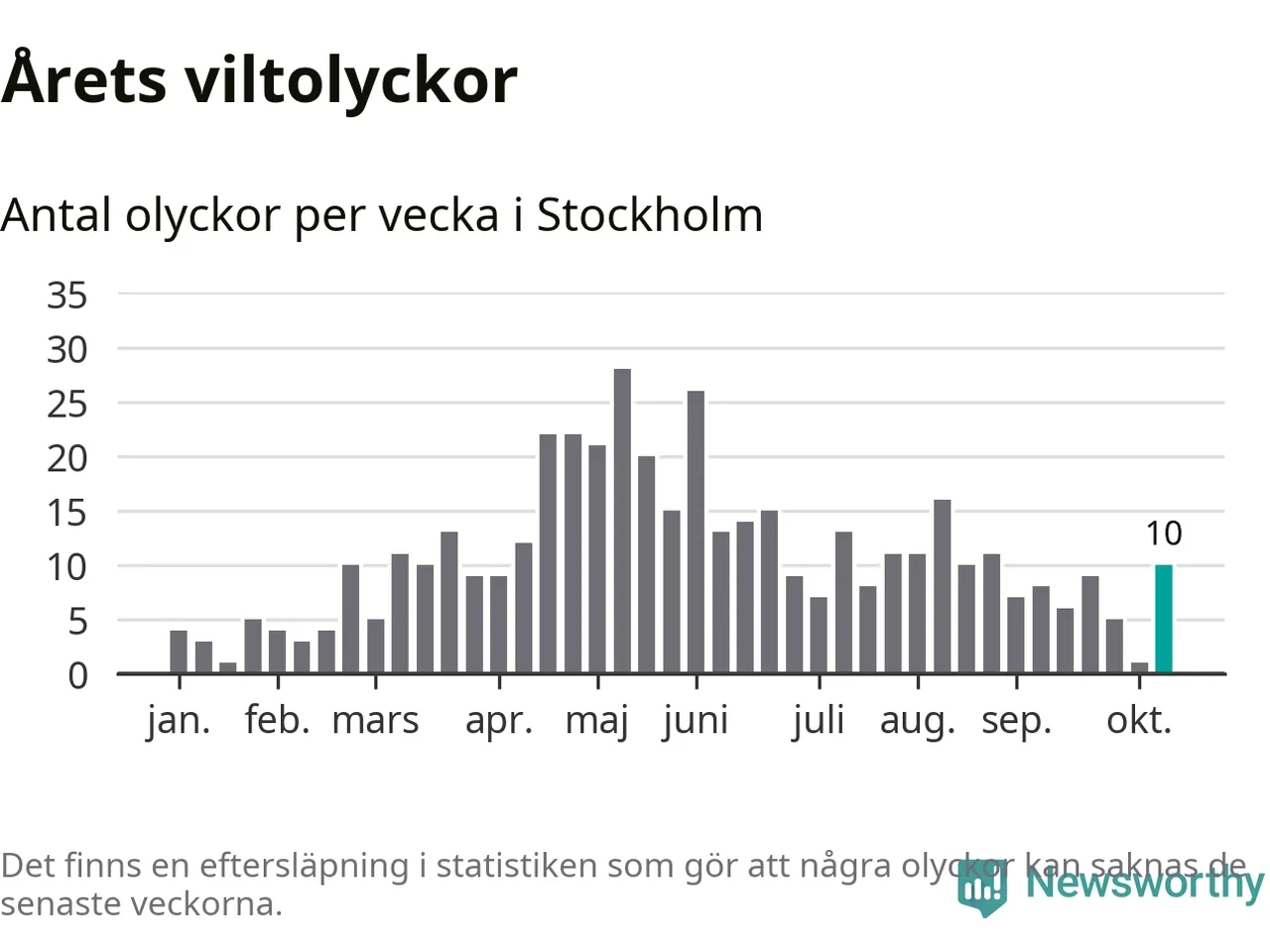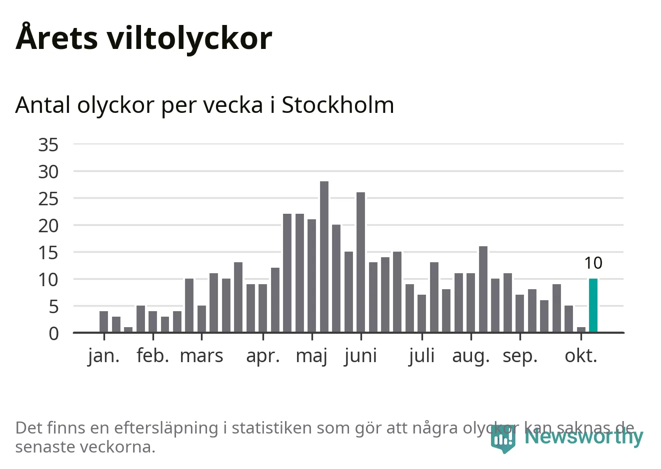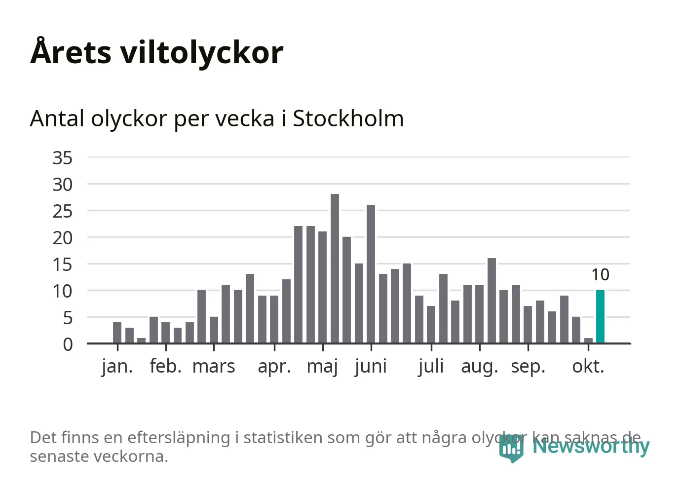 Tio olyckor är ovanligt många för en höstvecka. Bara fem gånger tidigare sedan 2015 har det skett så många viltolyckor på en höstvecka i Stockholms kommun.