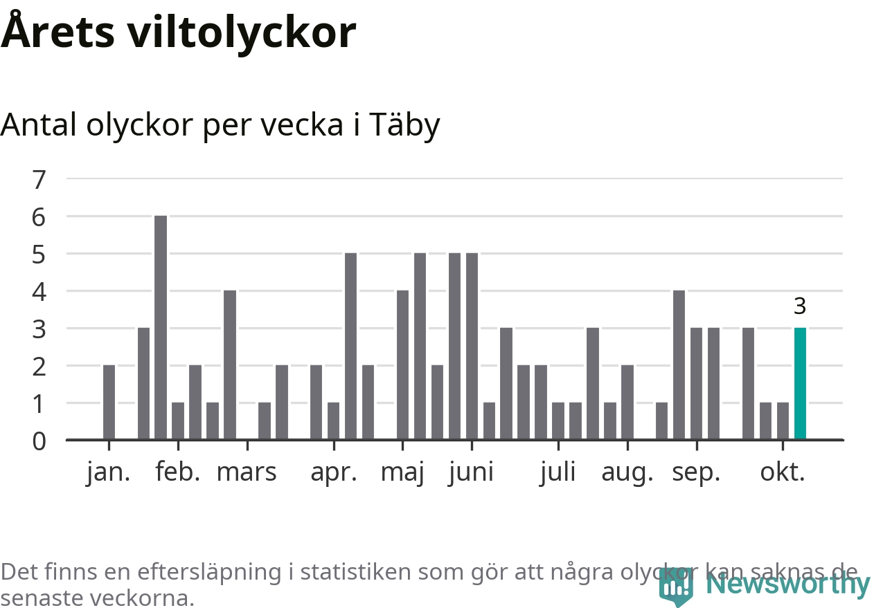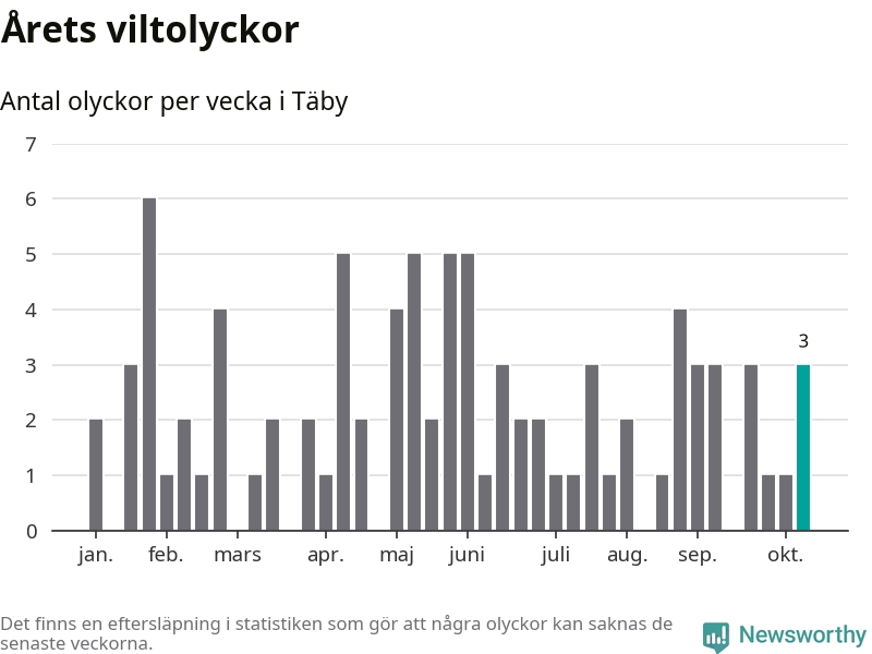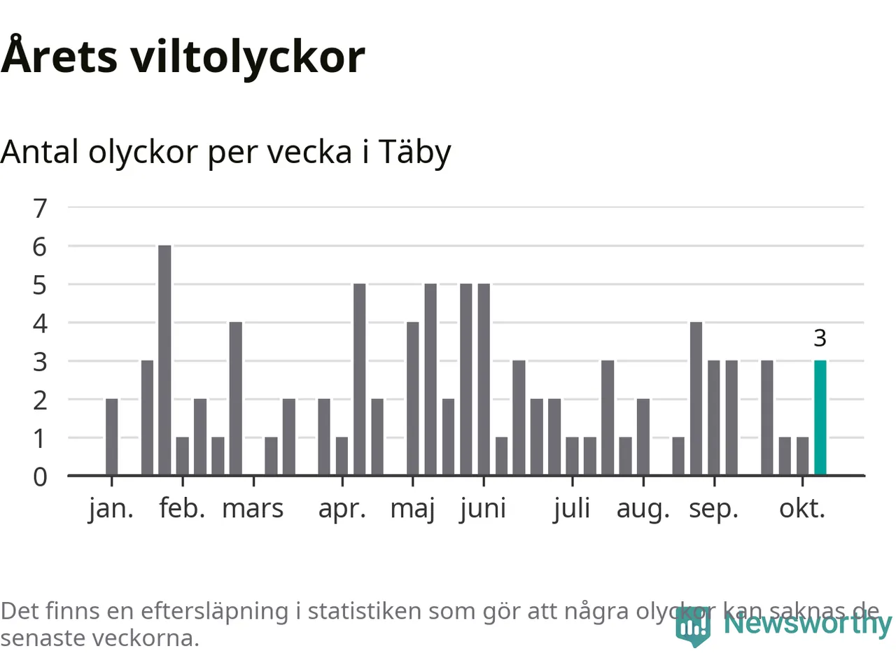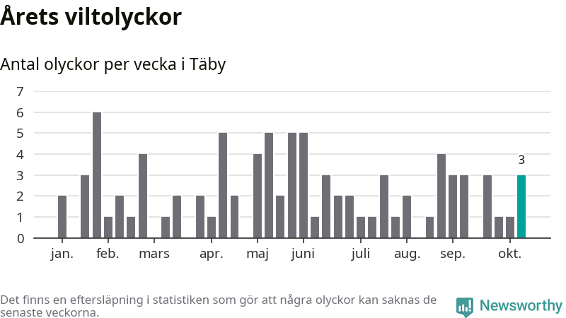 Hittills har tre viltolyckor rapporterats in i Täby kommun från vecka 42. Se listan här.