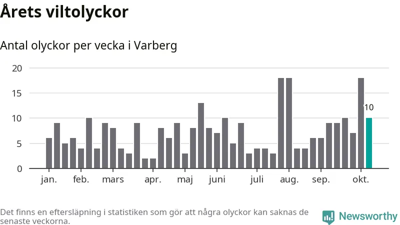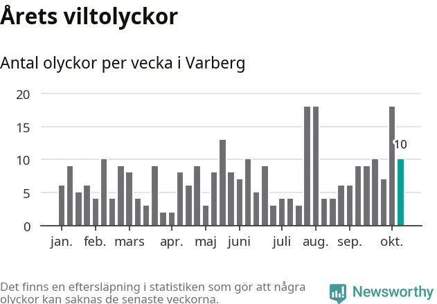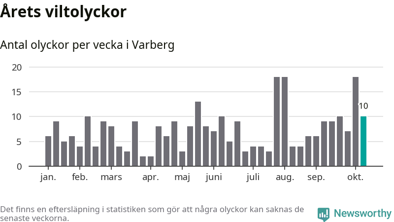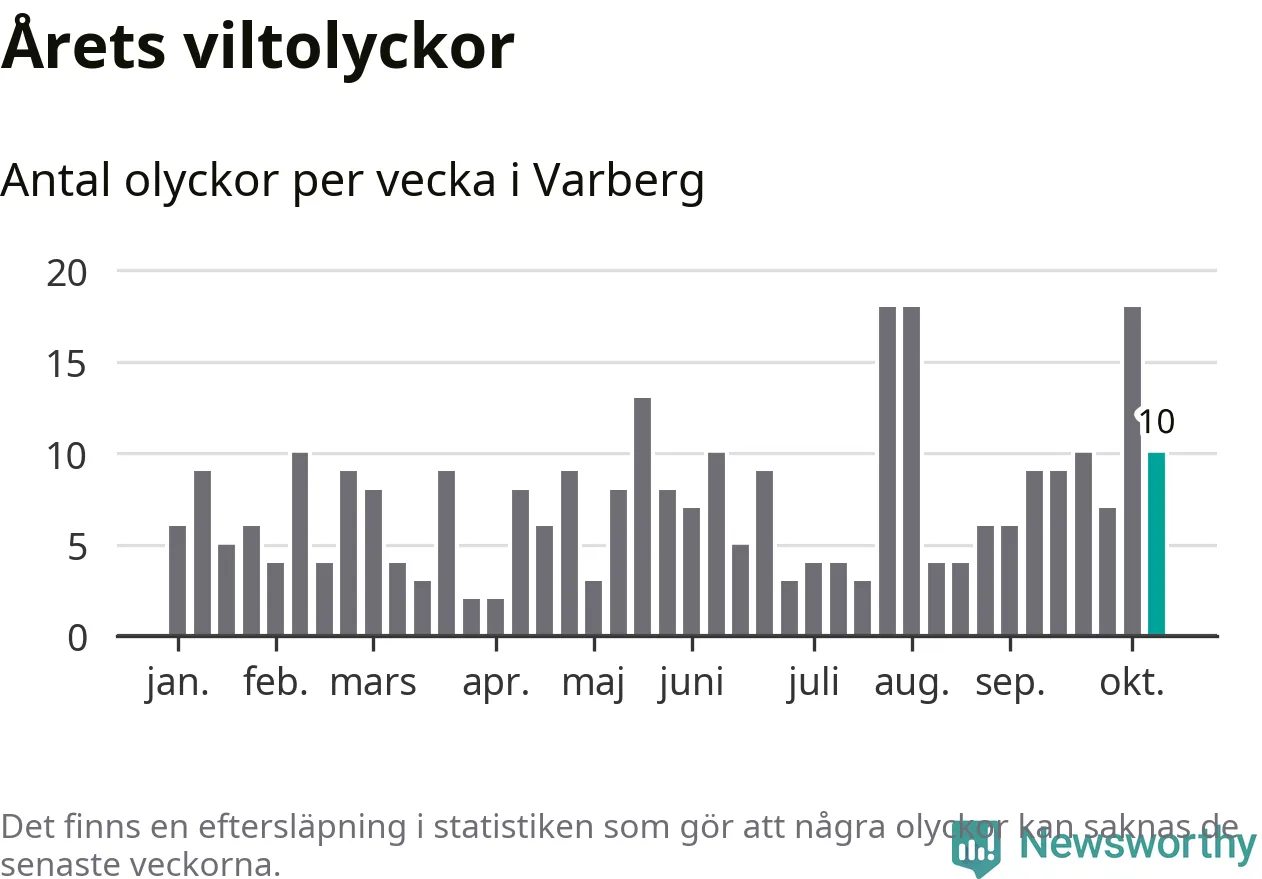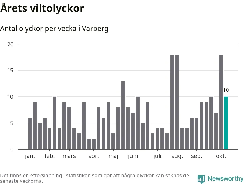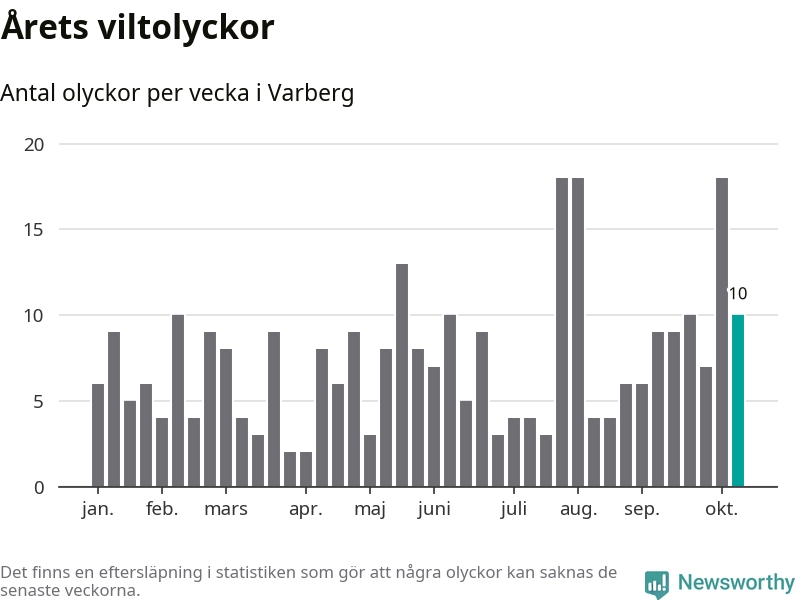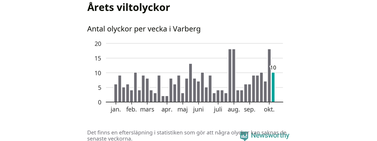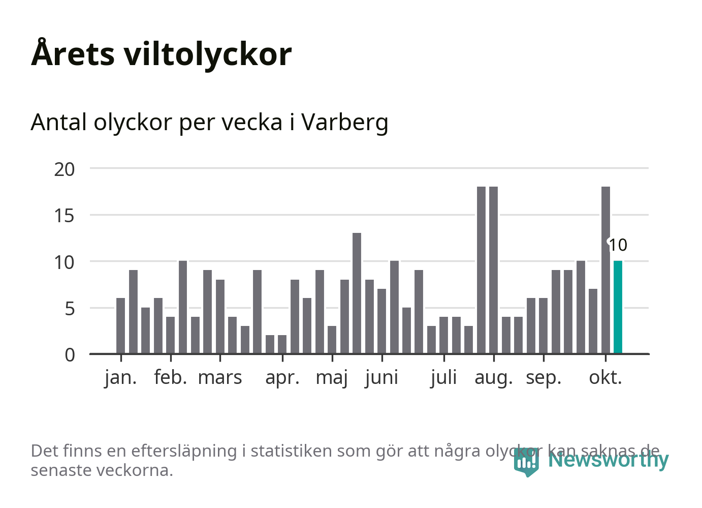 Hittills har tio viltolyckor rapporterats in i Varbergs kommun från vecka 42. Se listan här.