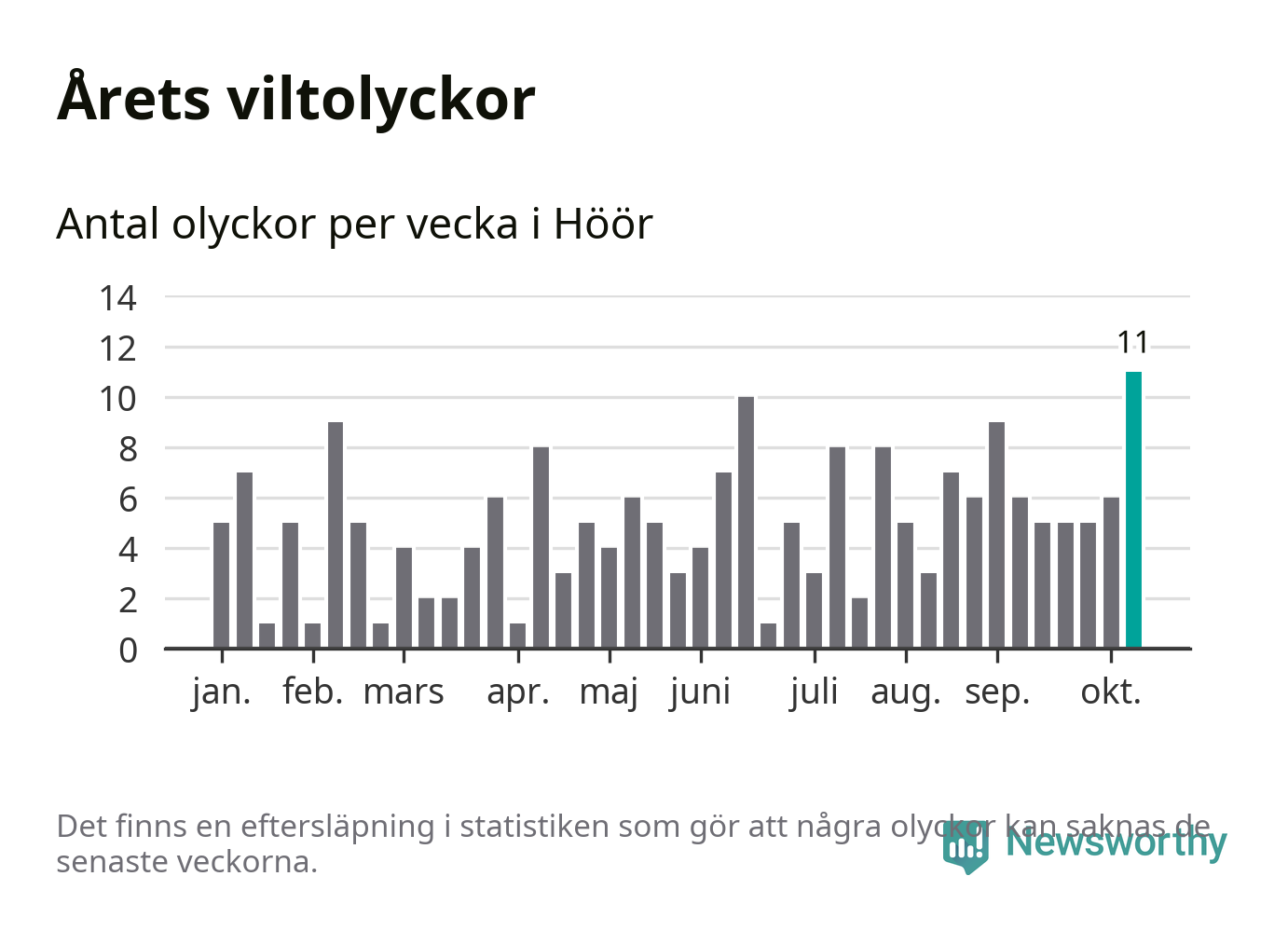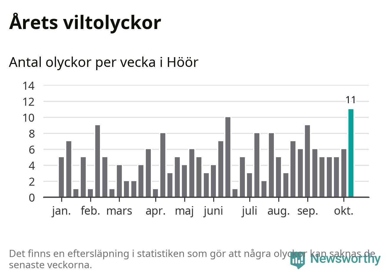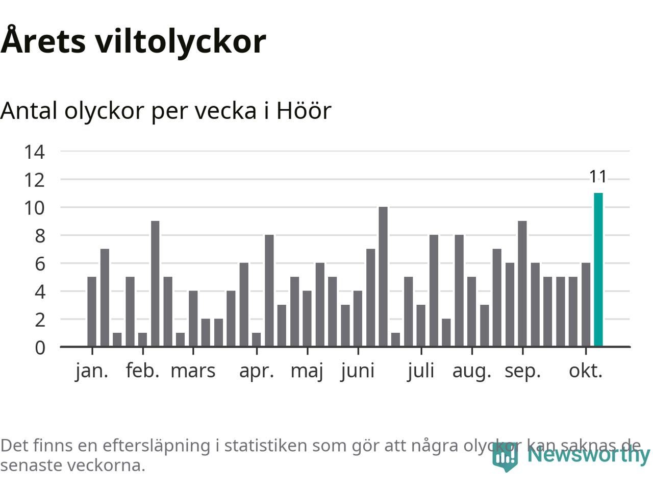 Hittills har elva viltolyckor rapporterats in i Höörs kommun från vecka 42. Det är en av de högsta höstsiffrorna för en enskild vecka på över tio år.