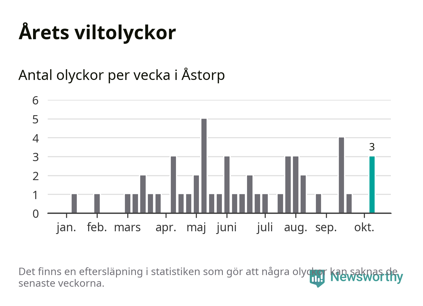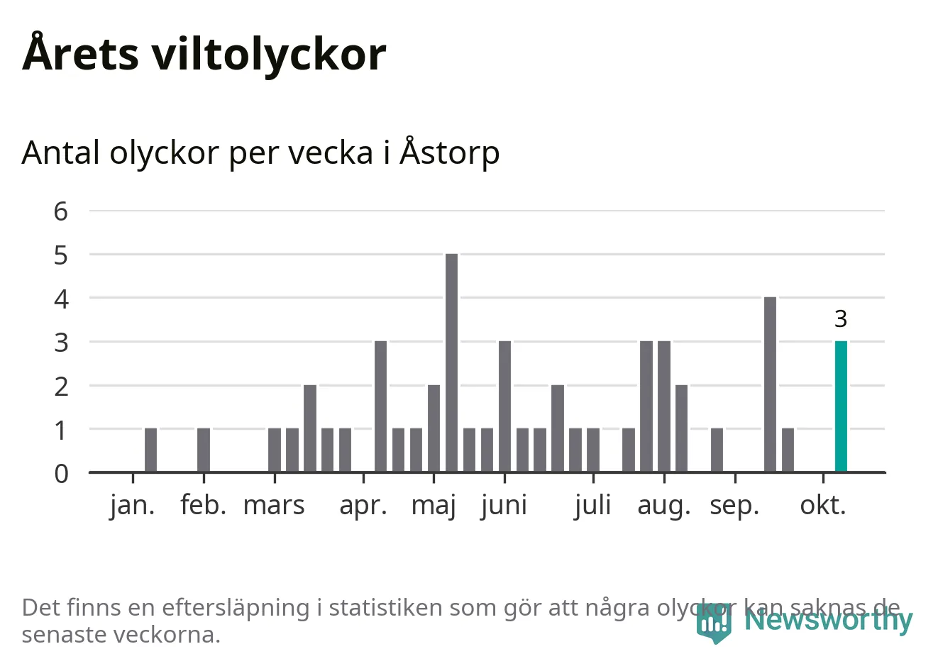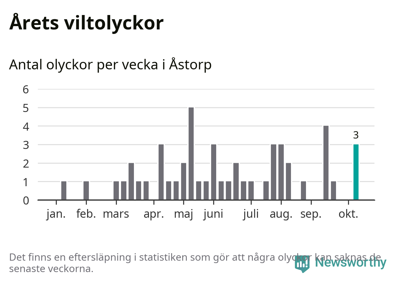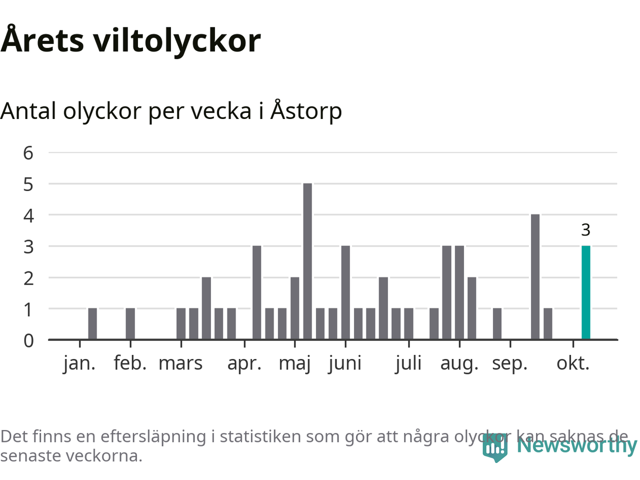 Hittills har tre viltolyckor rapporterats in i Åstorps kommun från vecka 42. Se listan här.