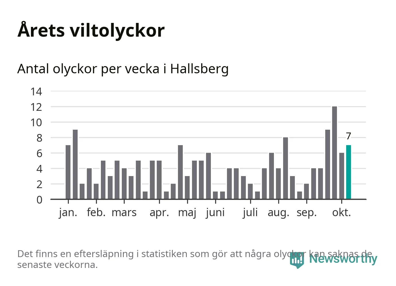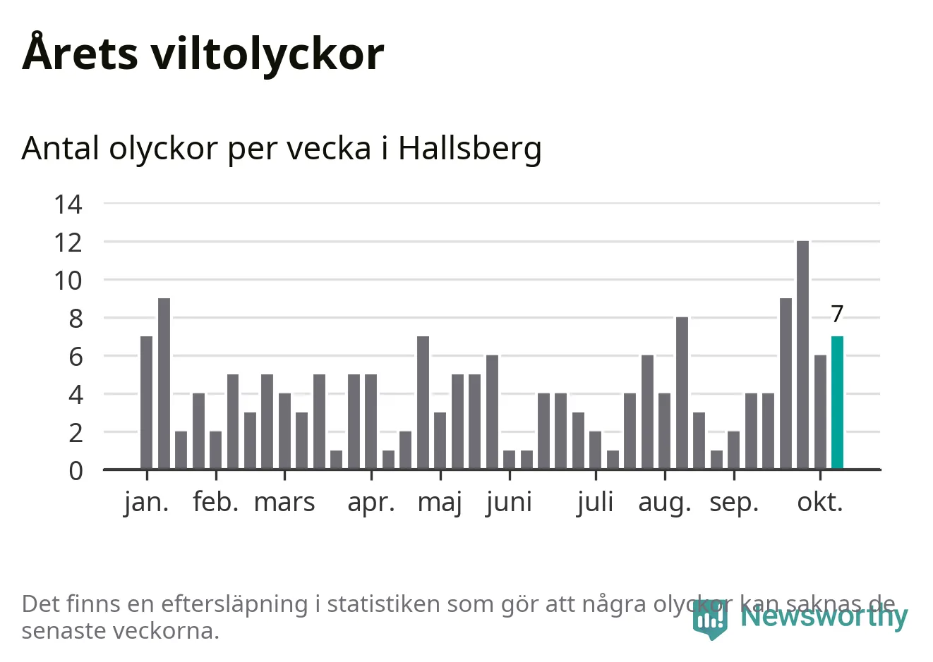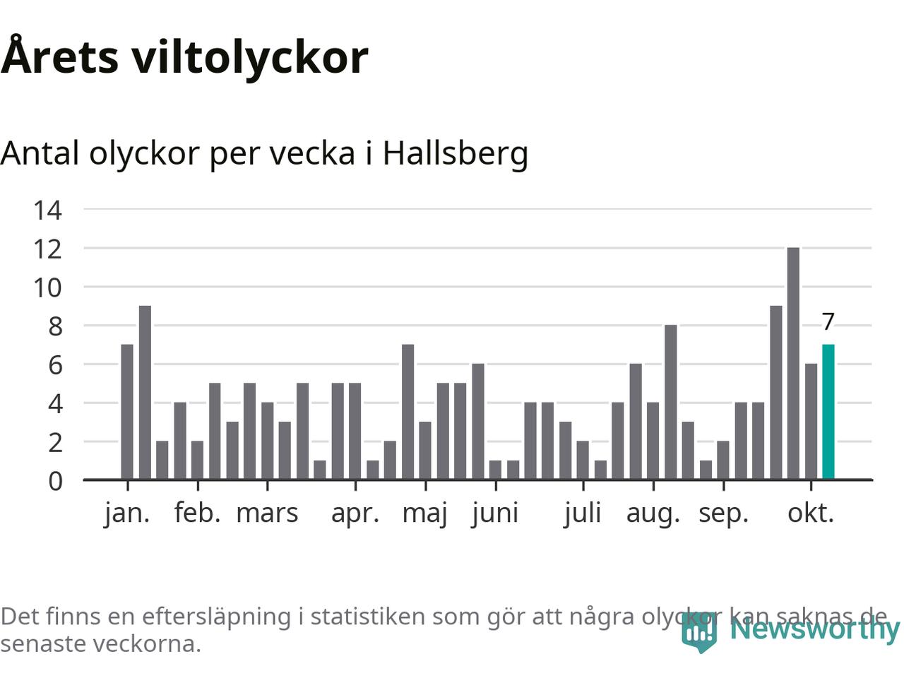 Hittills har sju viltolyckor rapporterats in i Hallsbergs kommun från vecka 42. Se listan här.