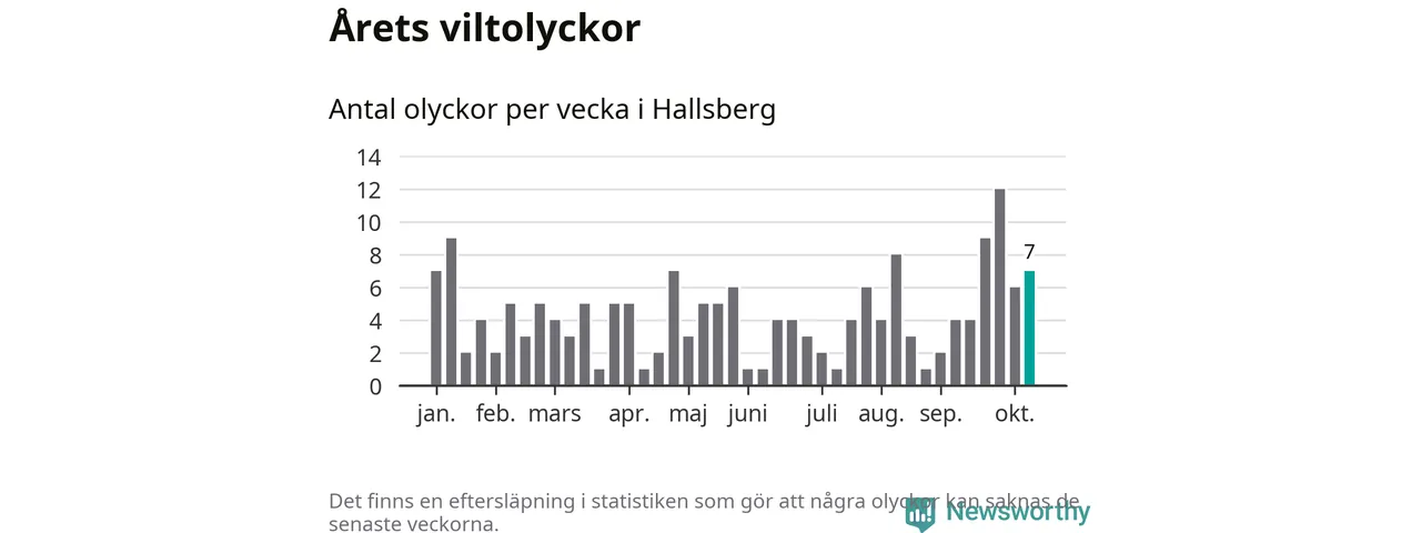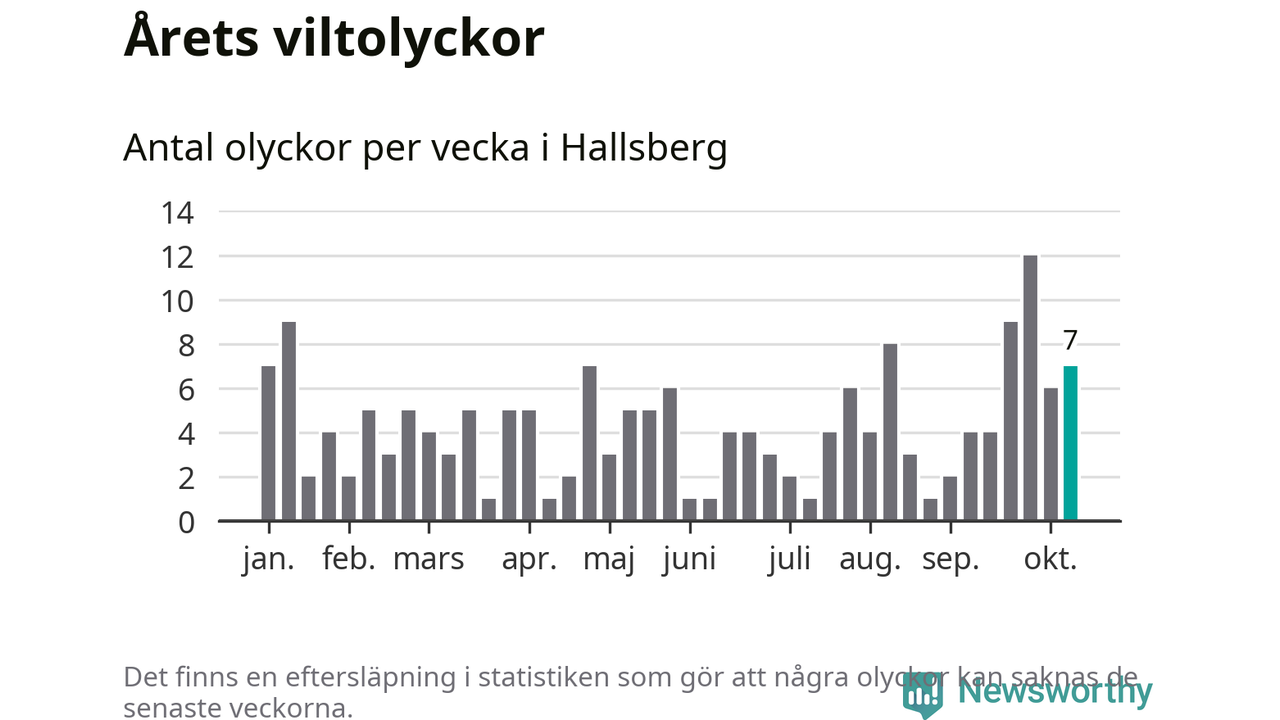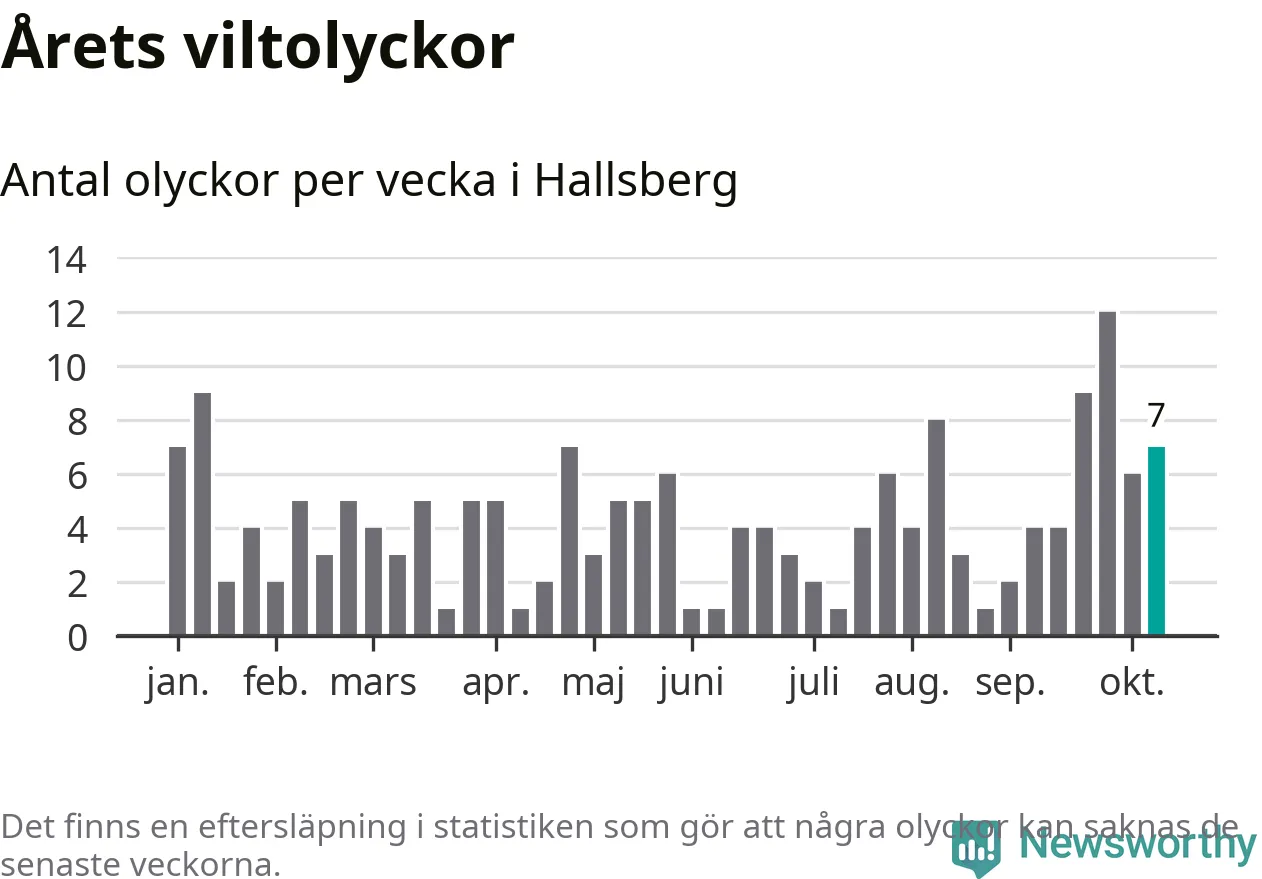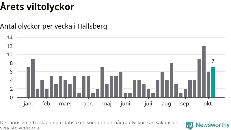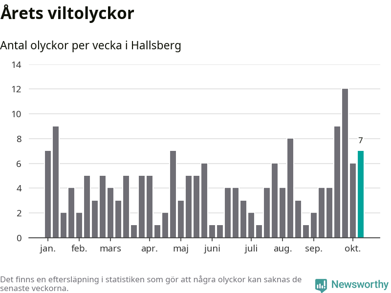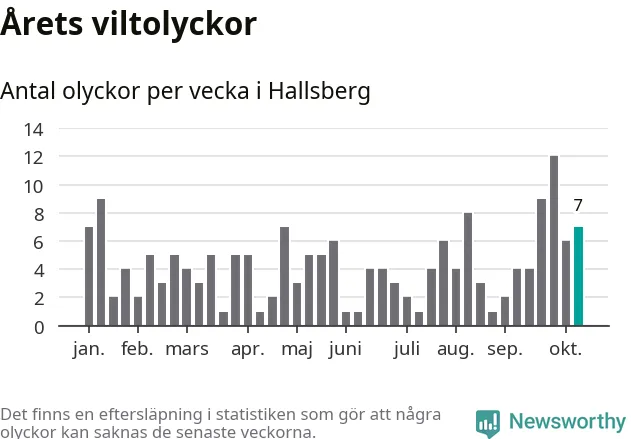 Hittills har sju viltolyckor rapporterats in i Hallsbergs kommun från vecka 42. Se listan här.