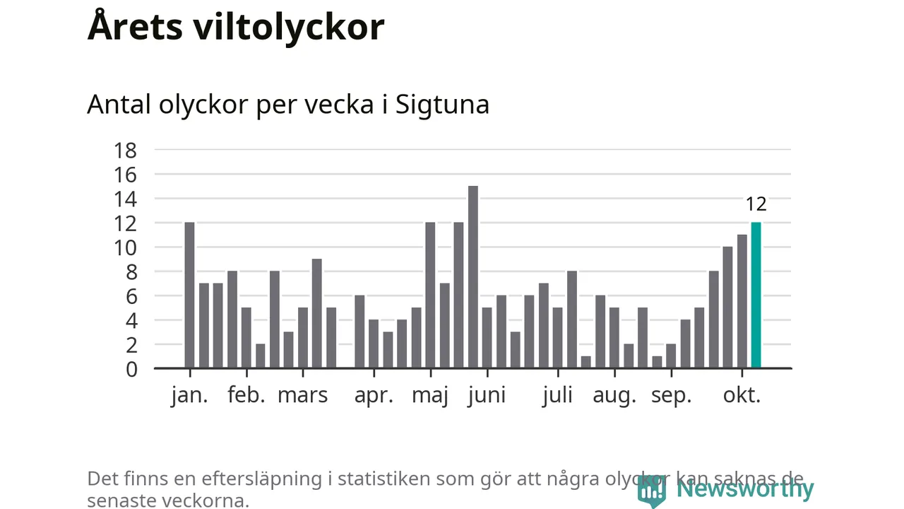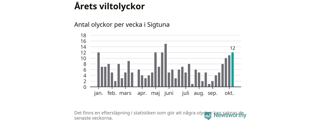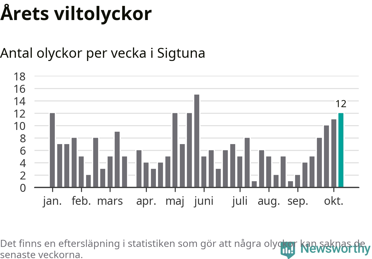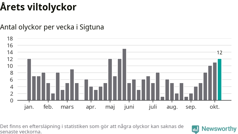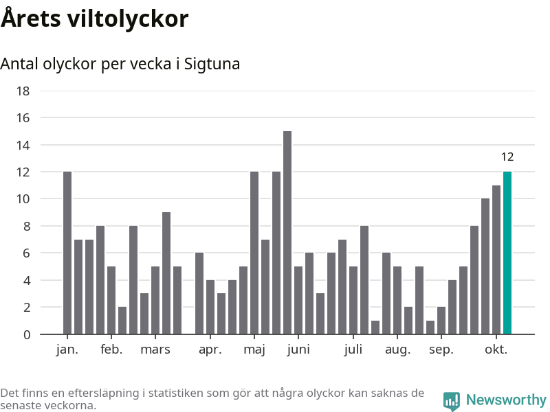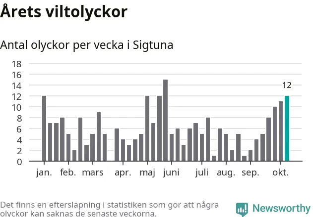 Tolv olyckor på en enda vecka är också ovanligt många. Bara tolv gånger tidigare sedan 2015 har det skett