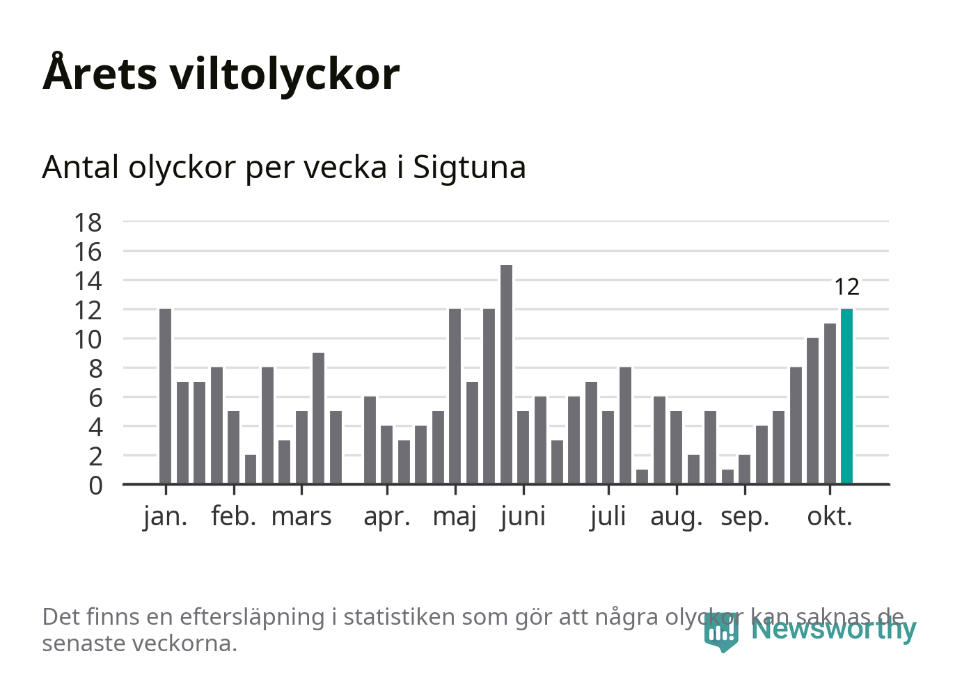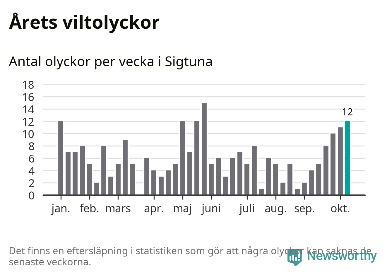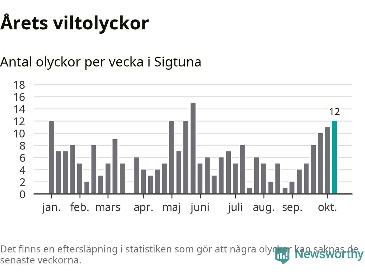 Tolv olyckor på en enda vecka är också ovanligt många. Bara tolv gånger tidigare sedan 2015 har det skett