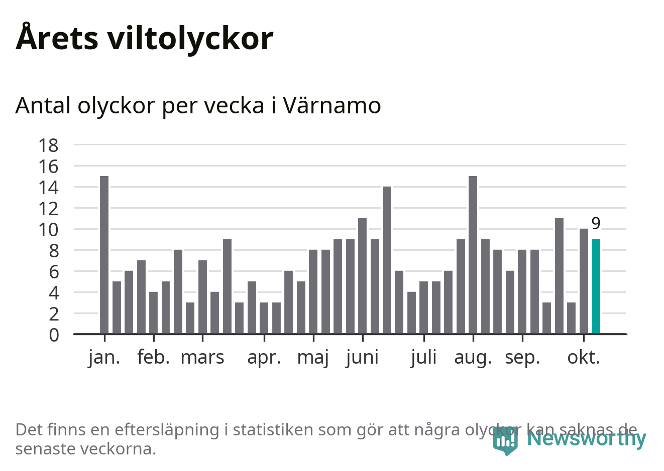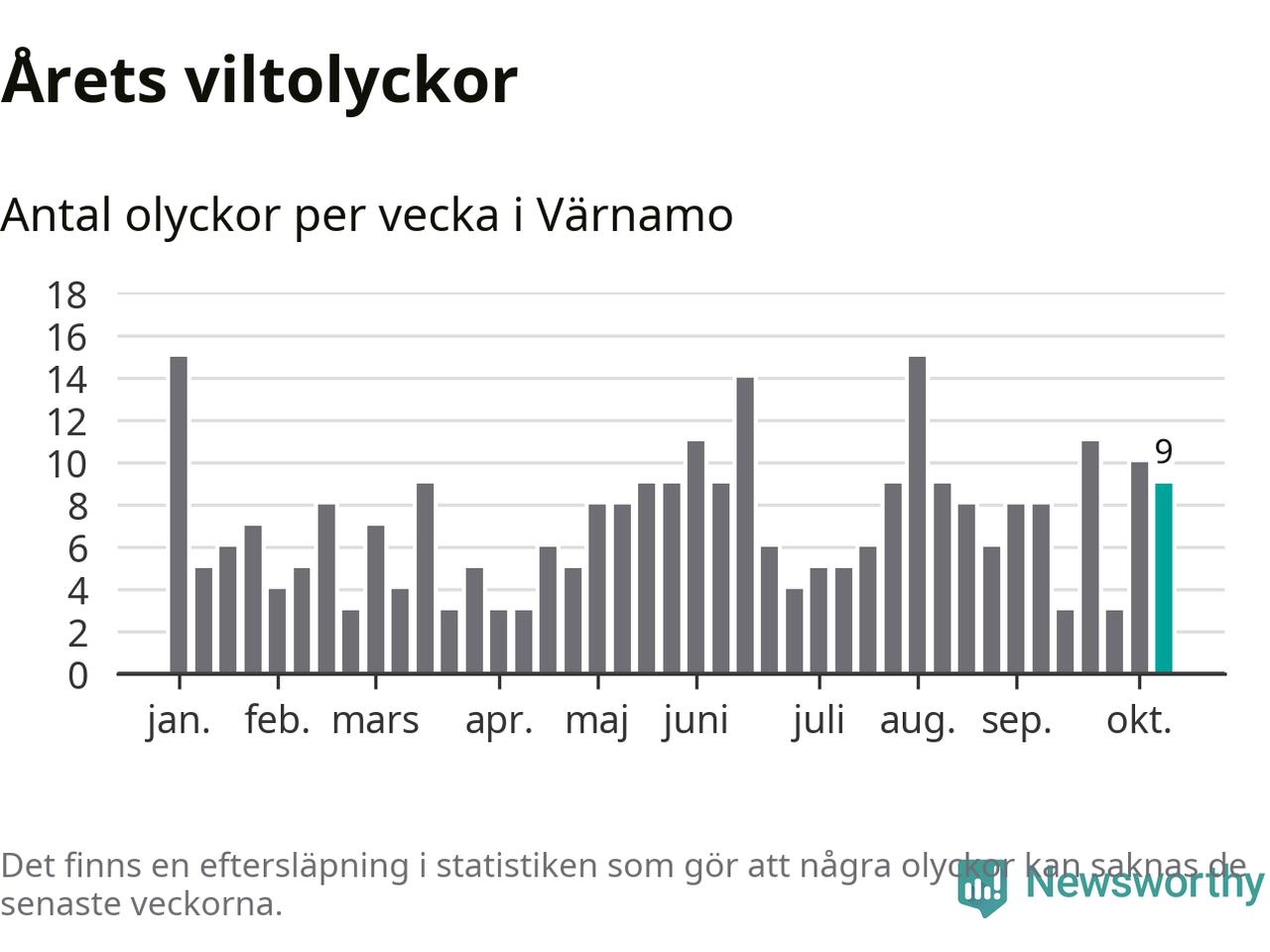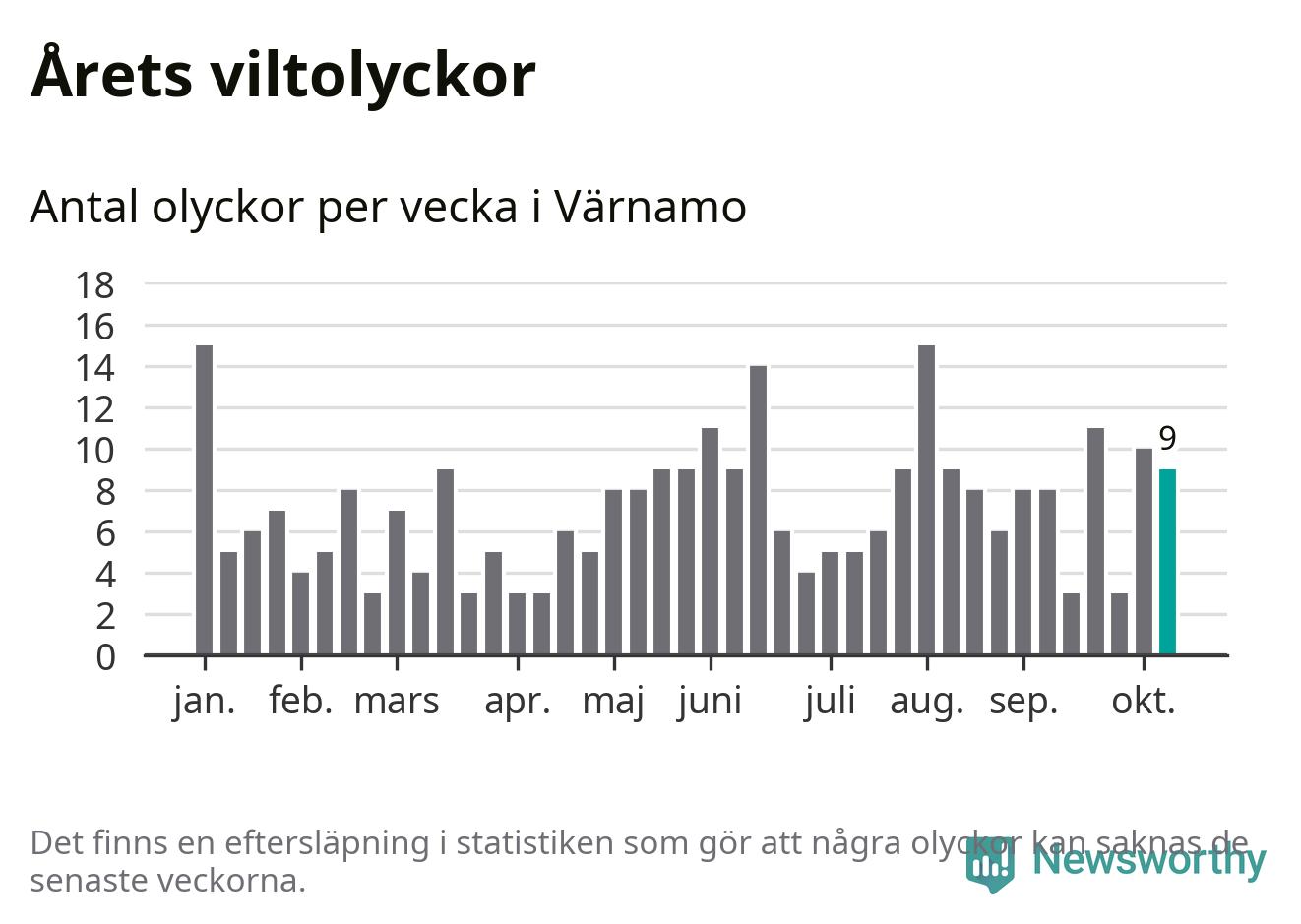 Hittills har nio viltolyckor rapporterats in i Värnamo kommun från vecka 42. Se listan här.