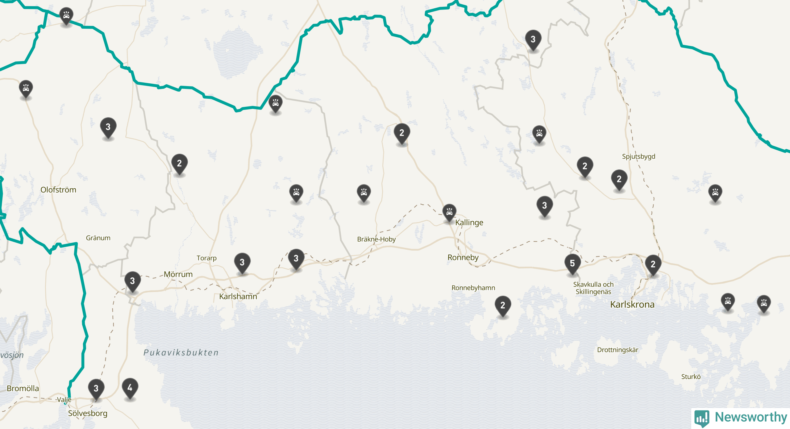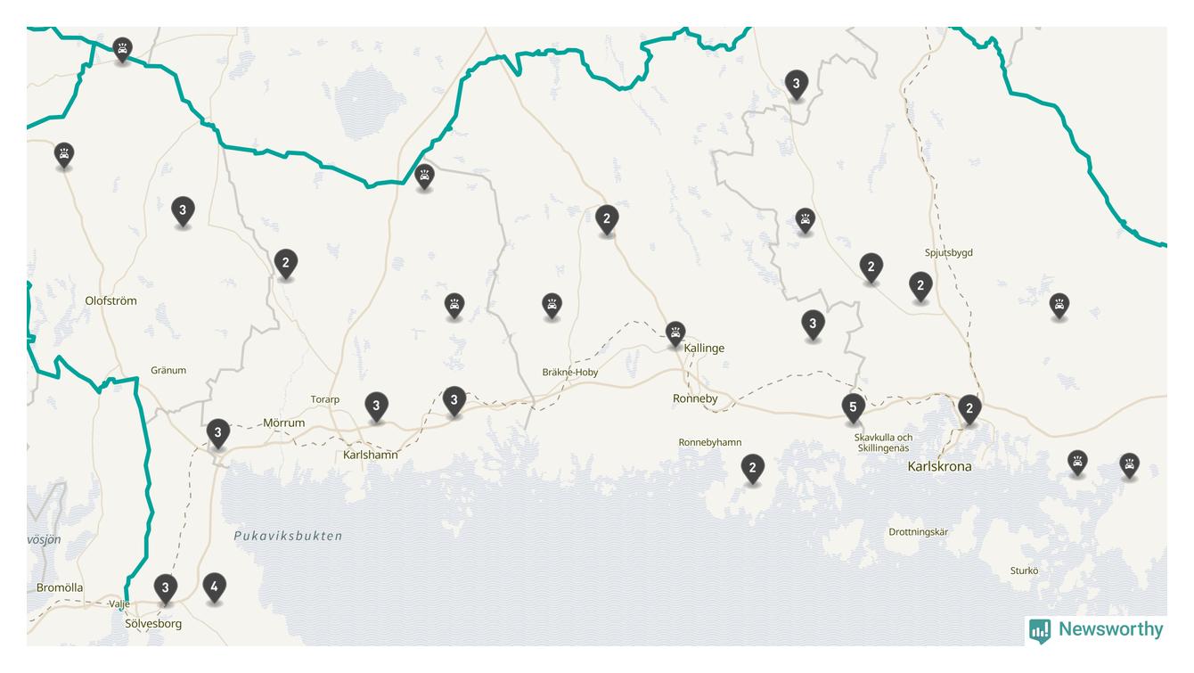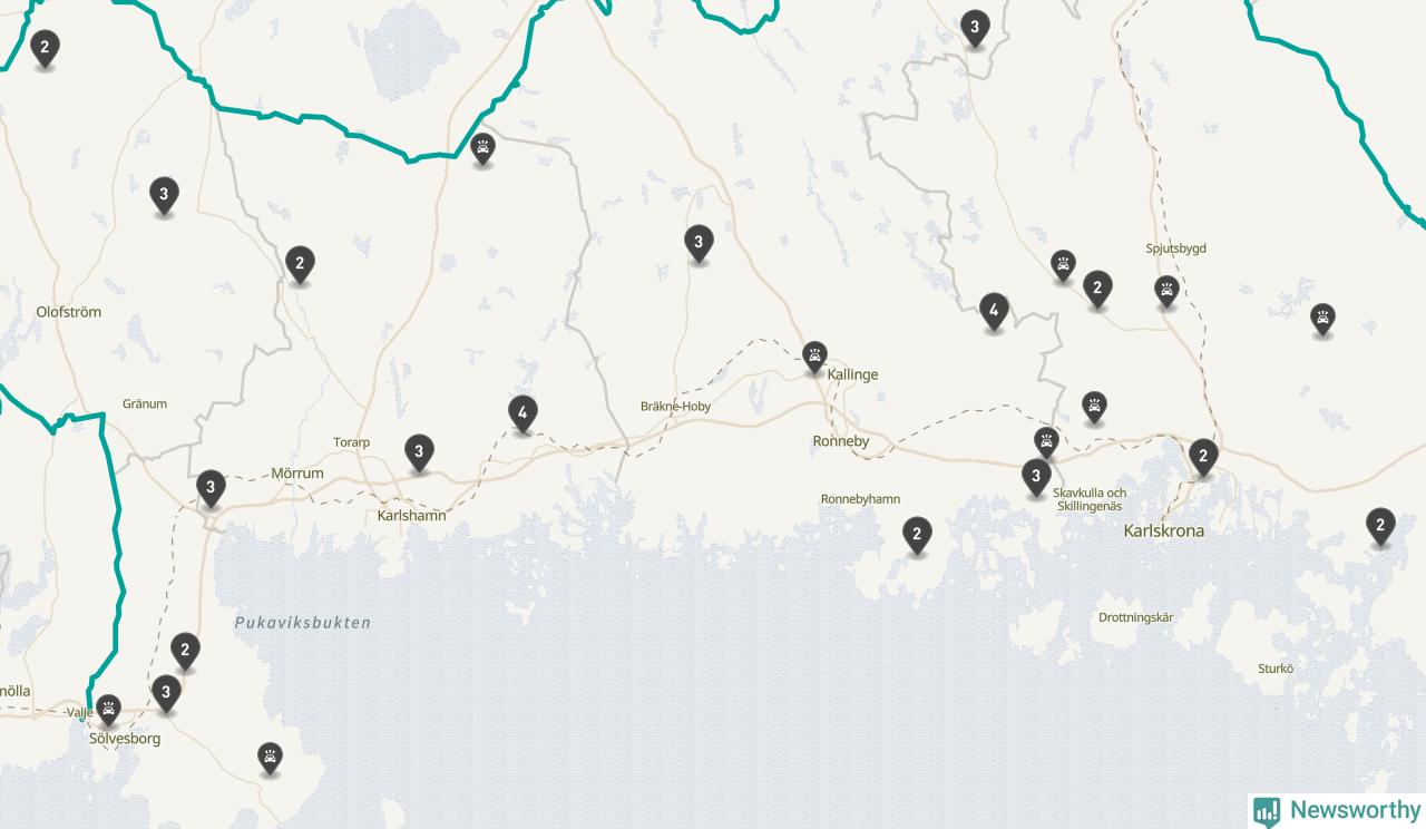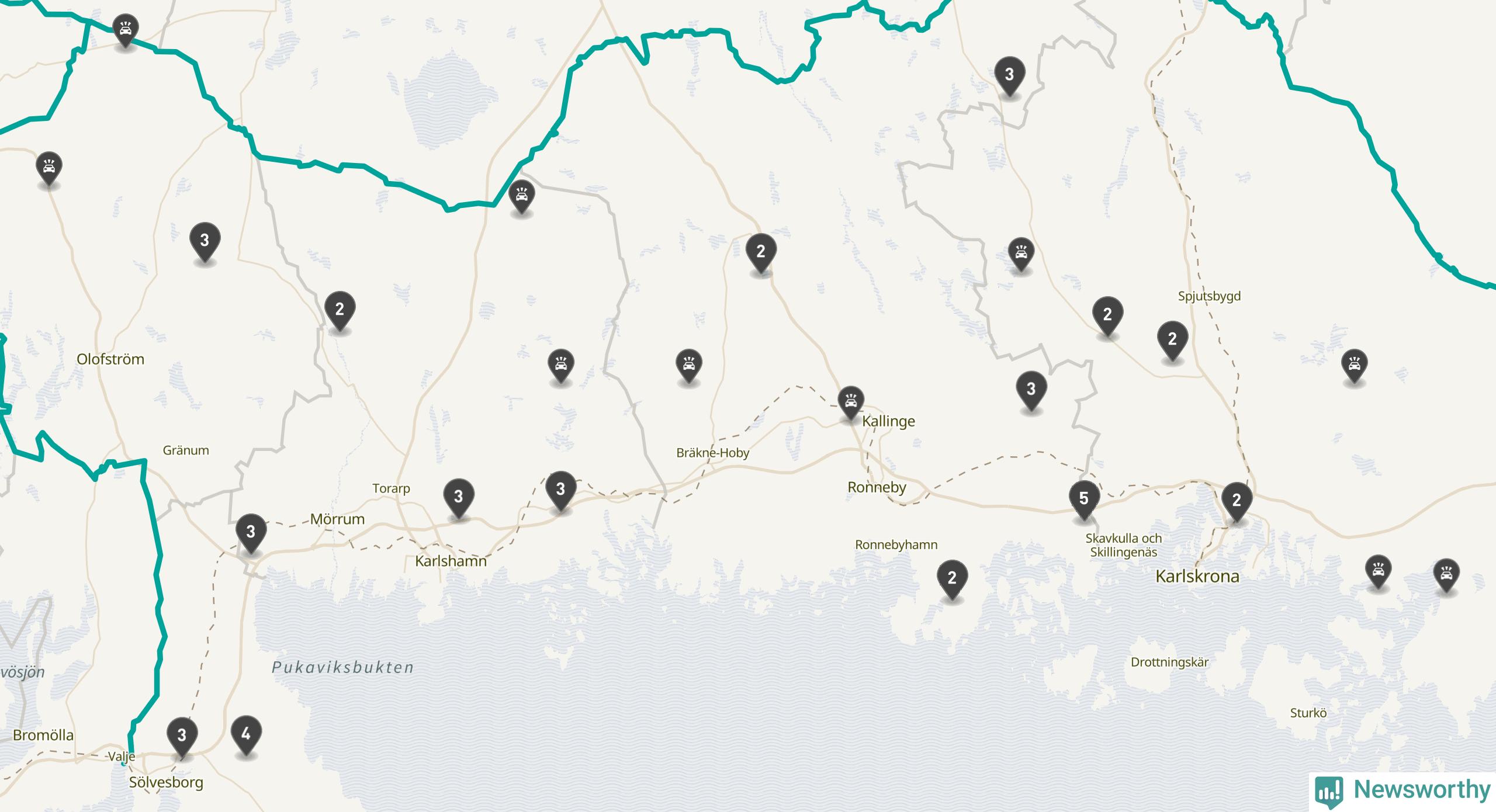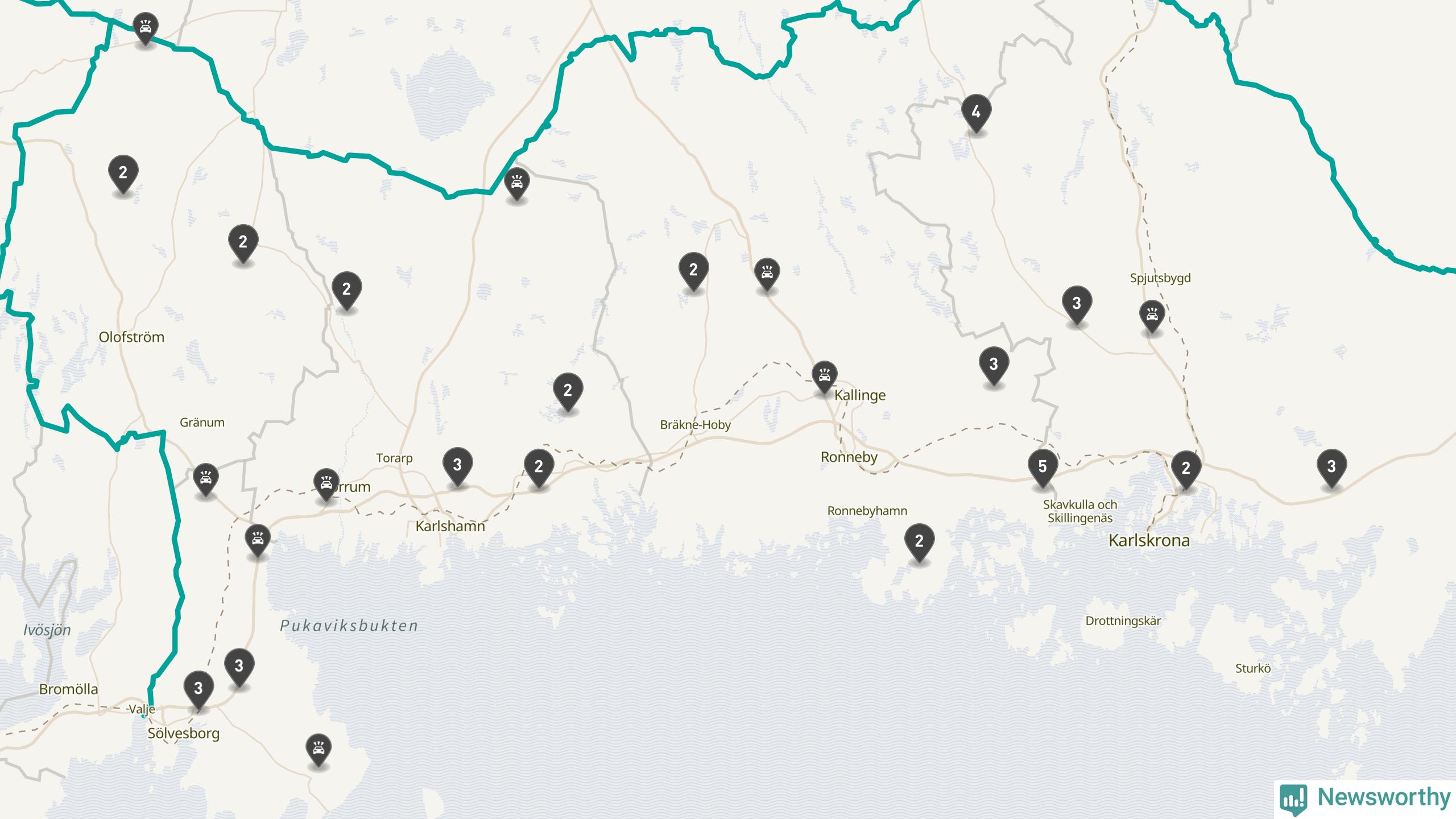 Av förra veckans viltolyckor inträffade sex längs eller nära E22. Det är också där flest viltolyckor brukat rapporteras det senaste decenniet.